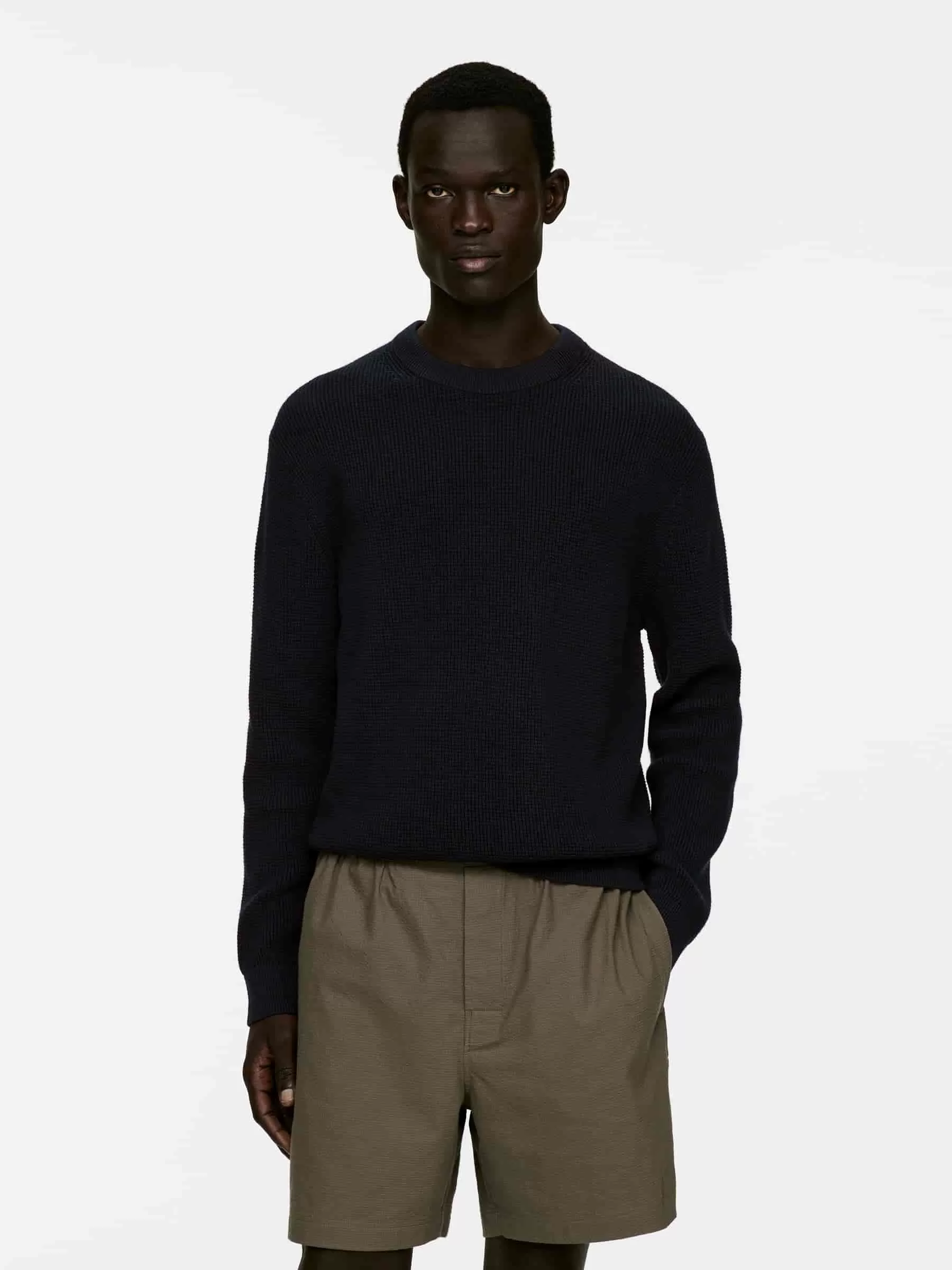 Jumper made from a cotton linen blend, knitted with a waffle texture. A crewneck style in a regular fit. Rib-knitted trimmings.