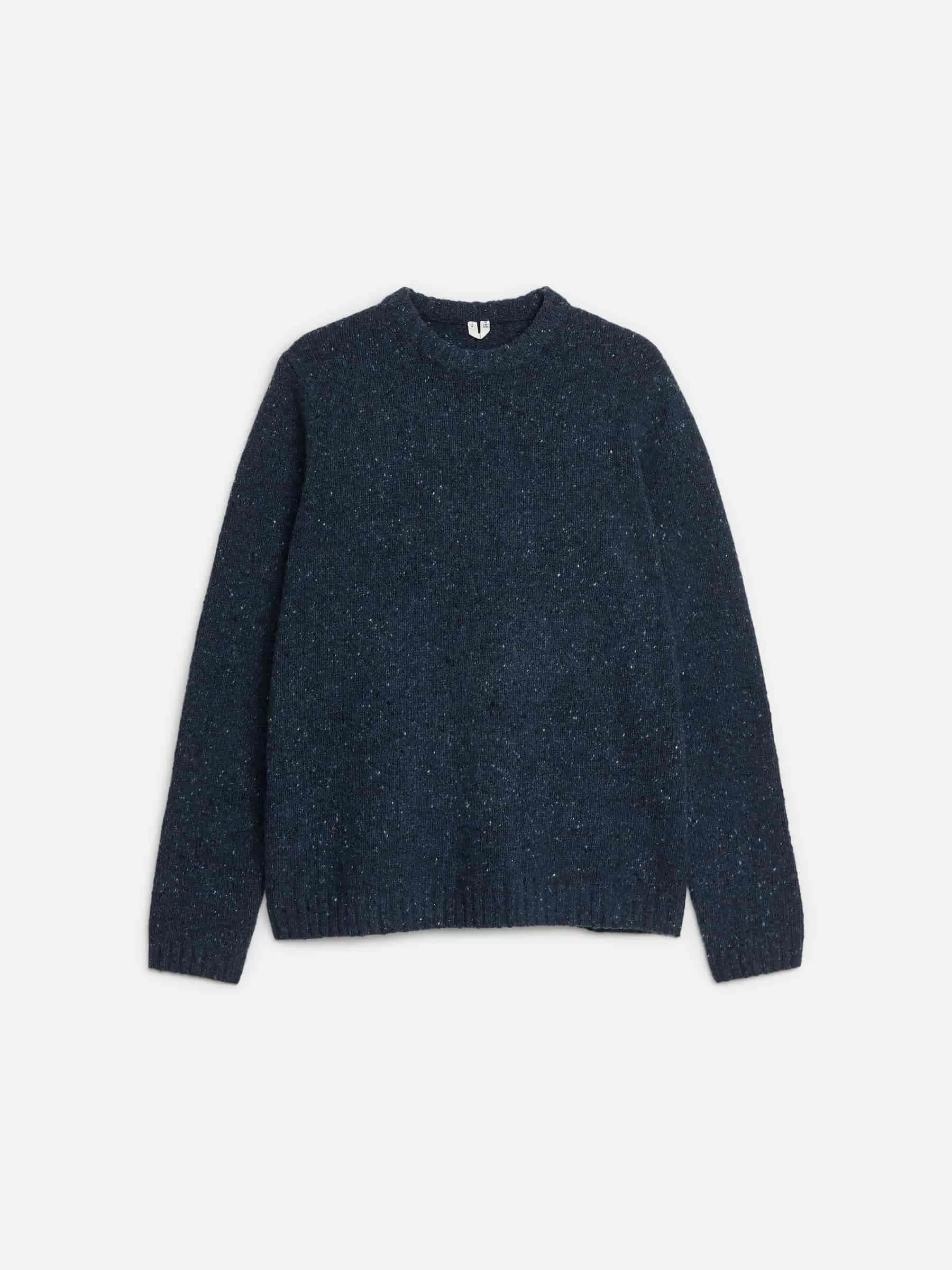 Straight-fit jumper knitted from a wool and alpaca yarn, making it both warm and soft to the touch. The neps texture and ribbed trims add a tactile finish.