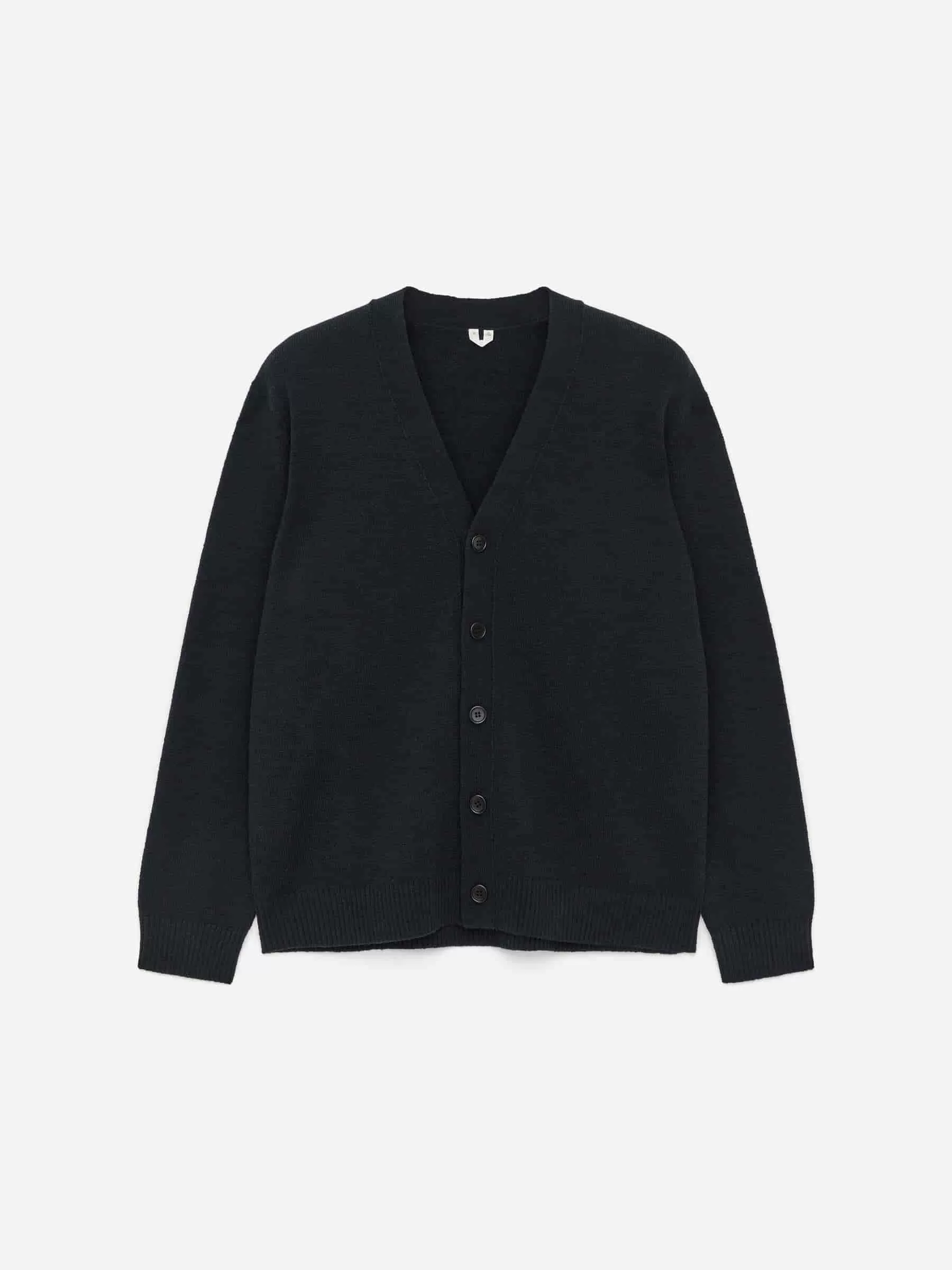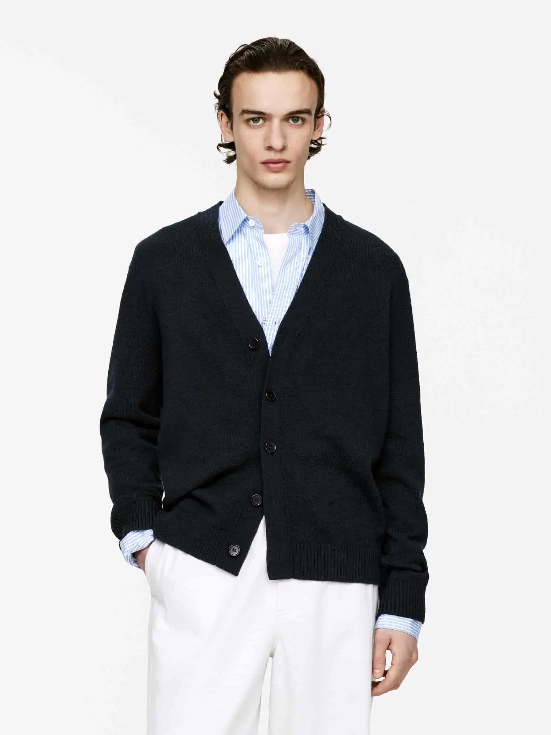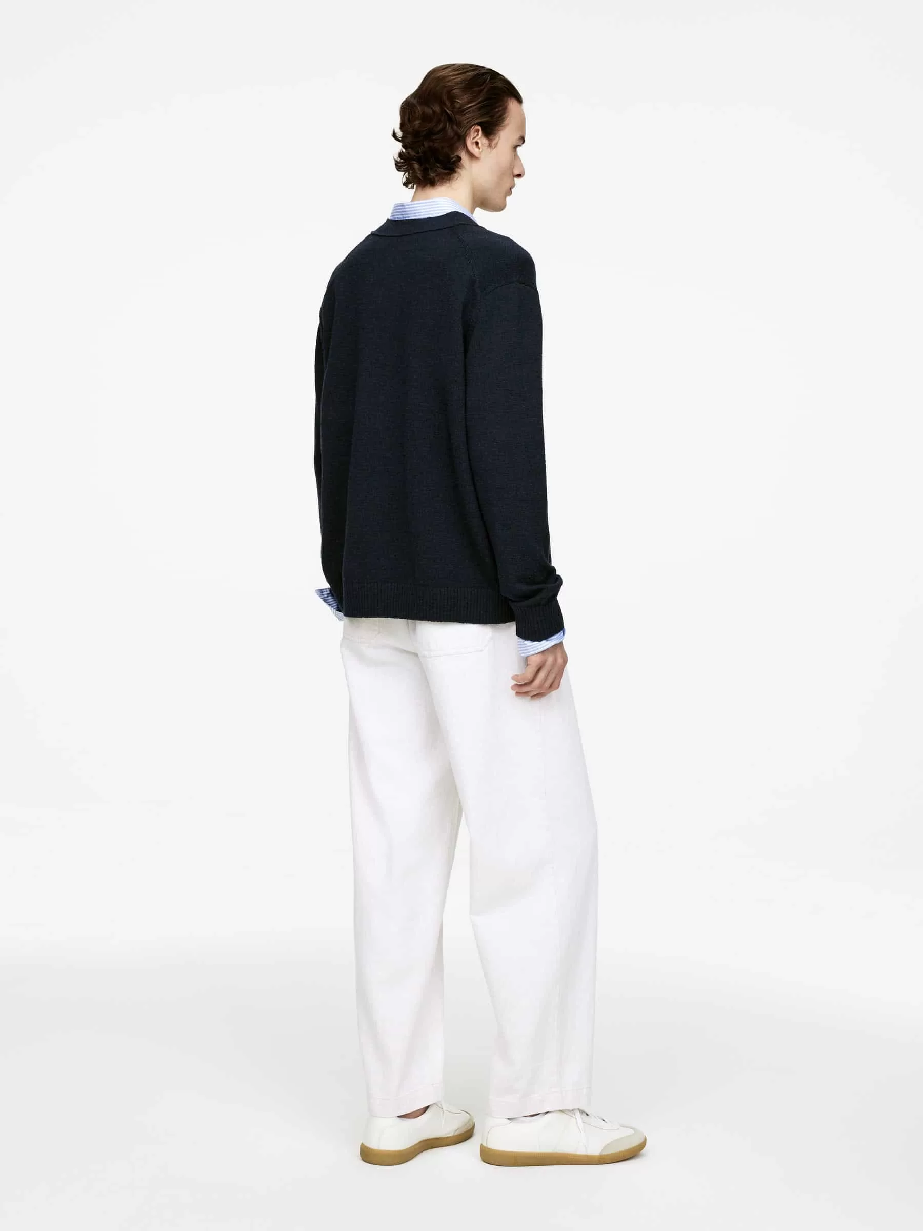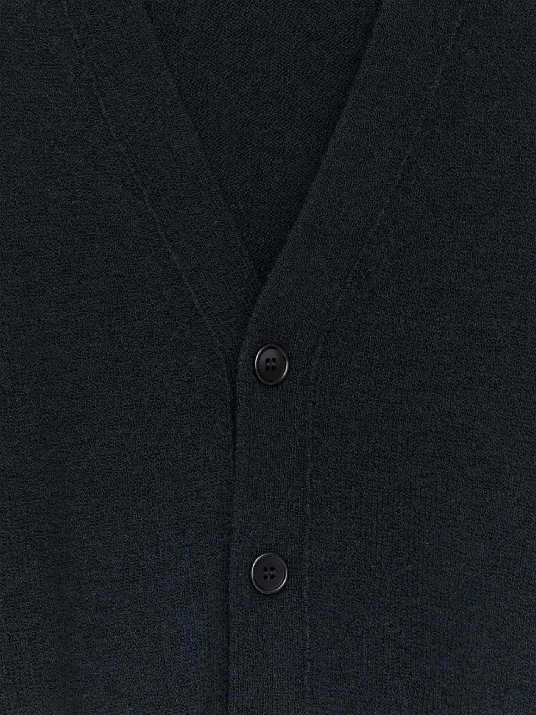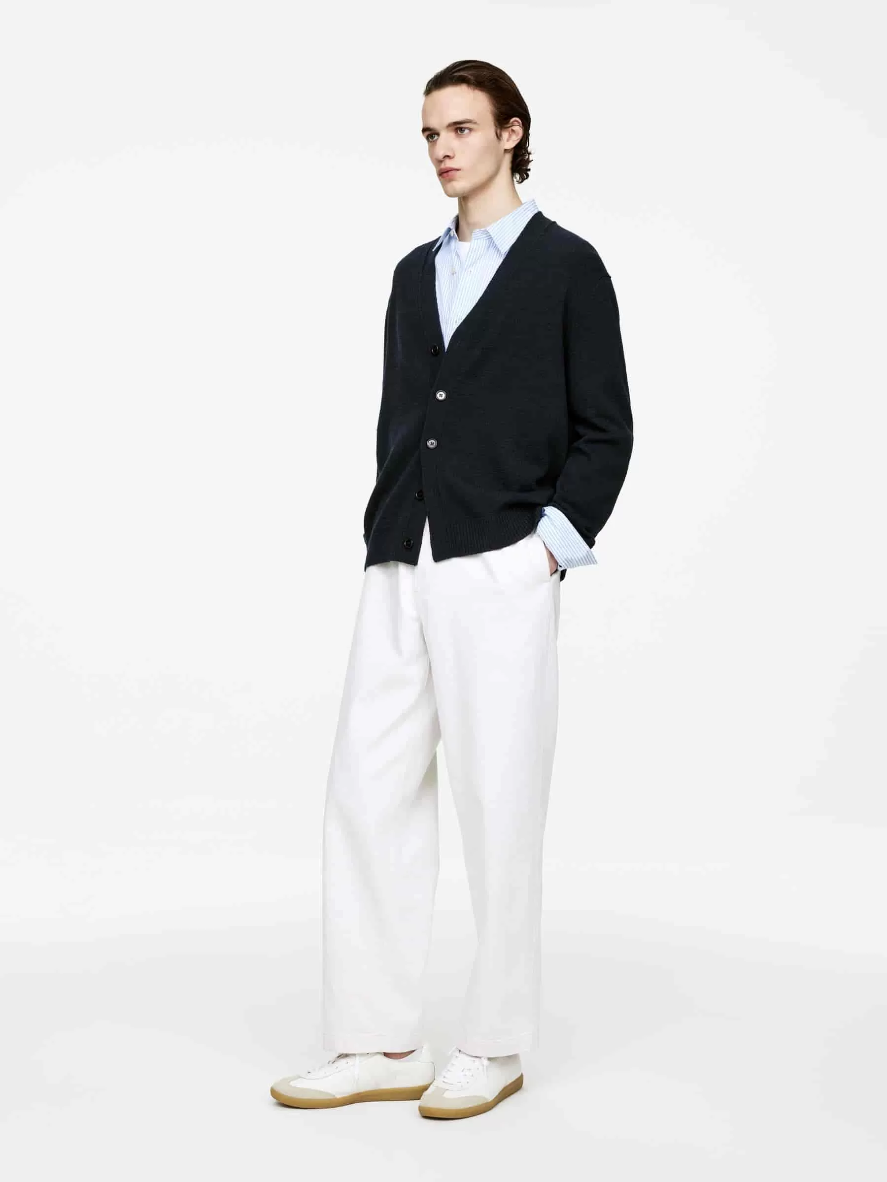 V-neck cardigan knitted in a blend of RWS wool and cotton. Detailed with front buttoning and ribbed trimmings. Relaxed fit. The product contains 60% RWS wool (TE-00047206). Products certified to the Responsible Wool Standard (RWS) contain wool fiber from farms independently certified to animal welfare and land management requirements.