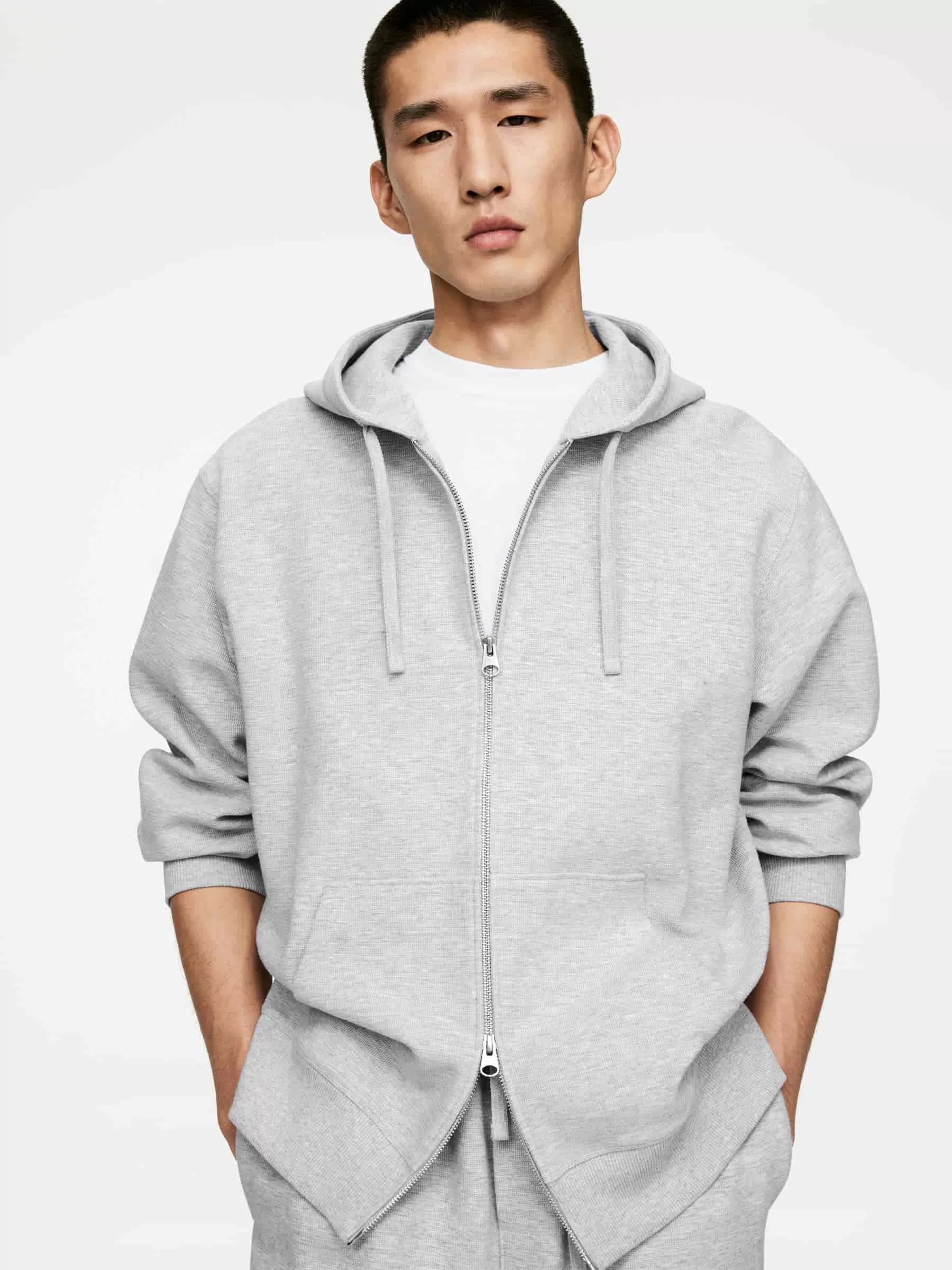 Hooded zip sweatshirt made from a double-face jersey. Styled with a two-way zip at front and large pockets. Hood with a drawstring. Matching trousers available.