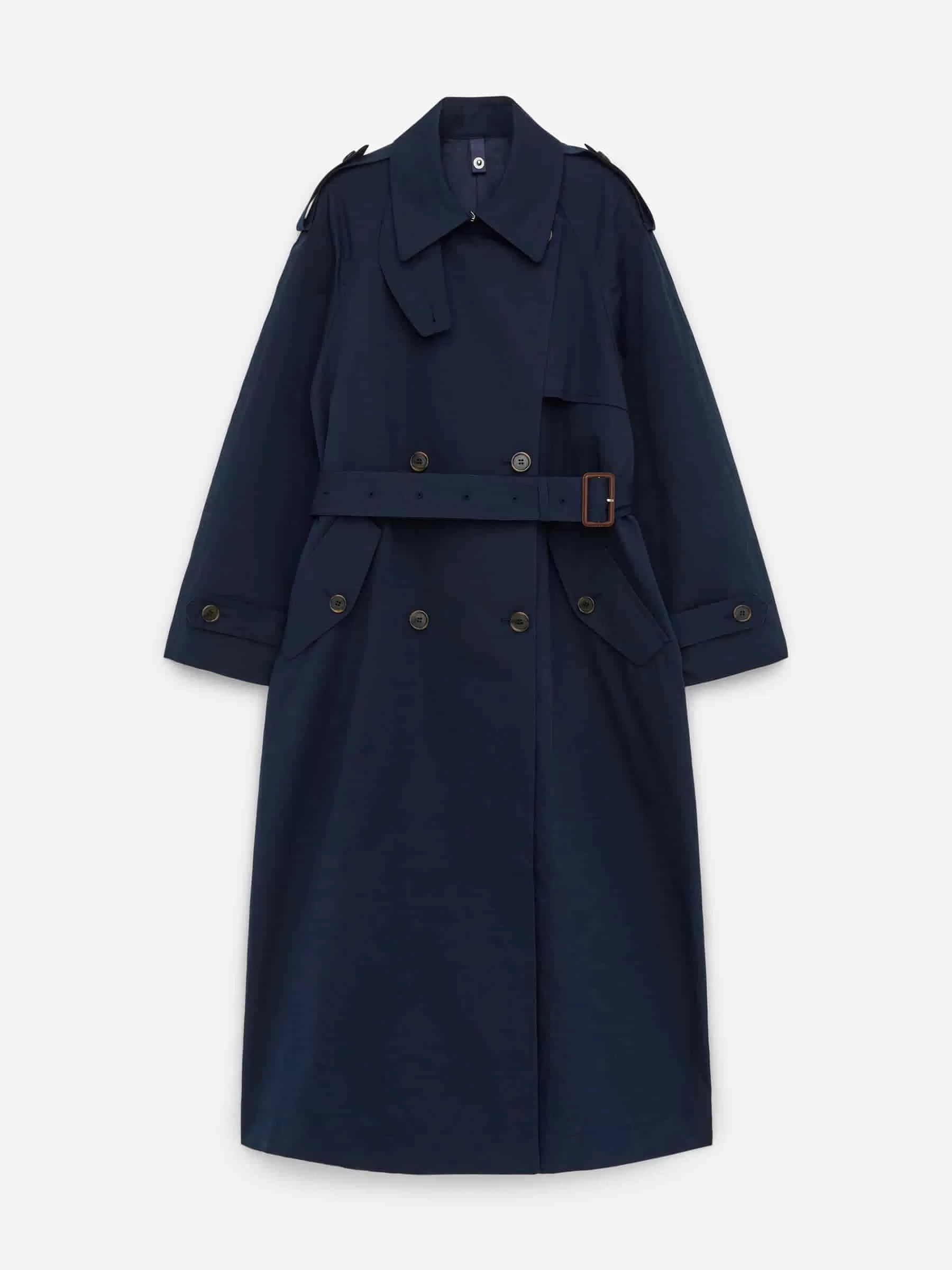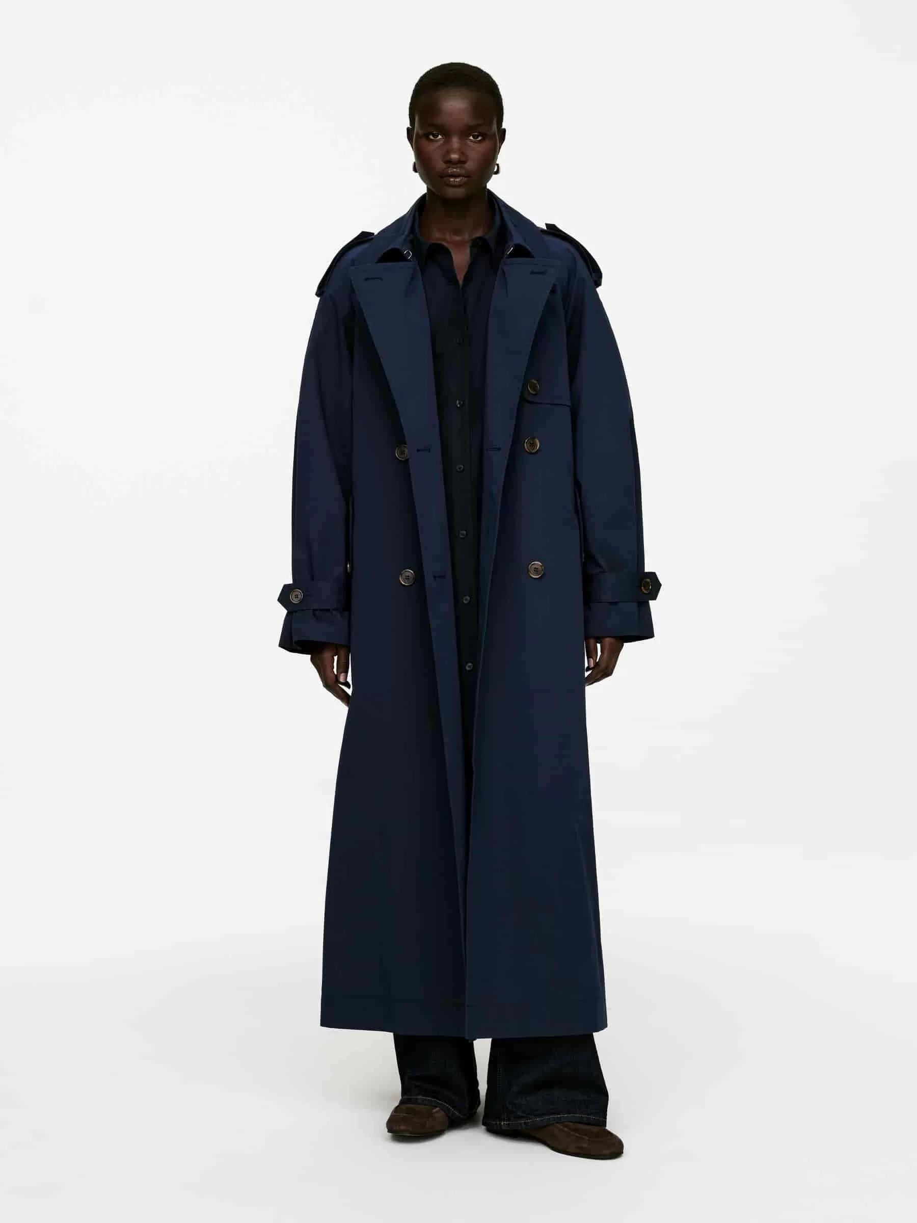 Classic trench coat crafted from a cotton blend. An oversized style featuring a belt with eyelets and lining at sleeves. This jacket is part of the ARKET 2-in-1 Series™, a system of functional shell layers and insulating liners that can be worn either as individual garments or fastened into each other.