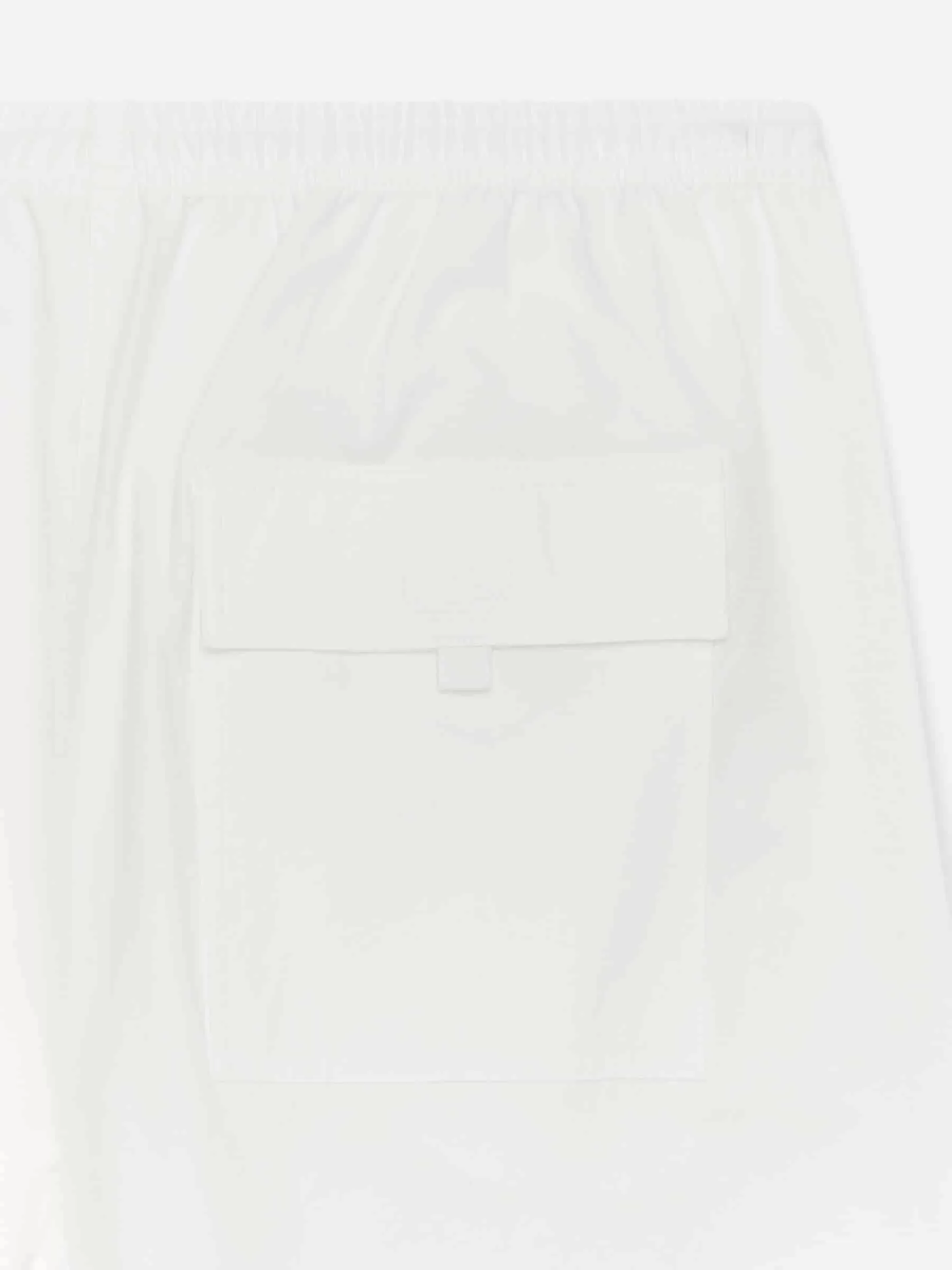 Cotton trousers with side pockets, pleats at knee and toggle at side with elastics inside waistband. One back pocket with cotton twill herringbone tape.