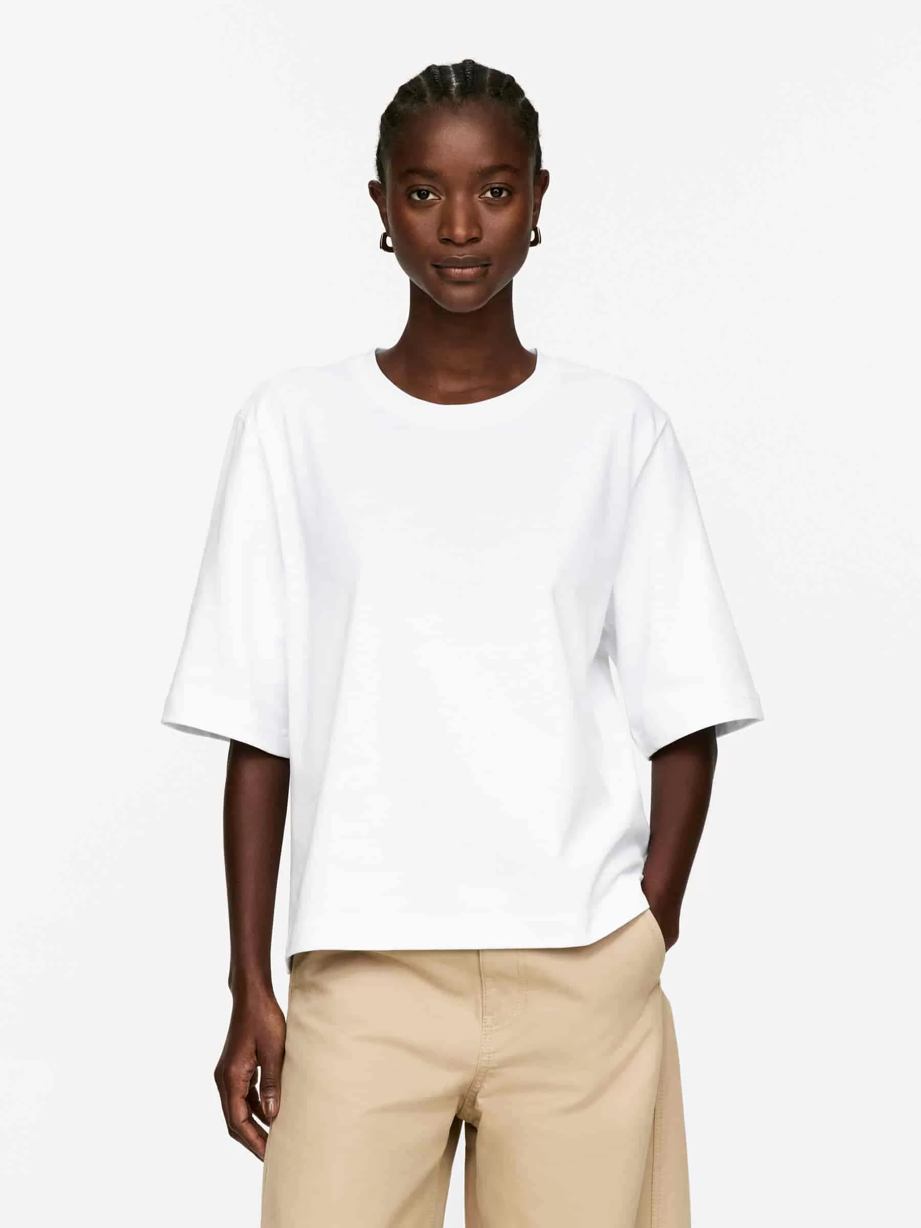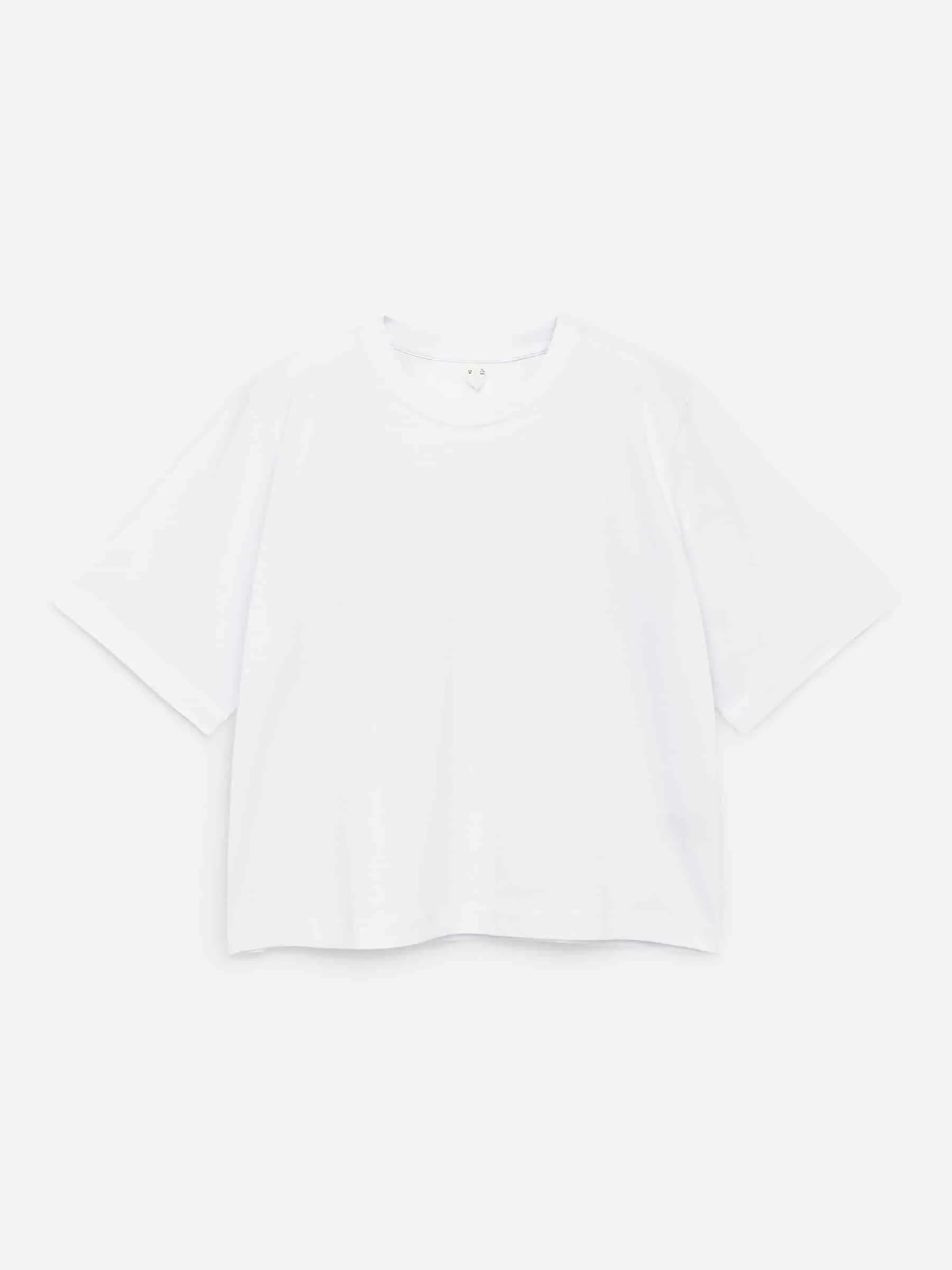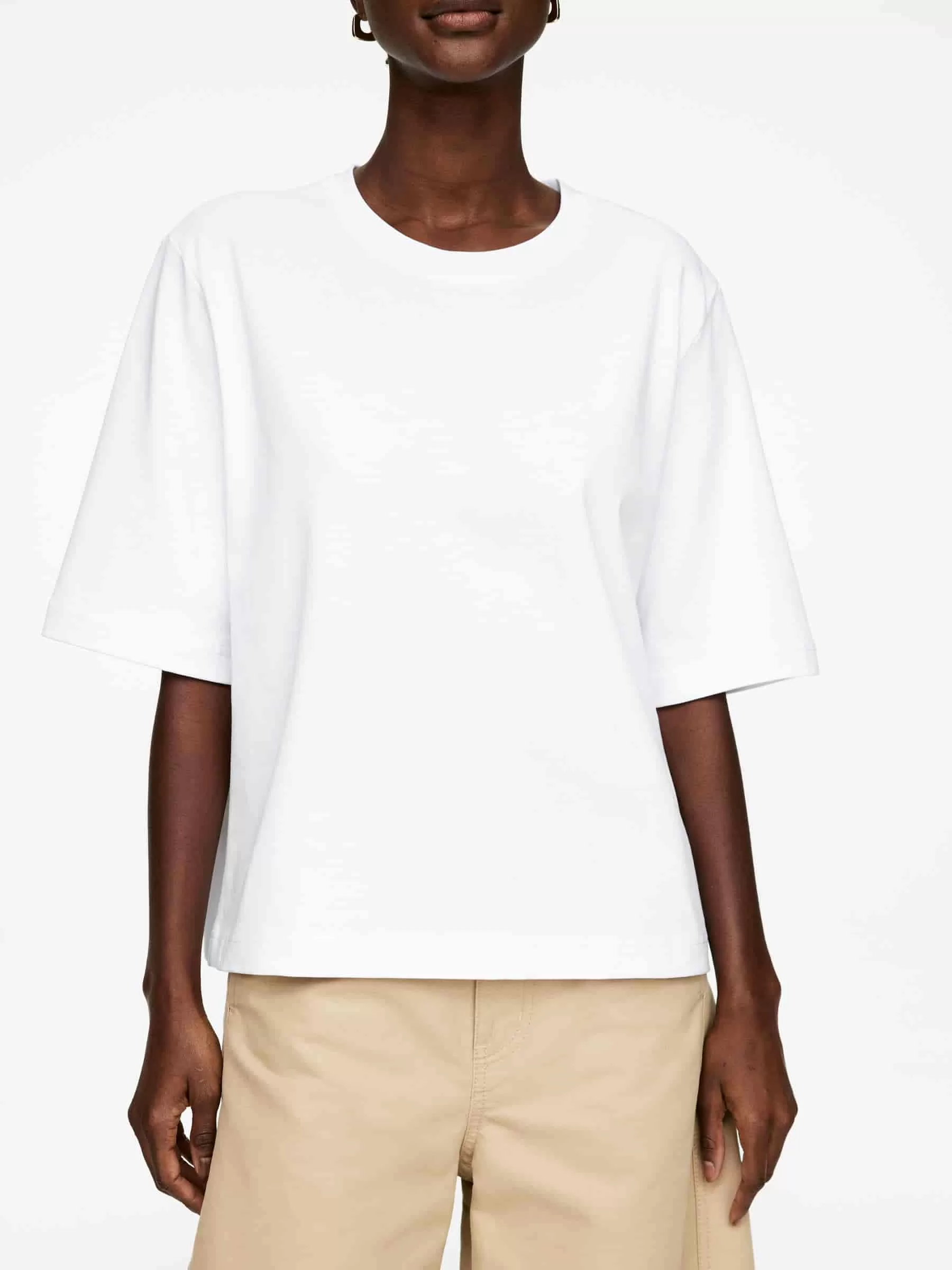 T-shirt crafted from a sturdy cotton single jersey. A short-sleeve style with a boxy fit, slightly cropped in body,