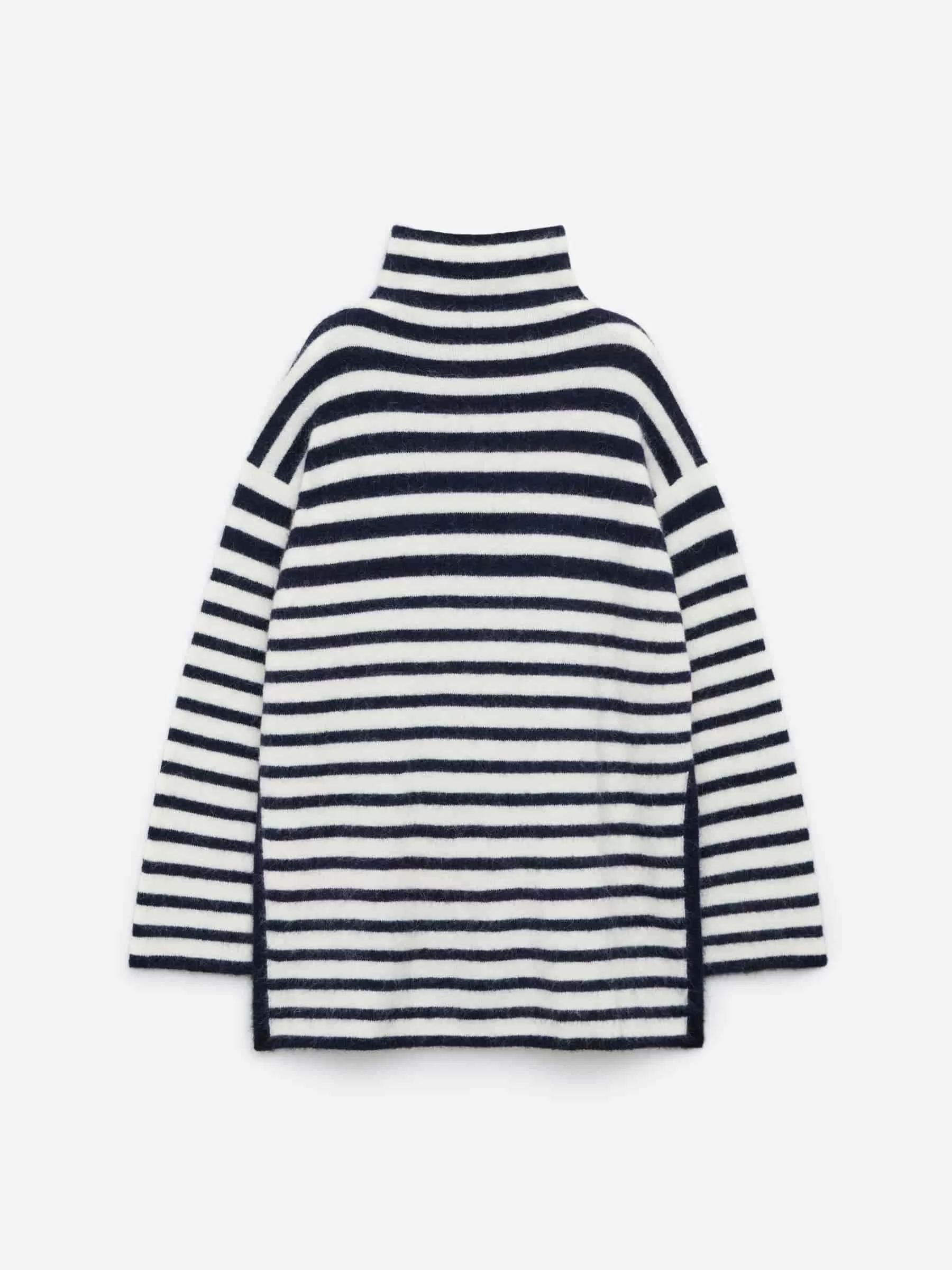 ARKE Women Alpaca-Wool Blend Chimney Jumper Blue/Off White