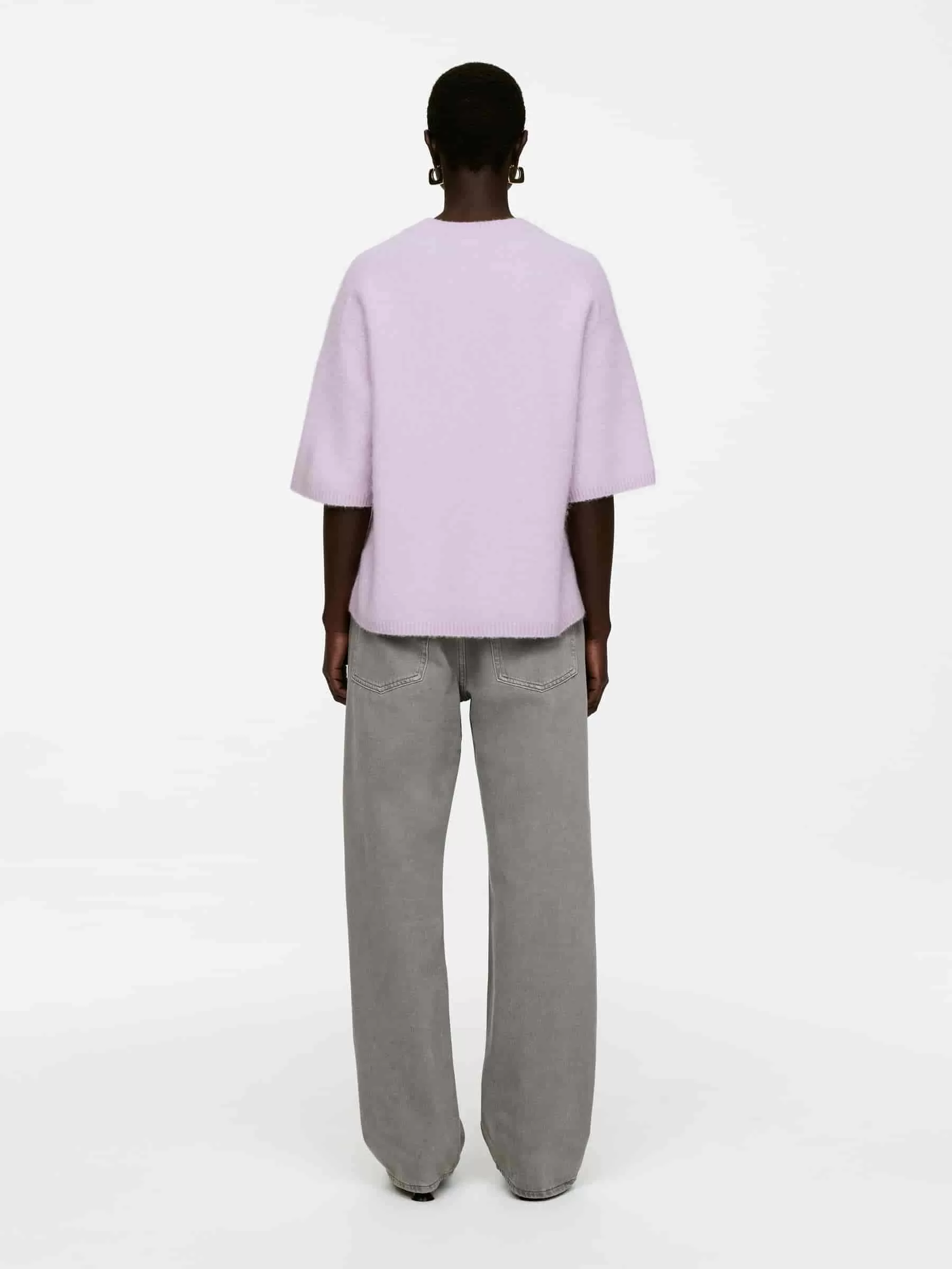 Short-sleeve jumper made with comfort-inducing alpaca and wool. A crew-neck style with a loose fit. Ribbed trims detail the look. This style contains 31% RAS Alpaca and 31% RWS wool (TE-00047206). Products certified to the Responsible Wool Standard (RWS) and the Responsible Alpaca Standard (RAS) contain wool and alpaca fiber from farms independently certified to animal welfare and land management requirements.