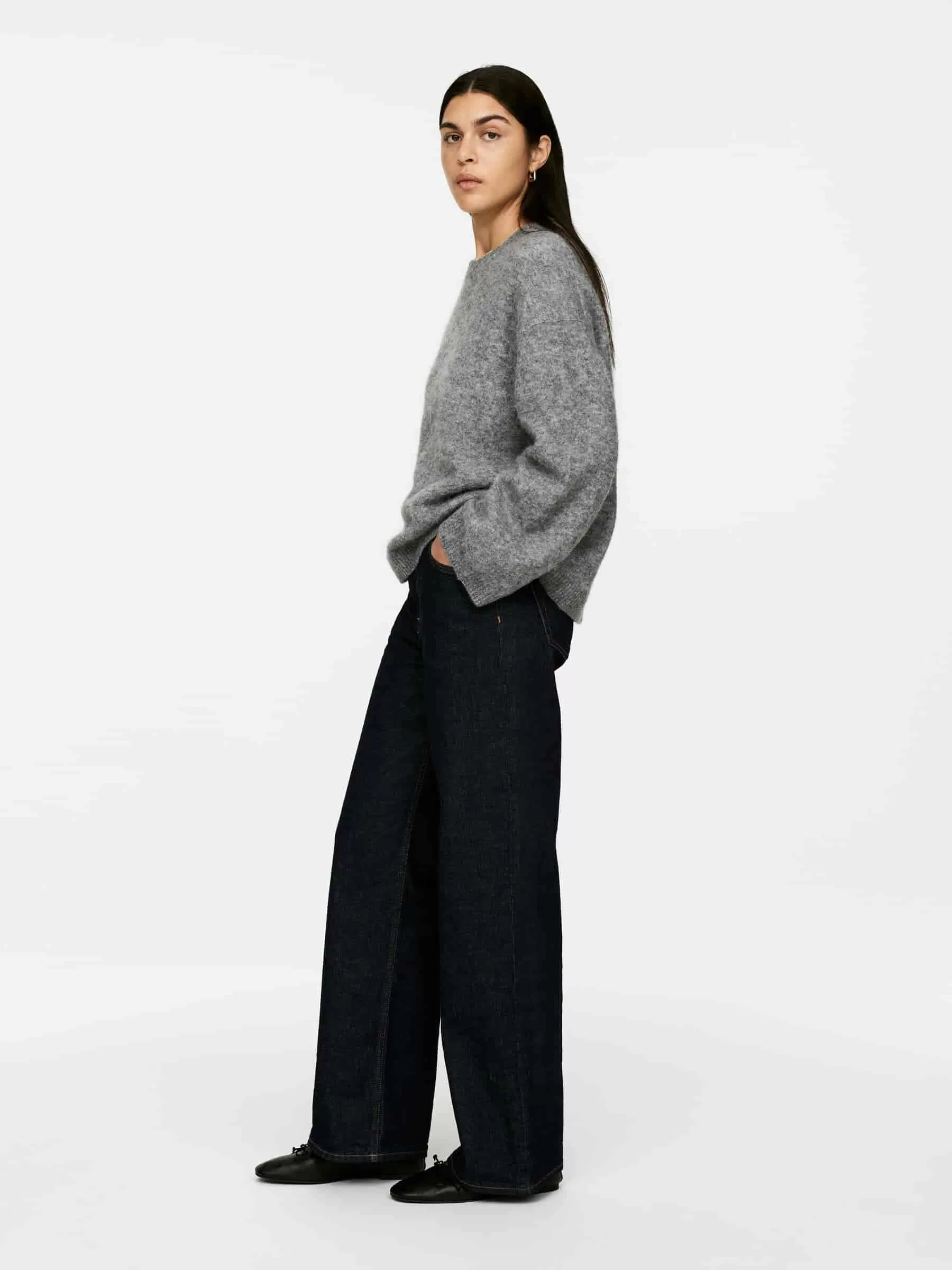 Fuzzy jumper with an oversized fit made with comfort-inducing alpaca and wool. Ribbed trims detail the look. This jumper contains 31% RAS Alpaca and 31% RWS wool (TE-00047206). Products certified to the Responsible Wool Standard (RWS) and the Responsible Alpaca Standard (RAS) contain wool and alpaca fiber from farms independently certified to animal welfare and land management requirements.
