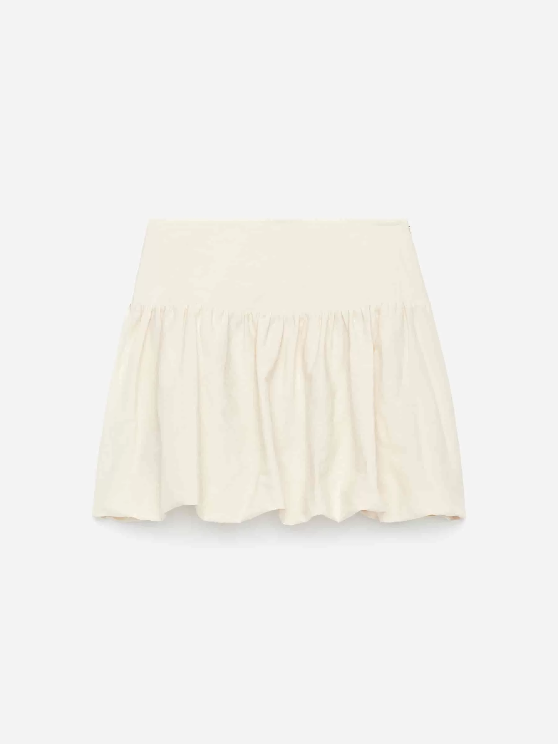 Mini skirt crafted from a cotton-linen blend, featuring a balloon hem and a hidden zip with hook-and-eye closure. Regular fit.