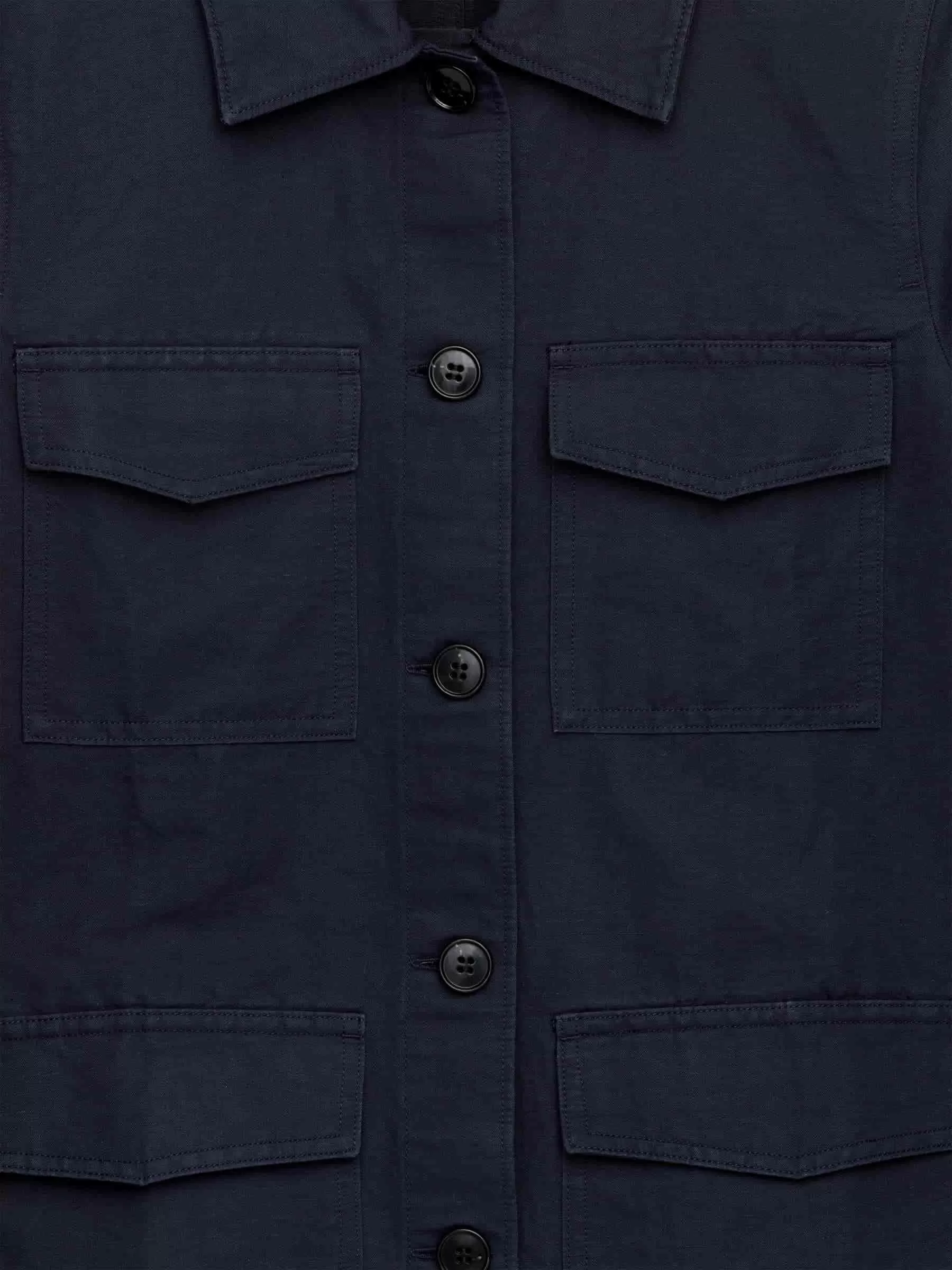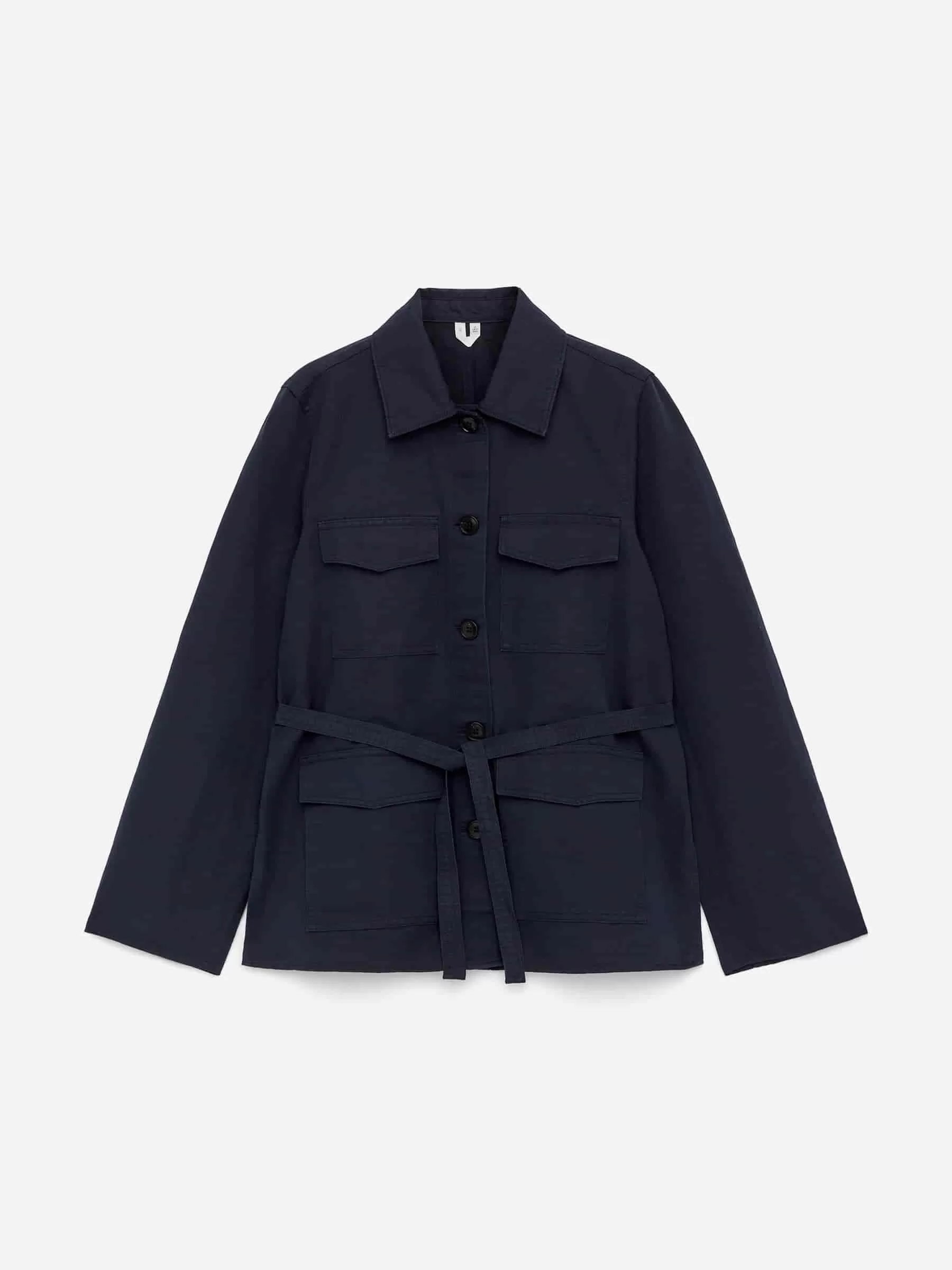 Belted overshirt with button closure, chest pockets and front pockets. Regular fit.
