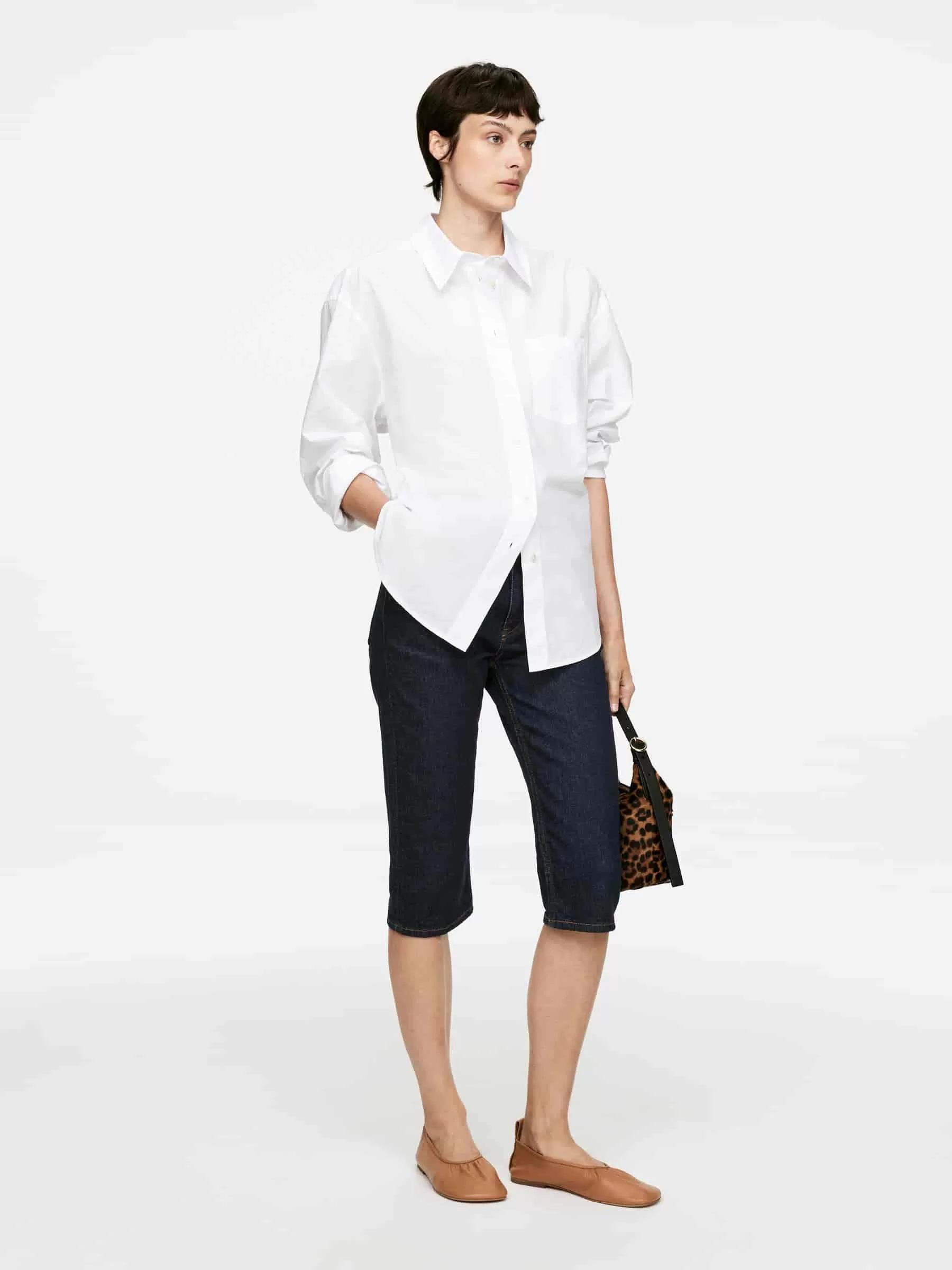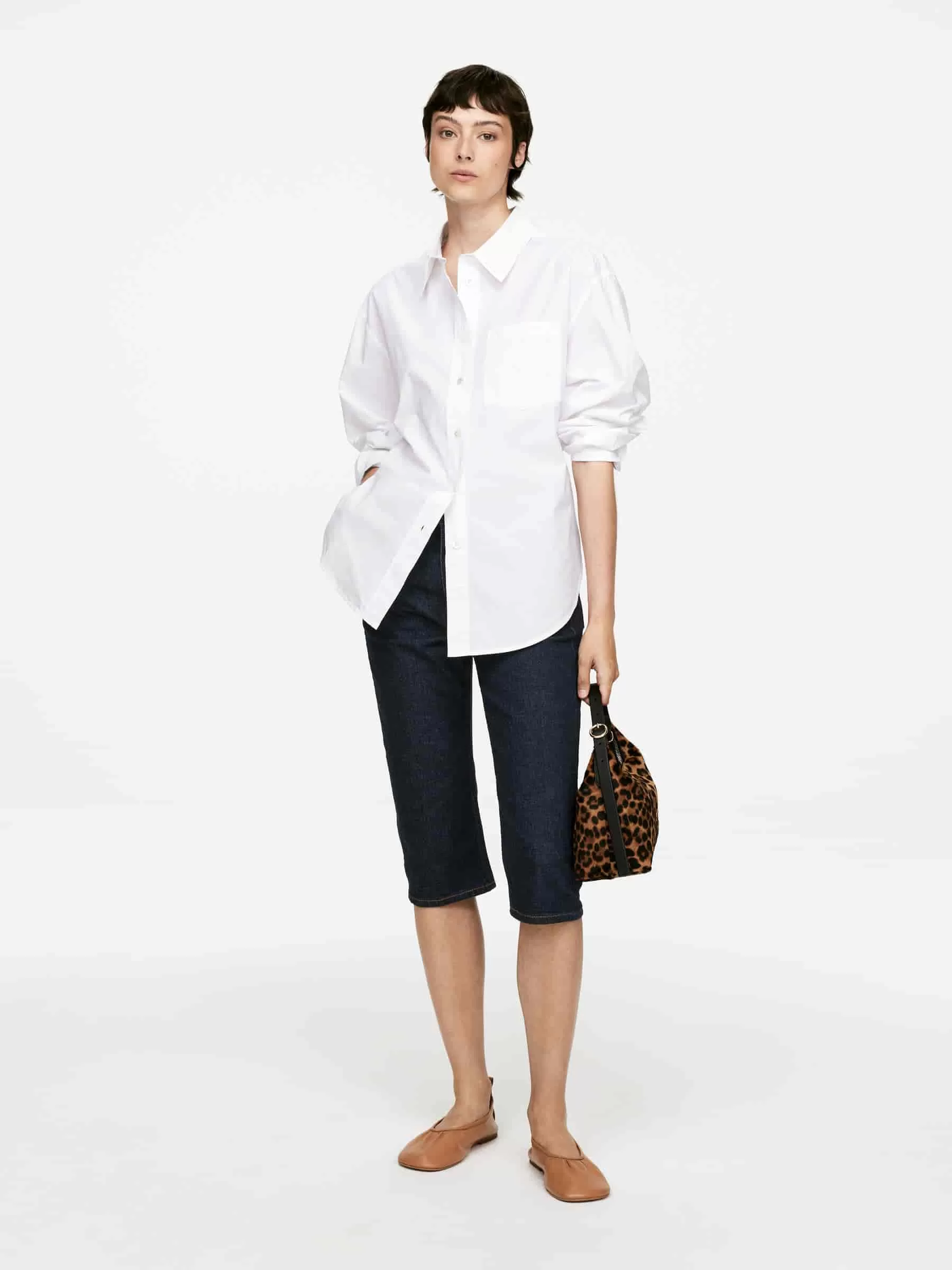BERRY is cut in a stretch denim and features a mid rise waist, slim fit and capri length legs. Zip fly.