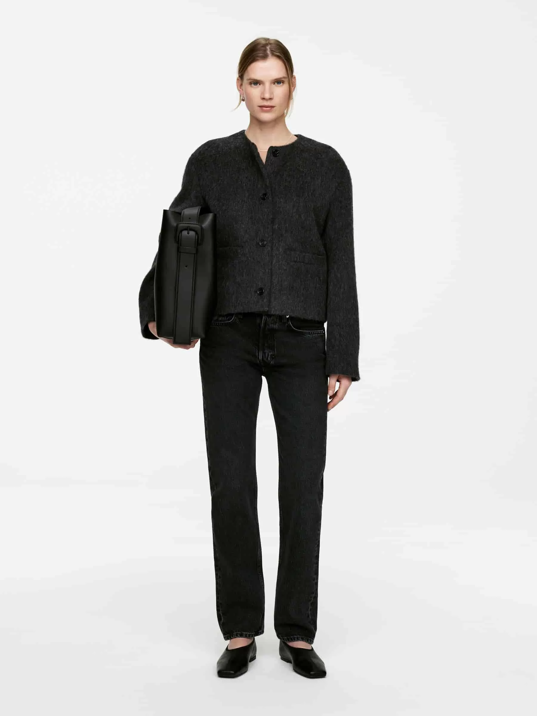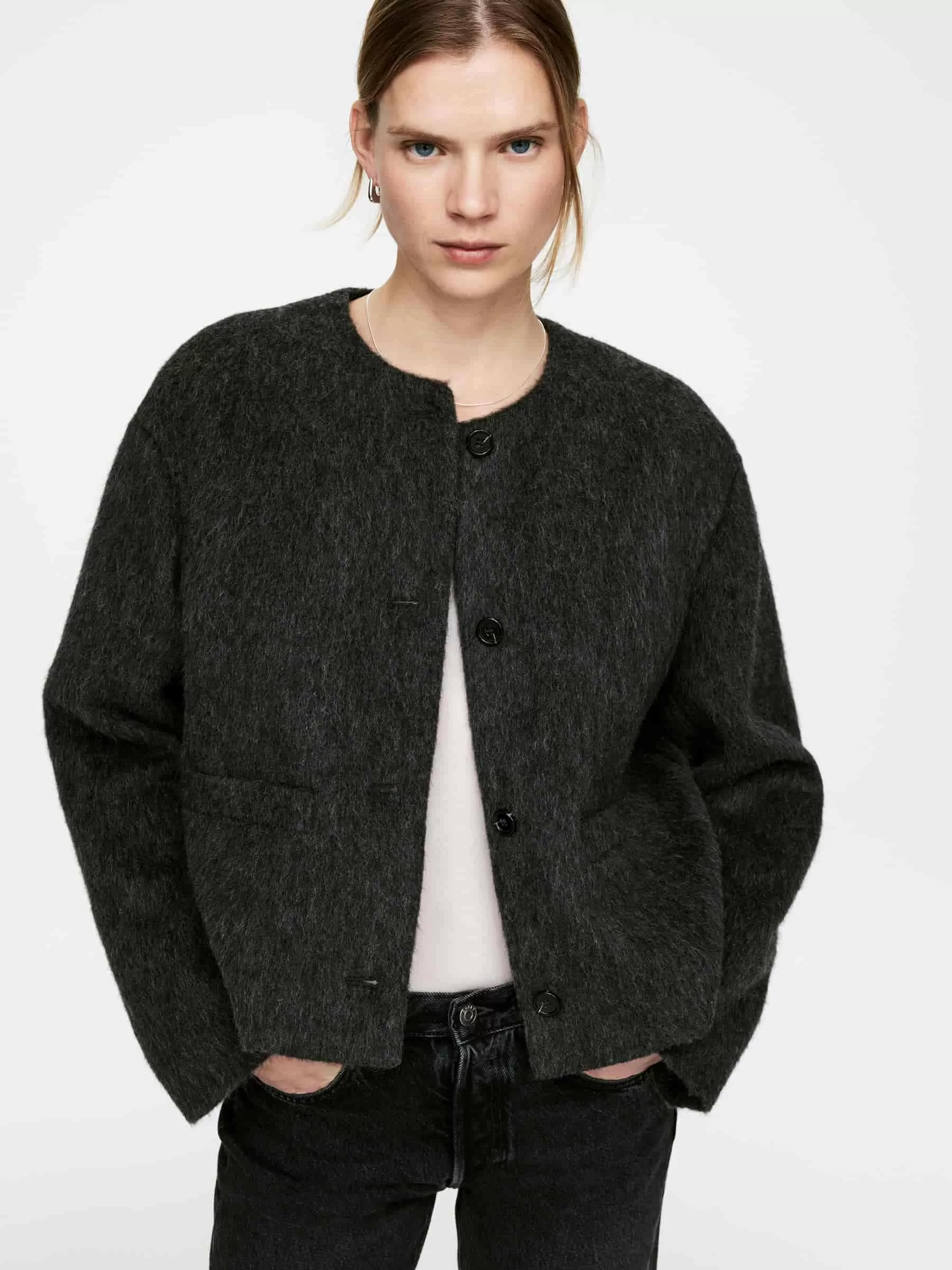 ARKE Women Brushed Wool-Blend Jacket Dark Grey