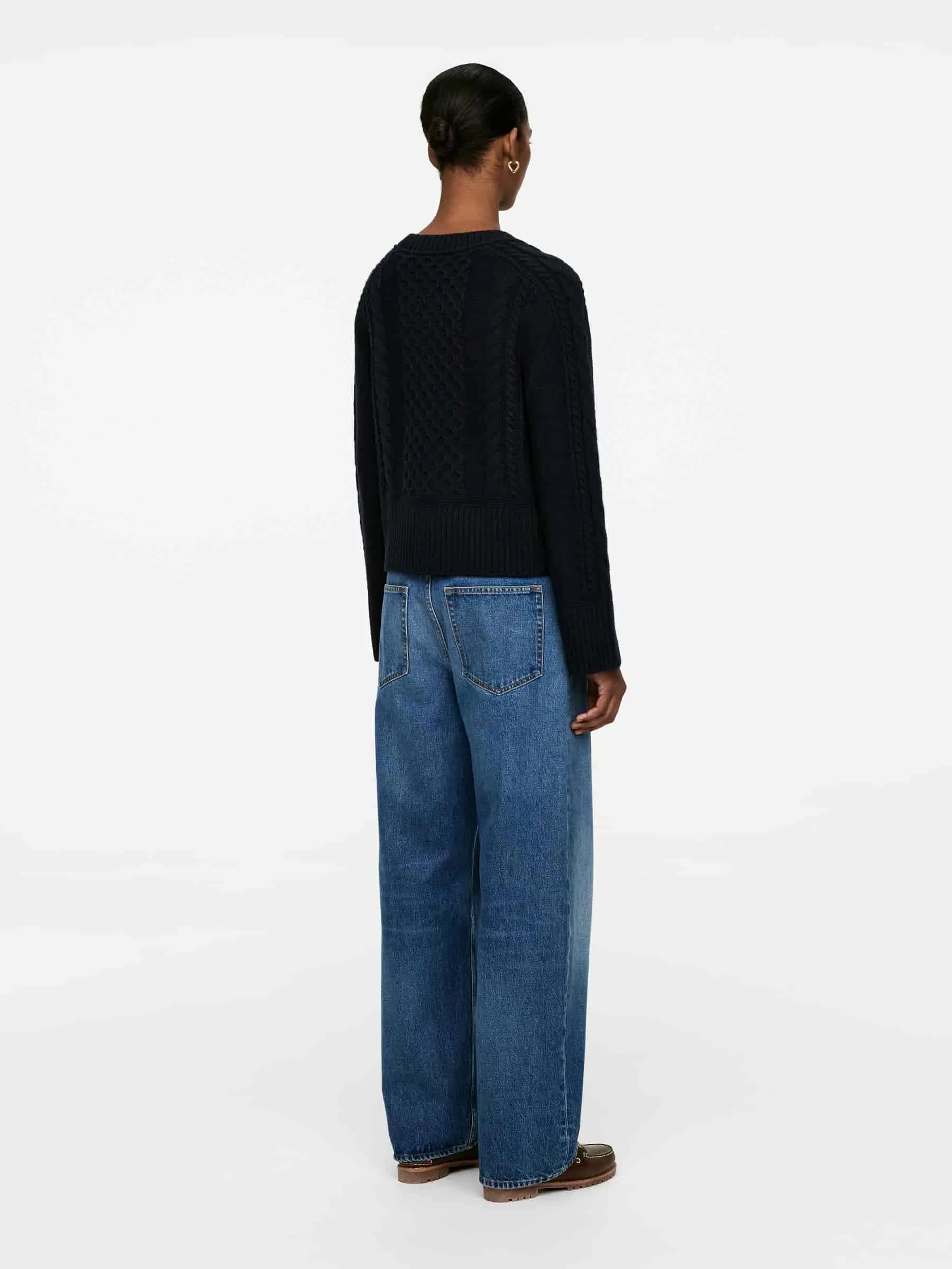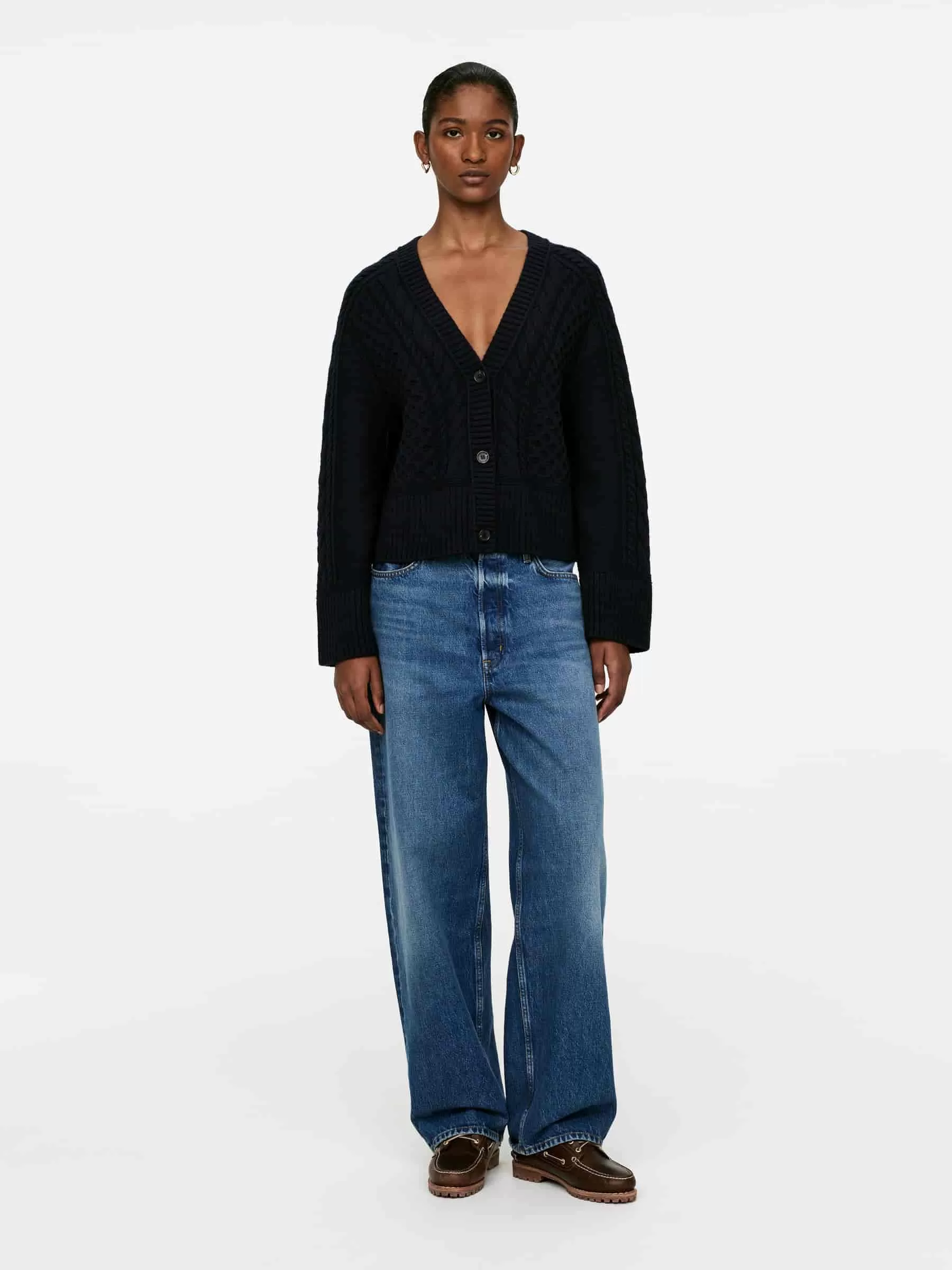 ARKE Women Cable-Knit Wool Cardigan Dark Blue