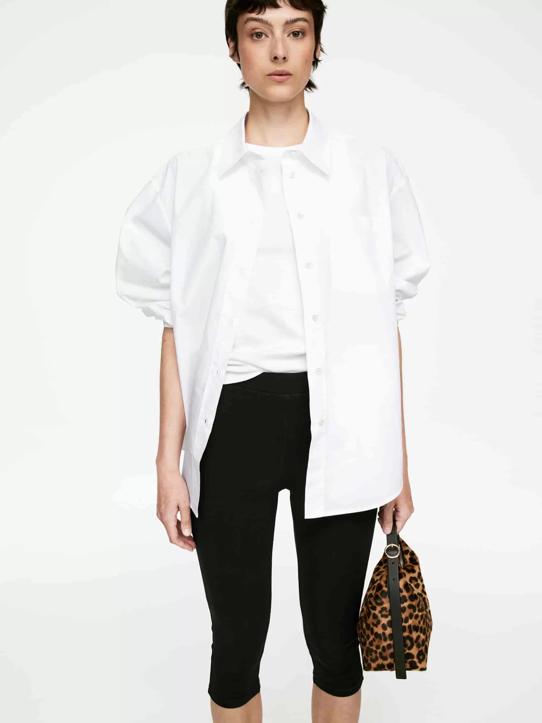 Capri leggings in a rib-knitted quality with added stretch for comfort. A mid-rise style with elastics at waist.