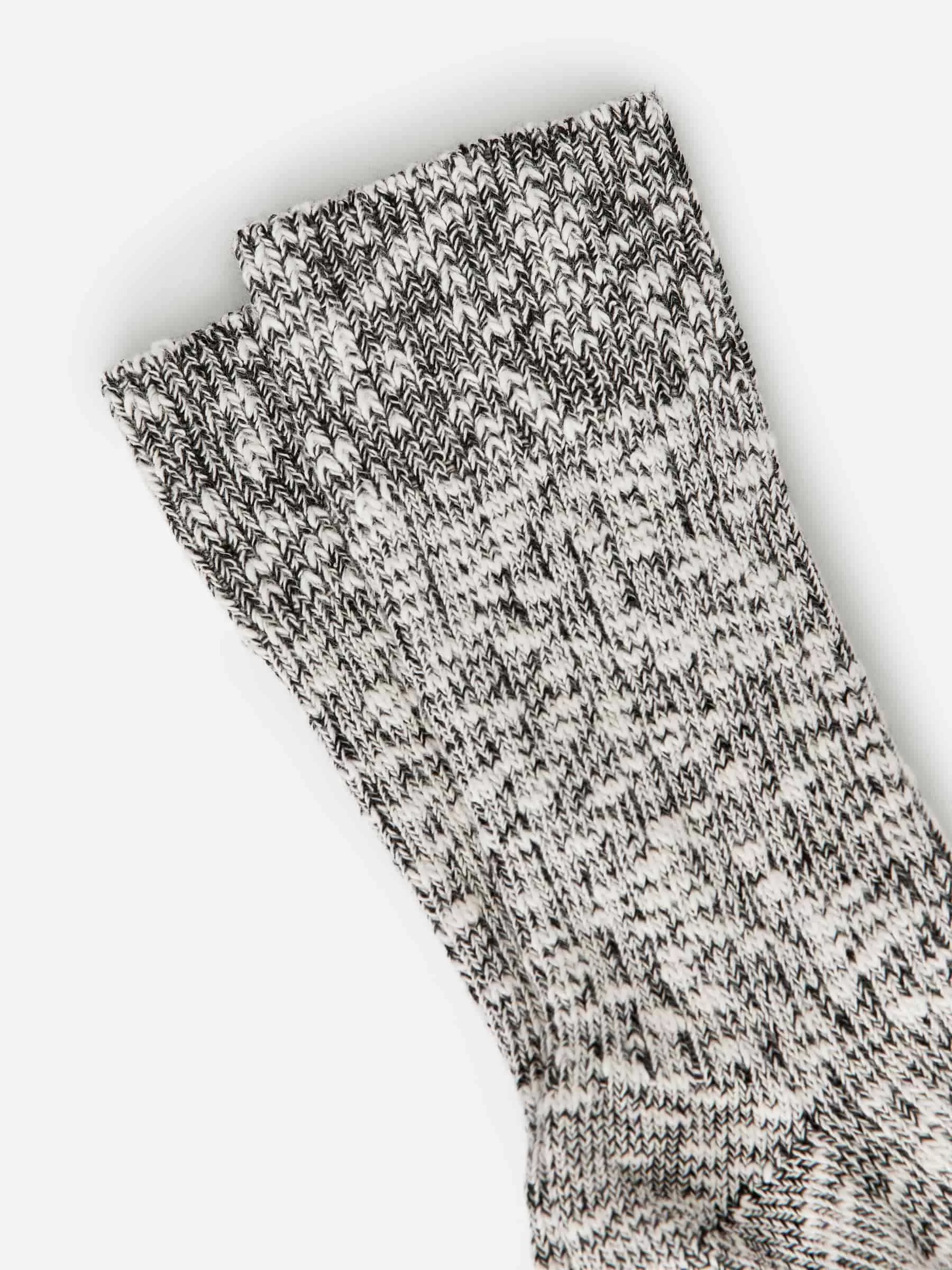 Chunky socks rib-knitted from an irregular cotton blend yarn.