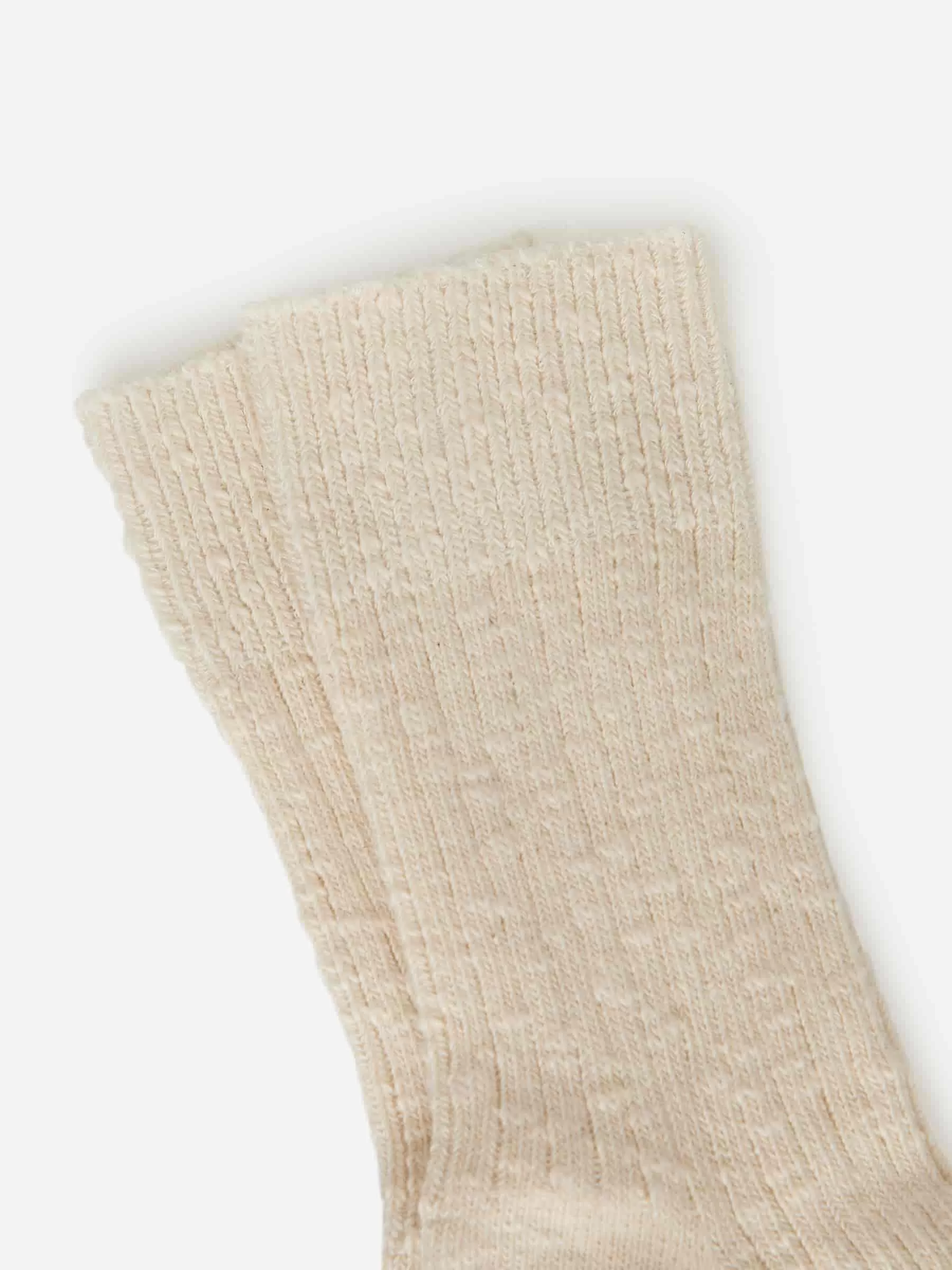 Chunky socks rib-knitted from an irregular cotton blend yarn.