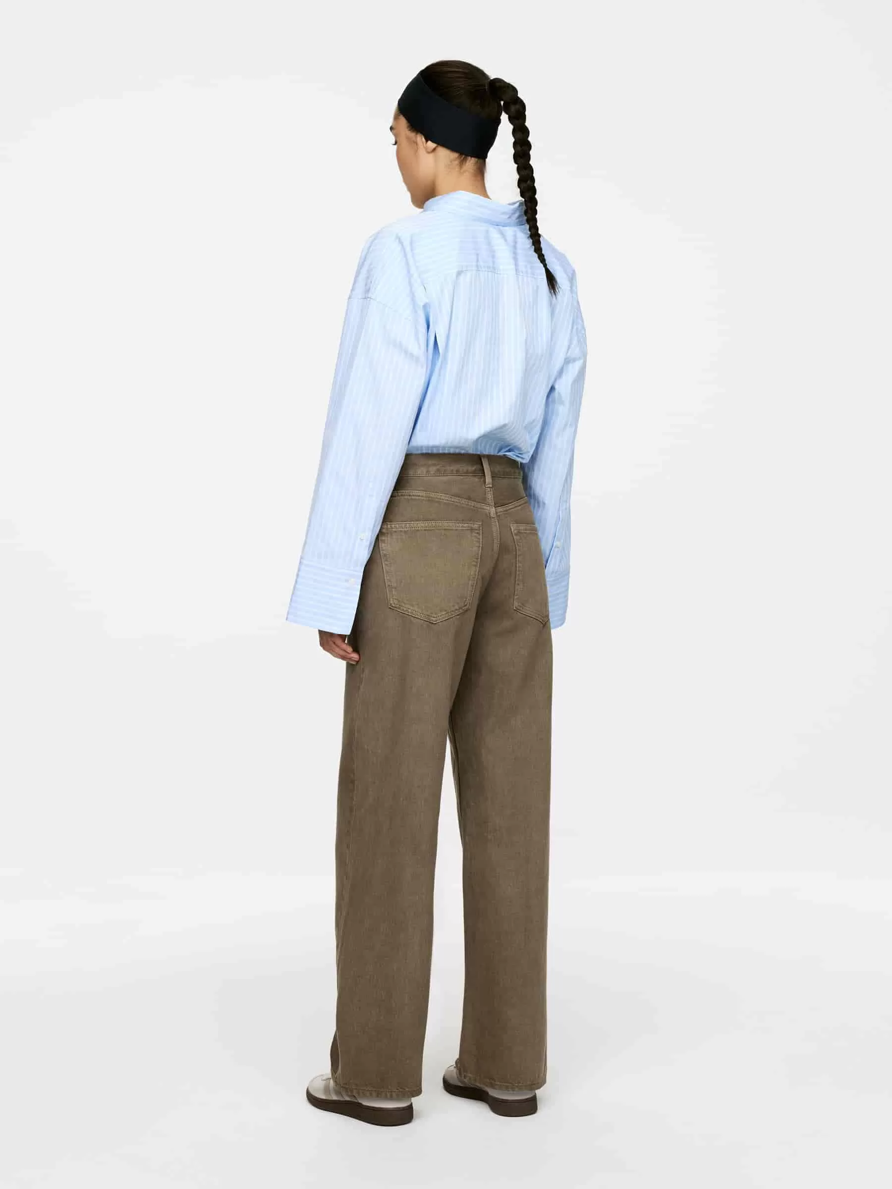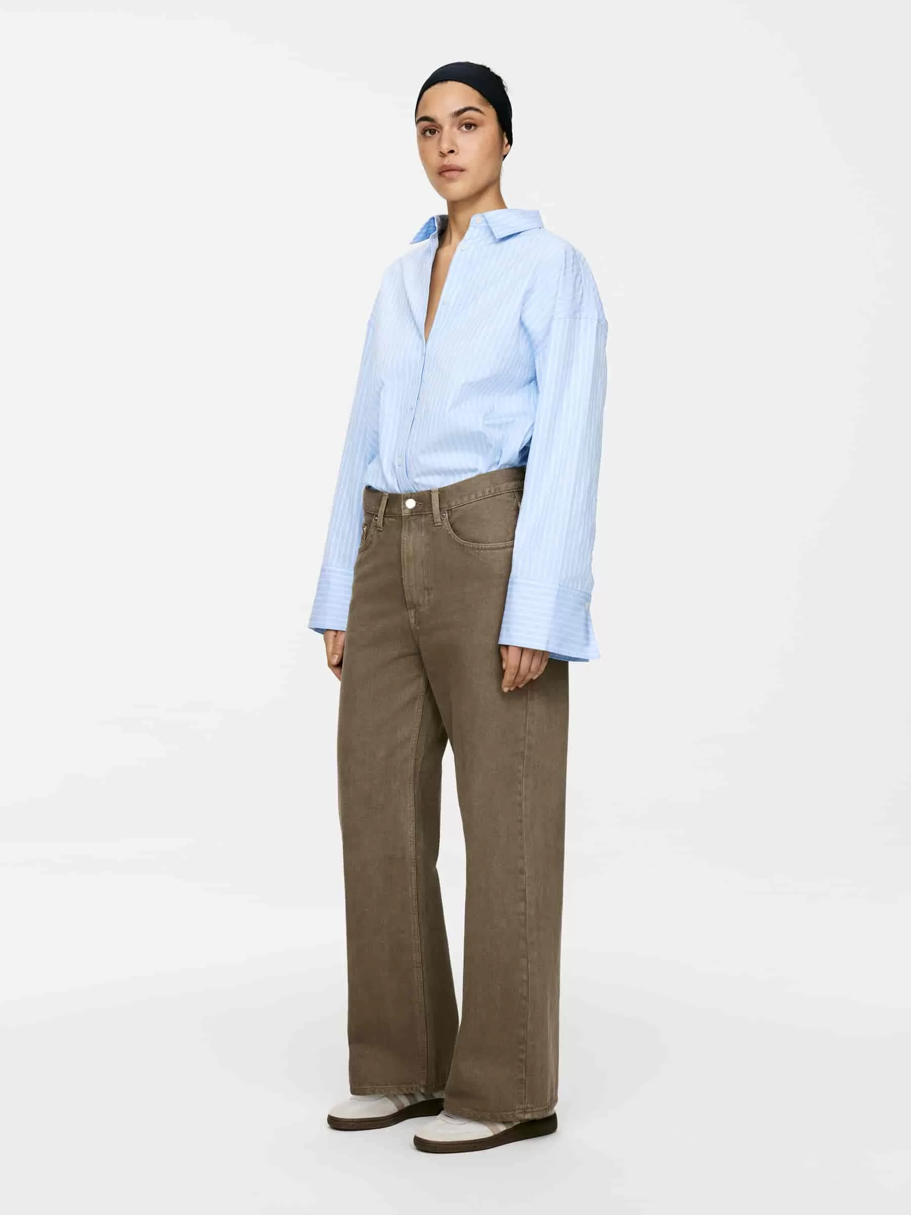 CORAL is cut from non-stretch denim and features a high-rise waist, relaxed fit and wide legs.