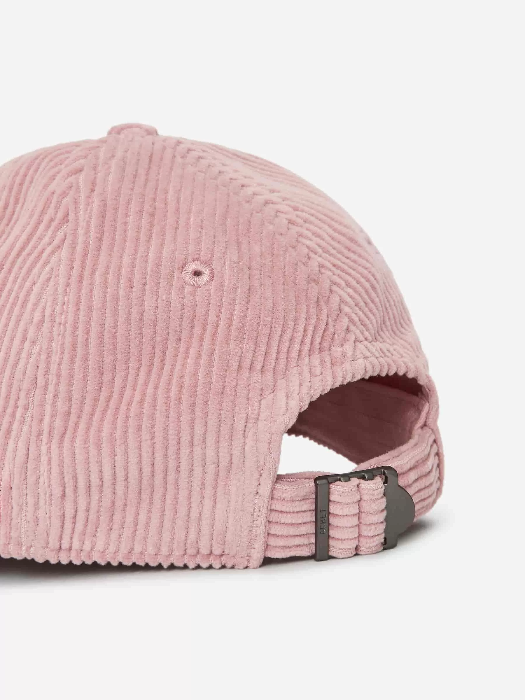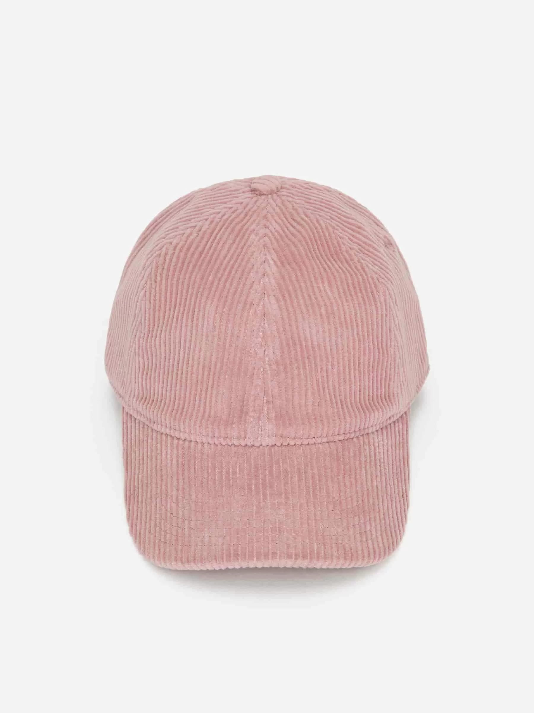 Corduroy cap featuring an adjustable strap with a metal buckle at centre back.