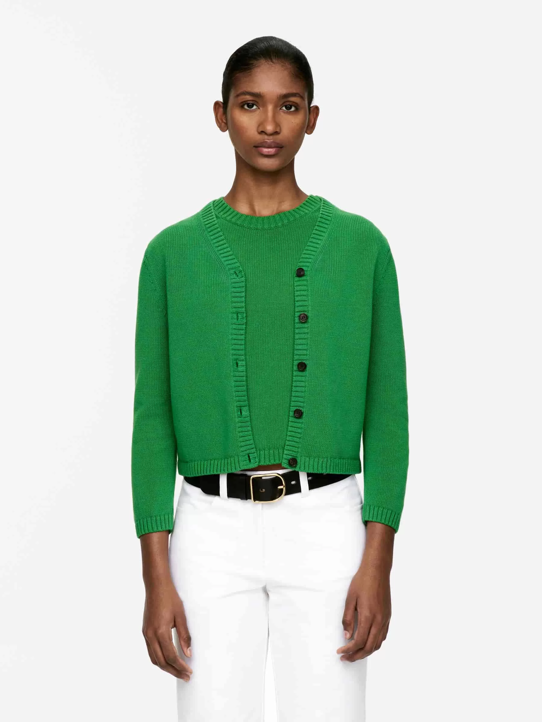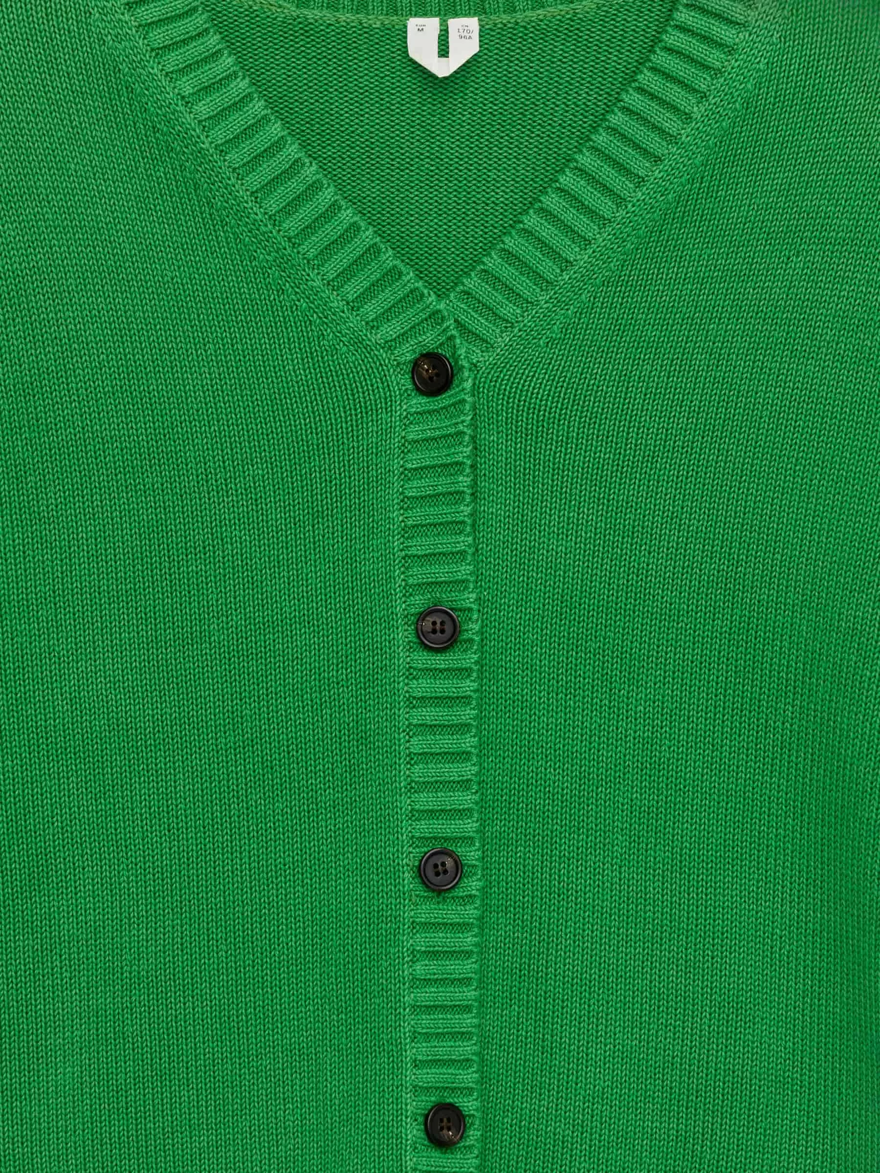 Cardigan knitted from cotton, featuring a shrunken fit, ribbed trims and button closure.