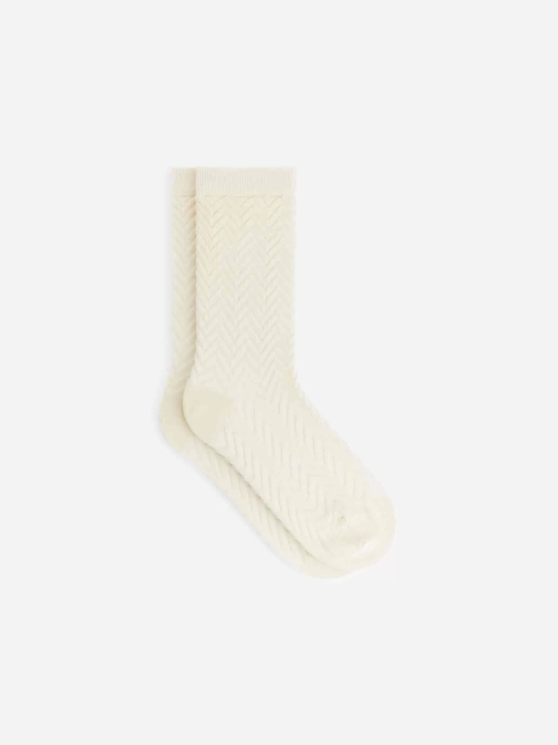 Socks knitted in a chevron stitch. Made from a cotton blend. Reinforced heel and toe.