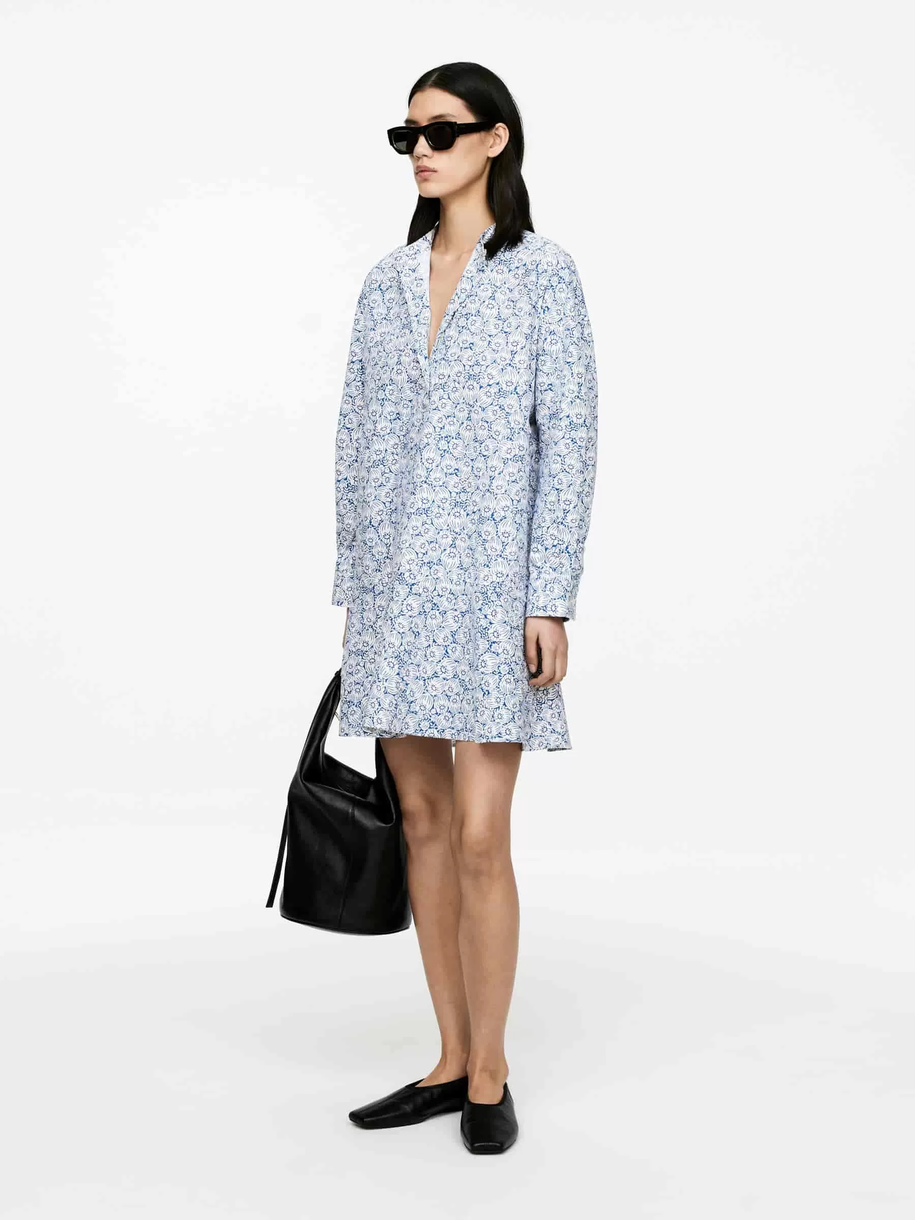 Long-sleeved mini dress crafted from cotton. This style features a buttoned half placket and a regular fit.