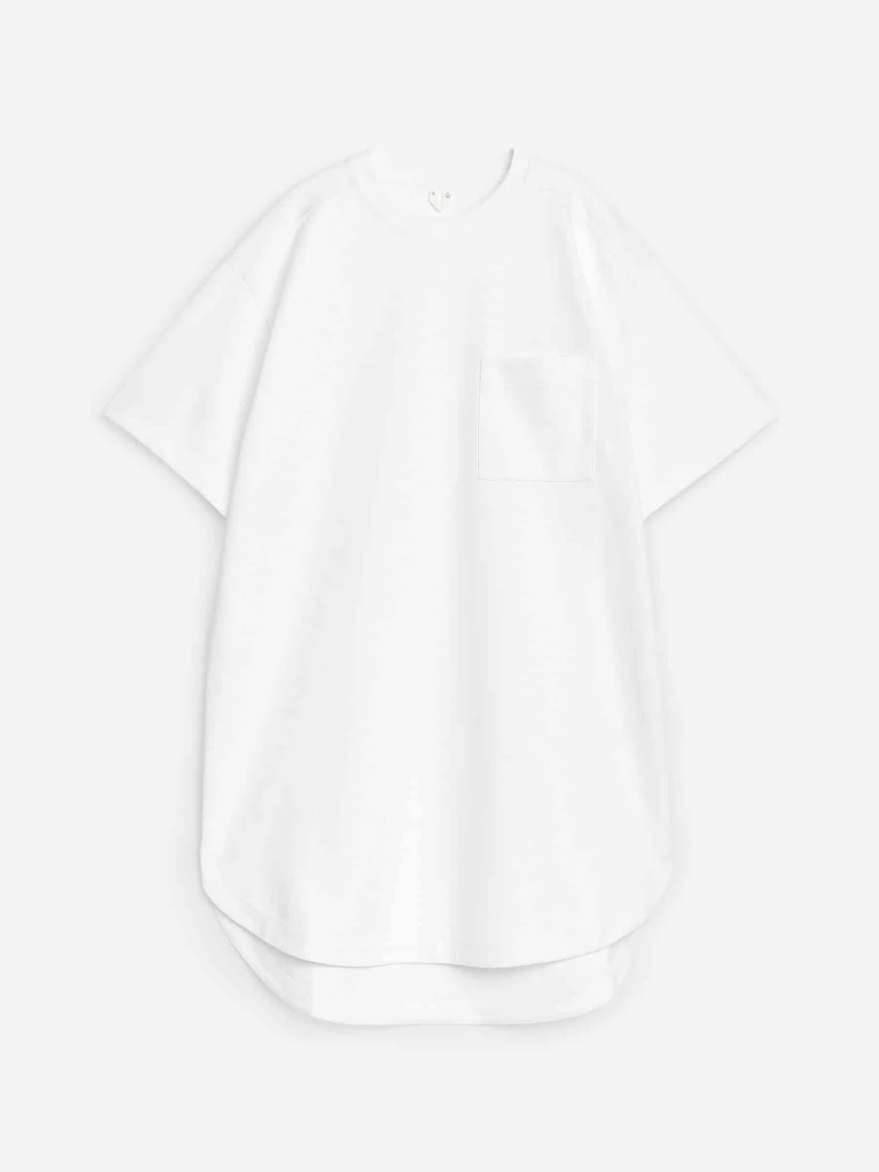 T-shirt dress made of cotton with a hint of elastane for stretch. Detailed with a patch pocket. Slightly longer in the back.