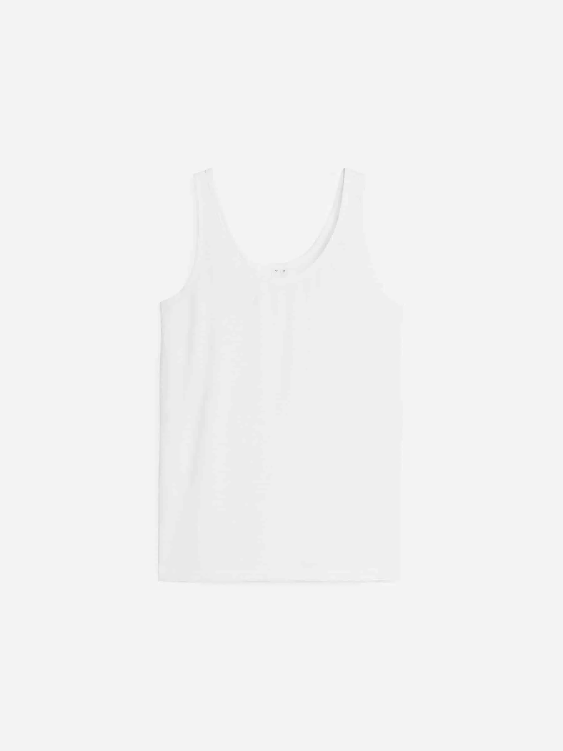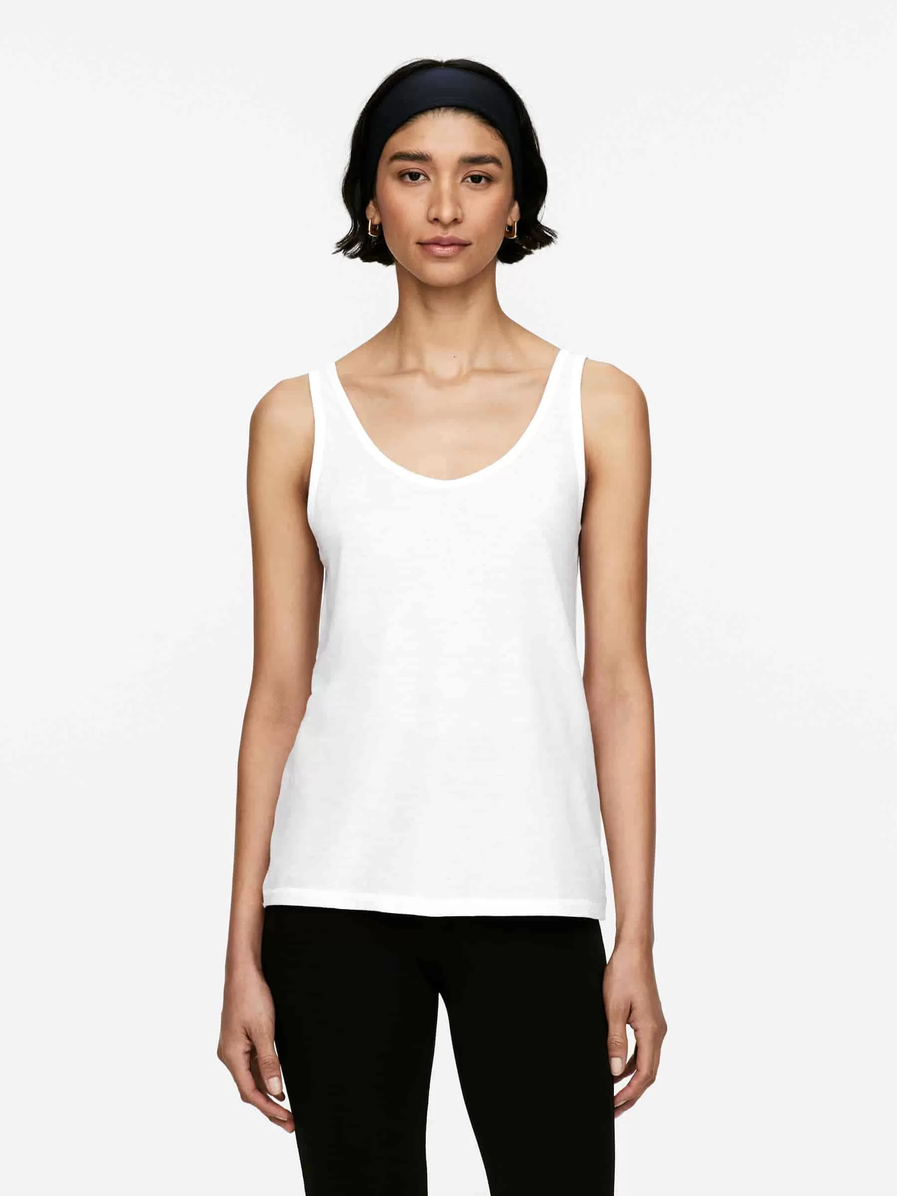 Cotton tank top crafted from a fluid crêpe quality with a crisp hand-feel. Styled with a U-neck at front and back. Regular fit.