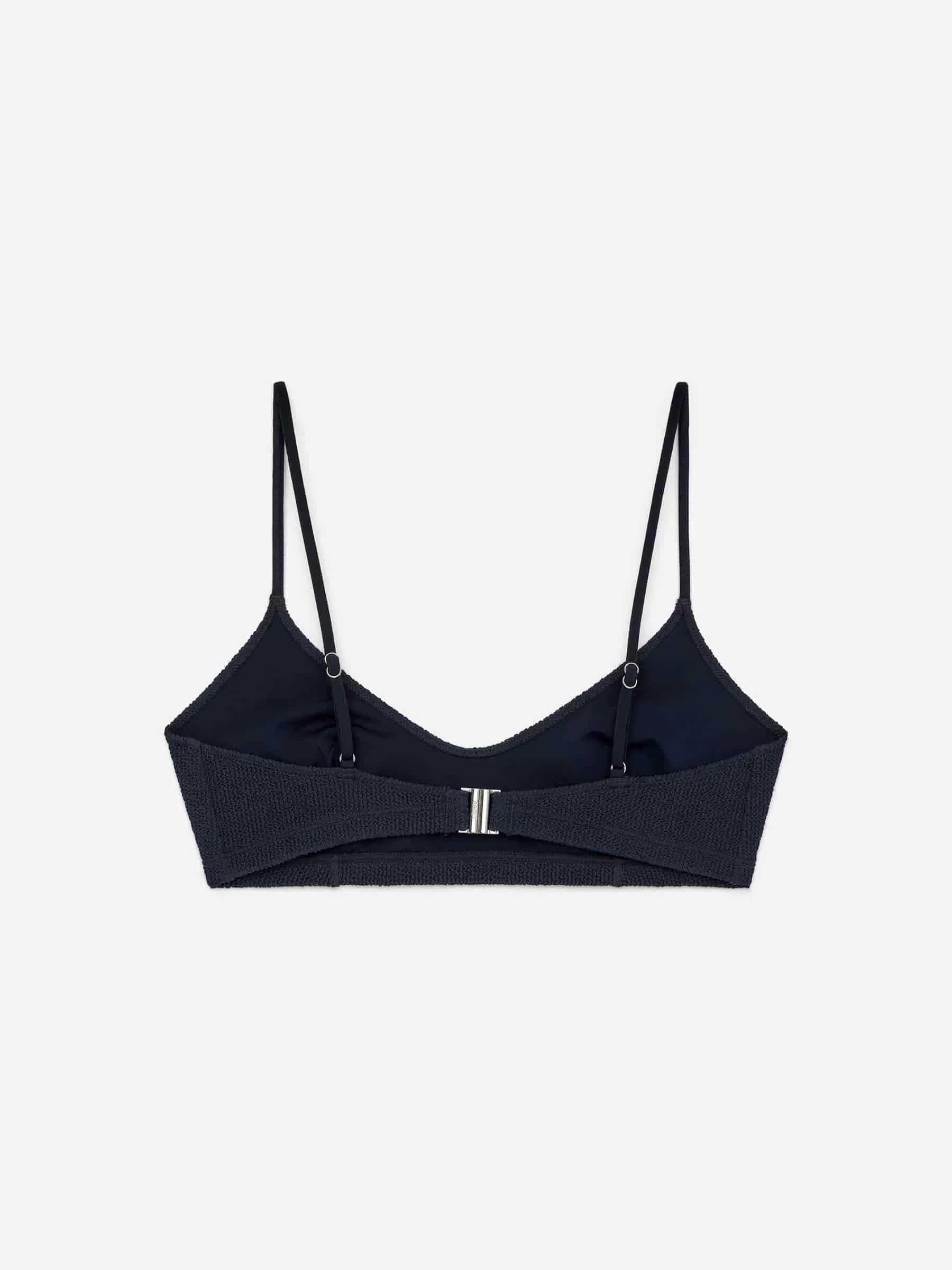 Bikini top with a crinkled surface crafted from a stretchy jersey fabric. A soft, unpadded style designed with slender, adjustable straps. Stitched darts at cups for a good shape. Light support. Lined at front.