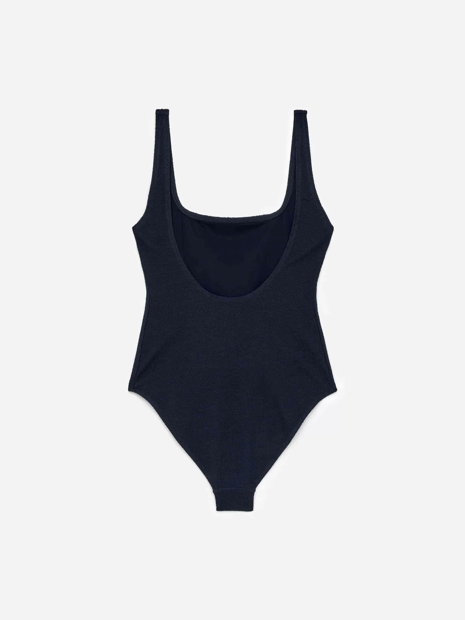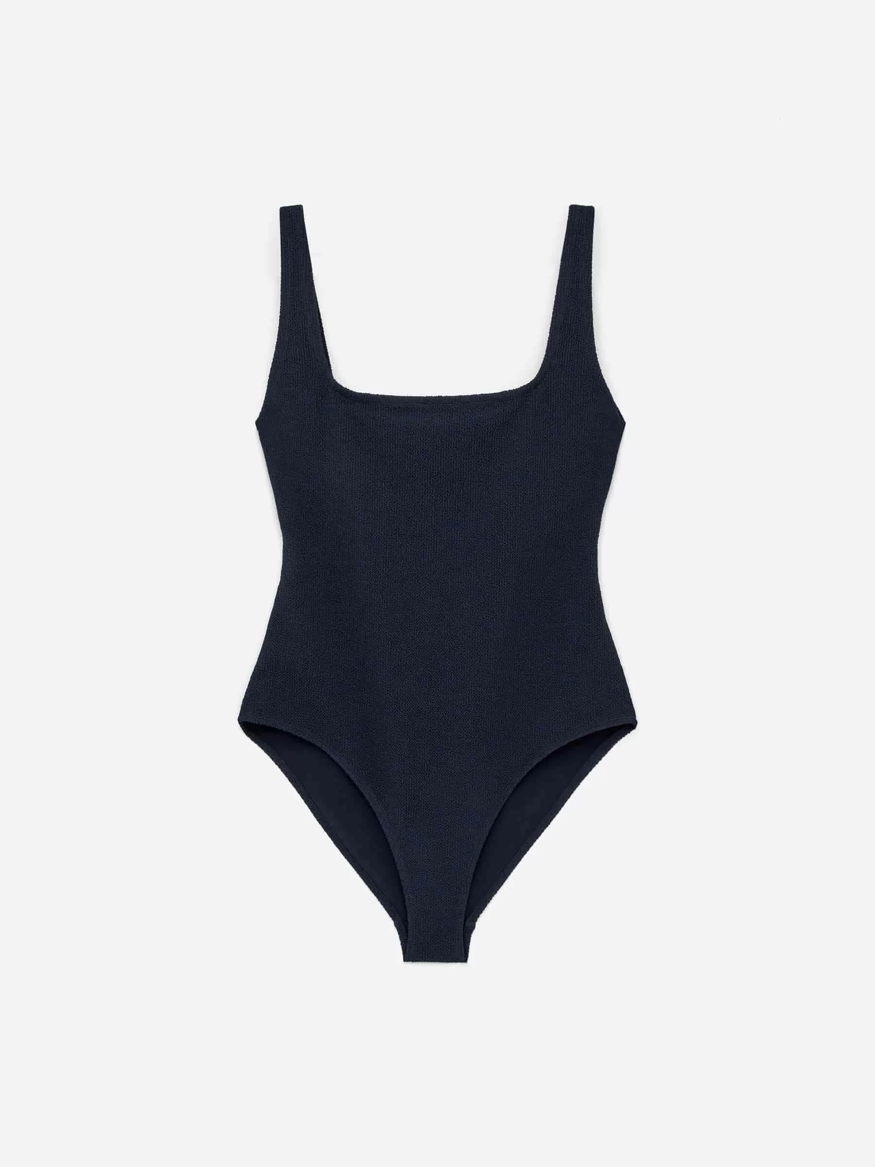 ARKE Women Crinkle Square Neck Swimsuit Dark Blue