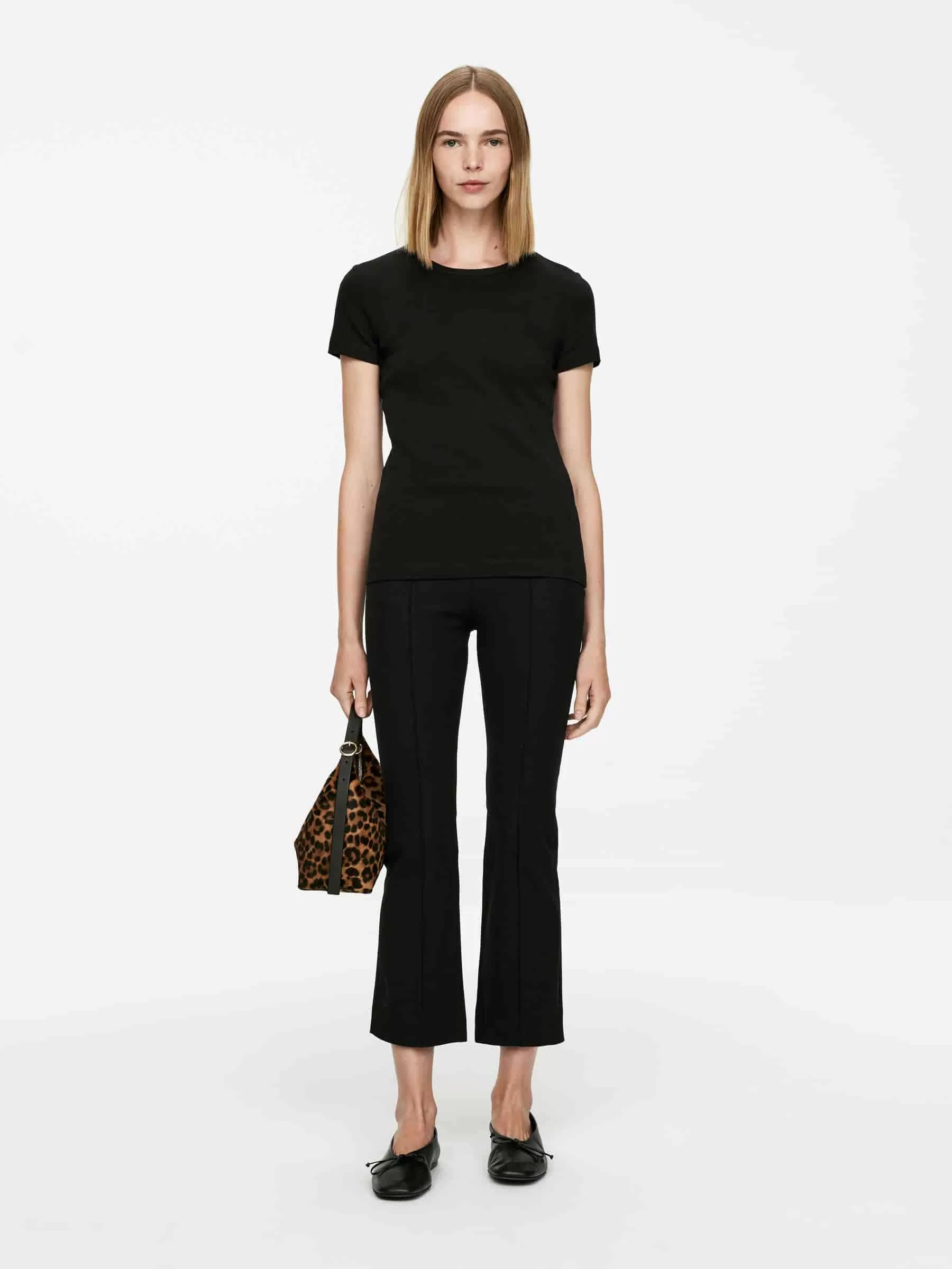 Slim trousers crafted from cotton with a hint of elastane for stretch. An ankle-length style with sewn-in creases at front, single welt pockets at back and a hidden zip at the side.