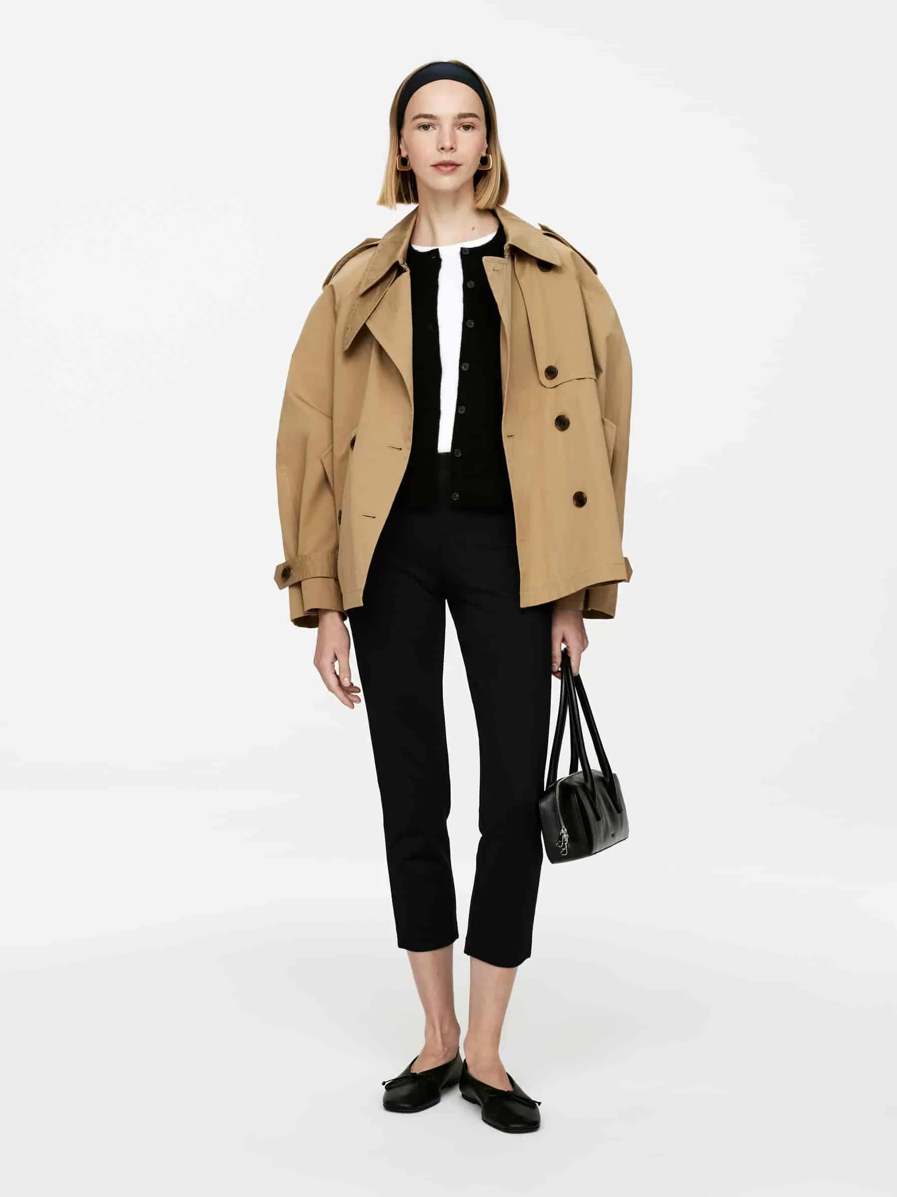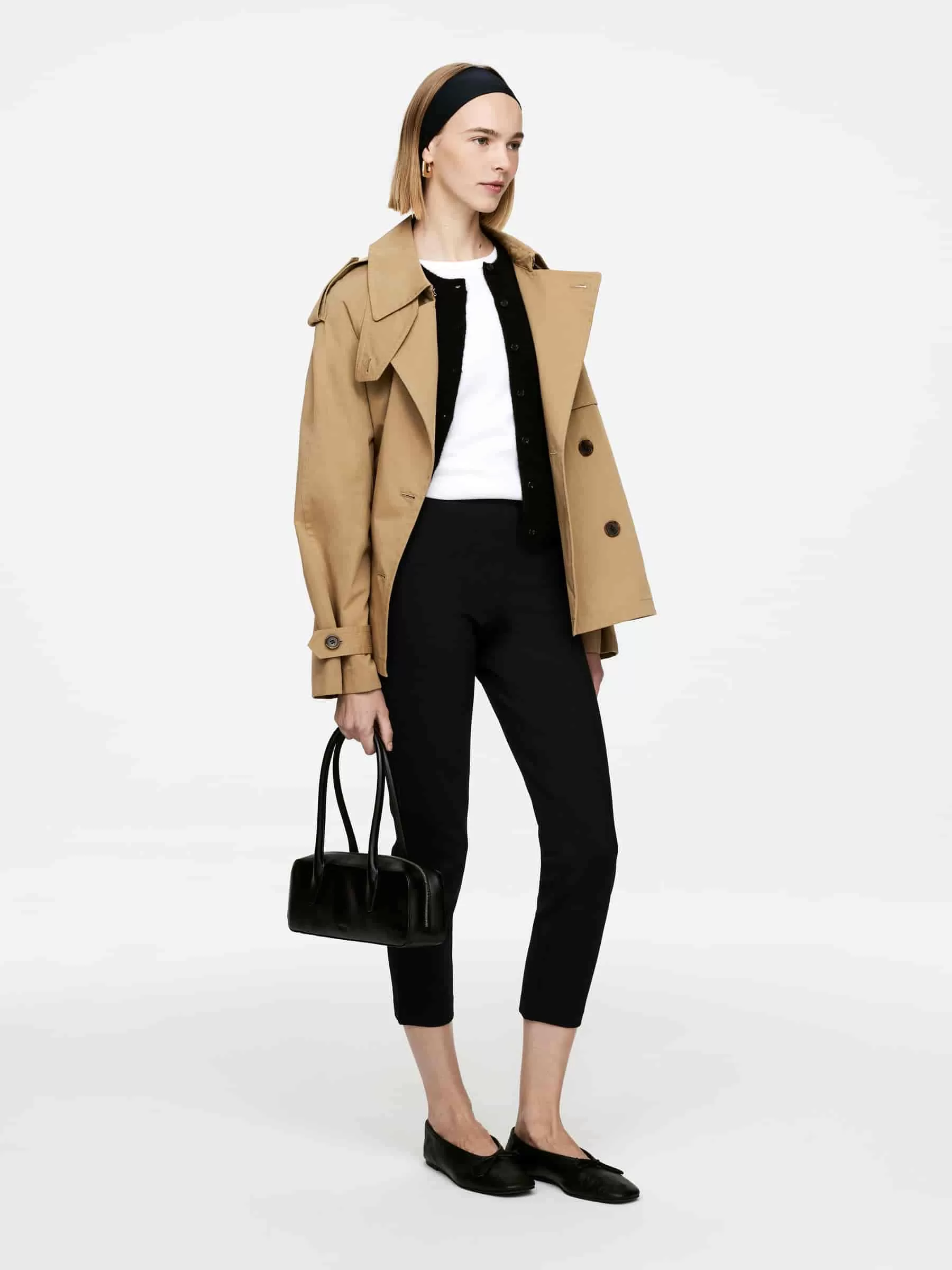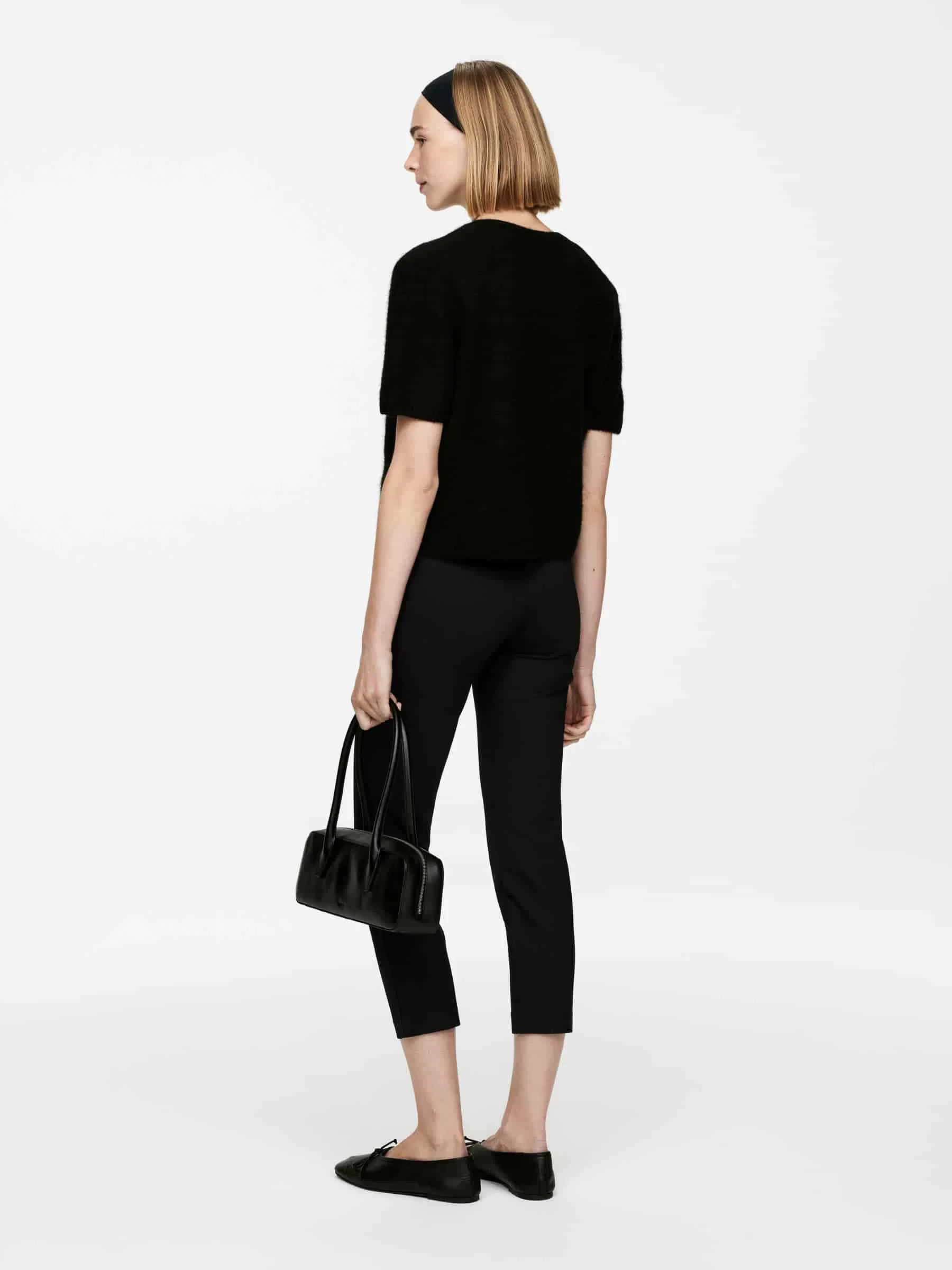 Cropped trousers in a stretchy viscose blend. Elastics at inside waistband. Vent pockets at the back. Slim fit.