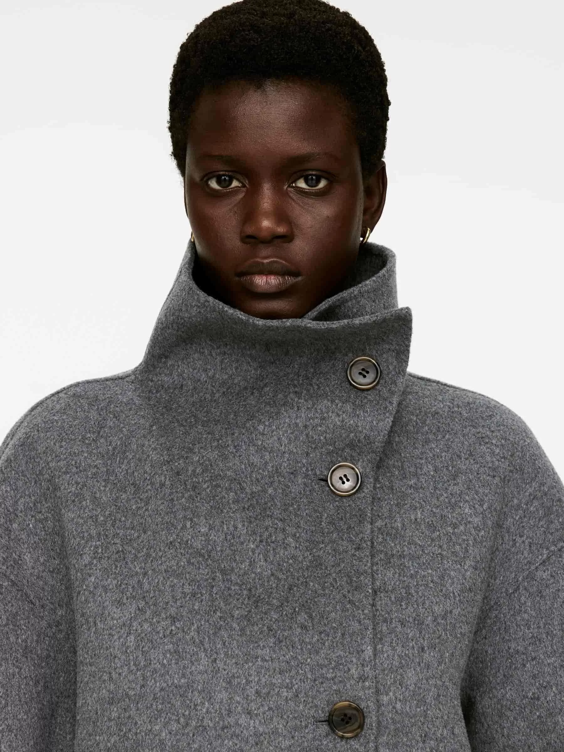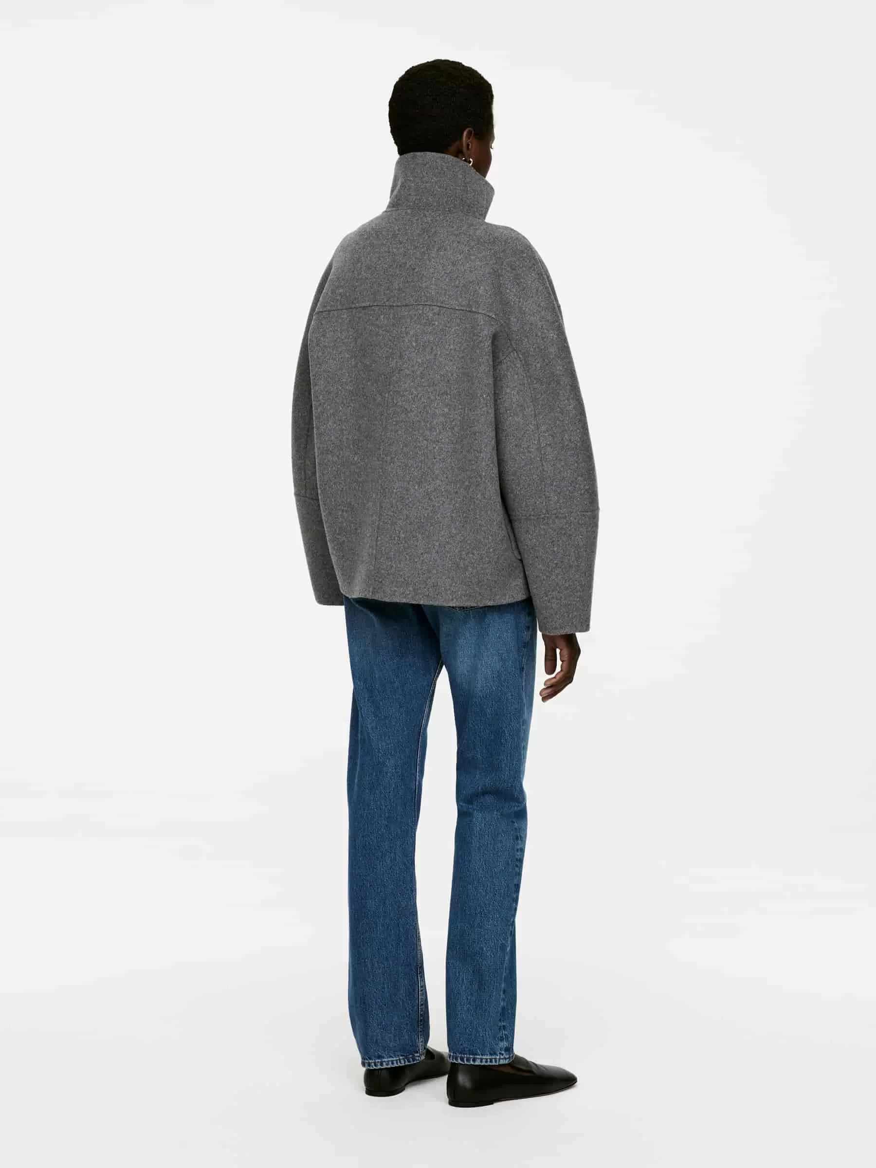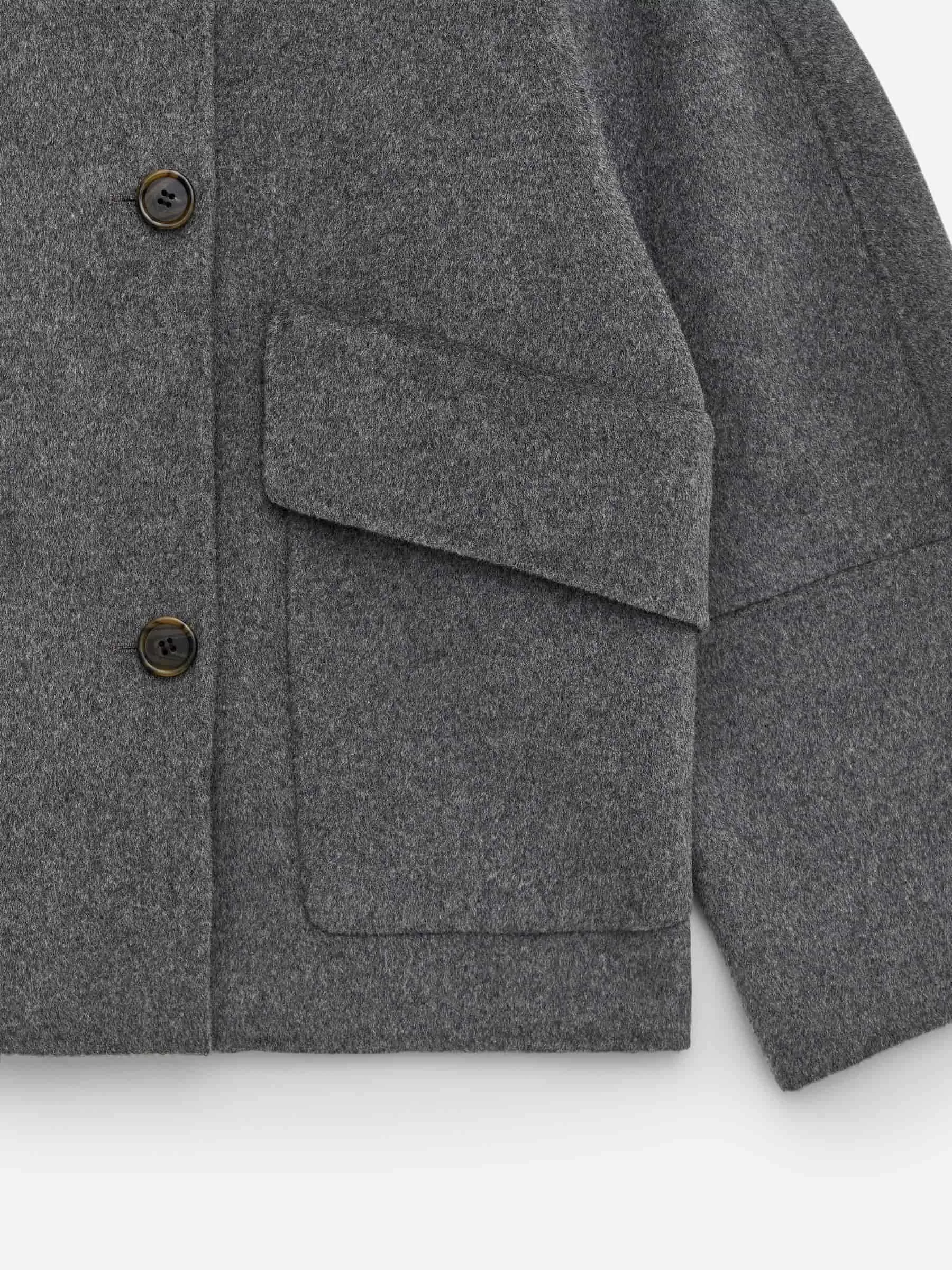 Jacket crafted from a double-face wool blend fabric. Styled with a standing collar, button closure and slanted patch pockets with flaps at front. The jacket contains 80% RWS wool (TE-00047206). Products certified to the Responsible Wool Standard (RWS) contain wool fiber from farms independently certified to animal welfare and land management requirements.