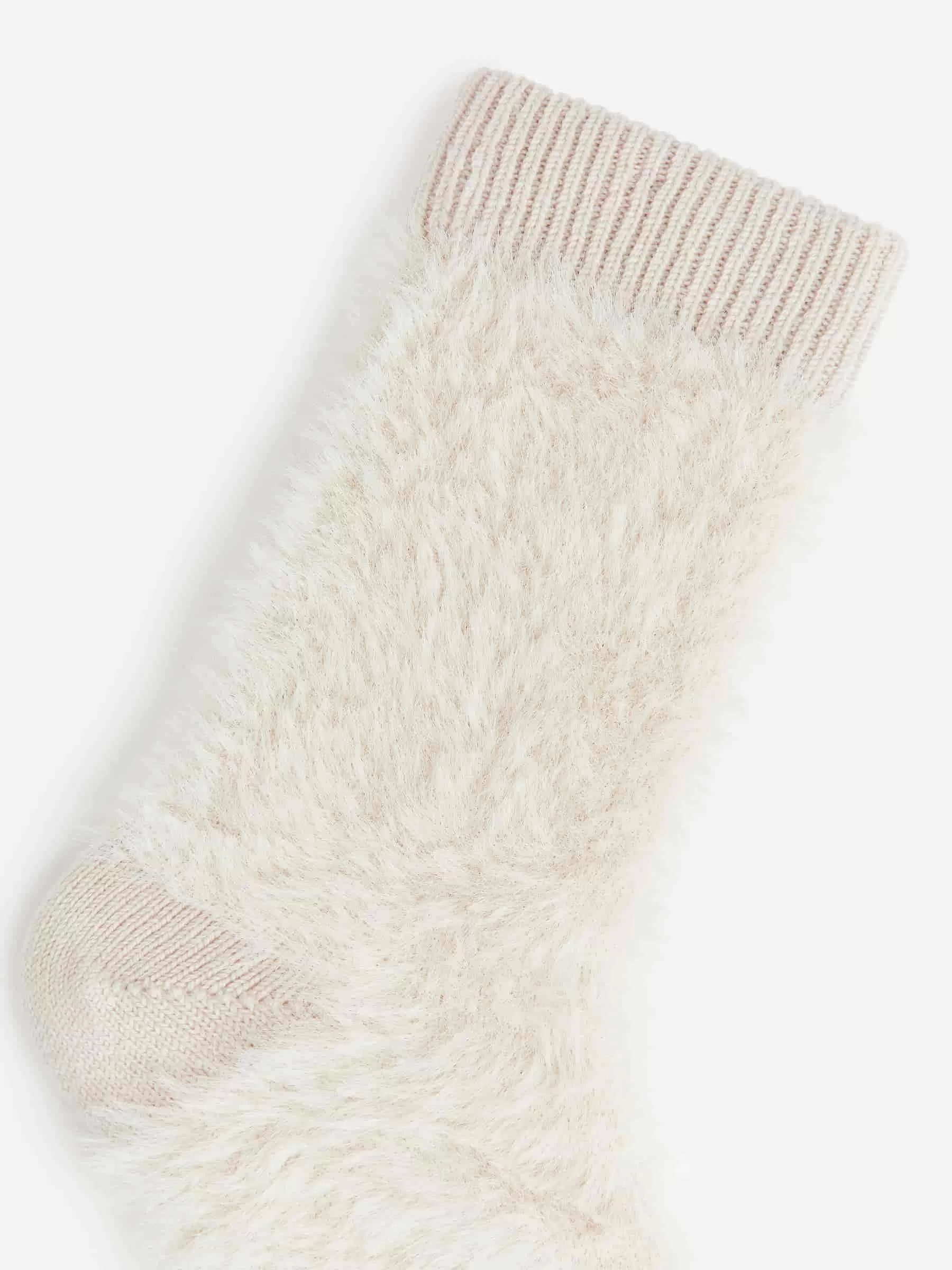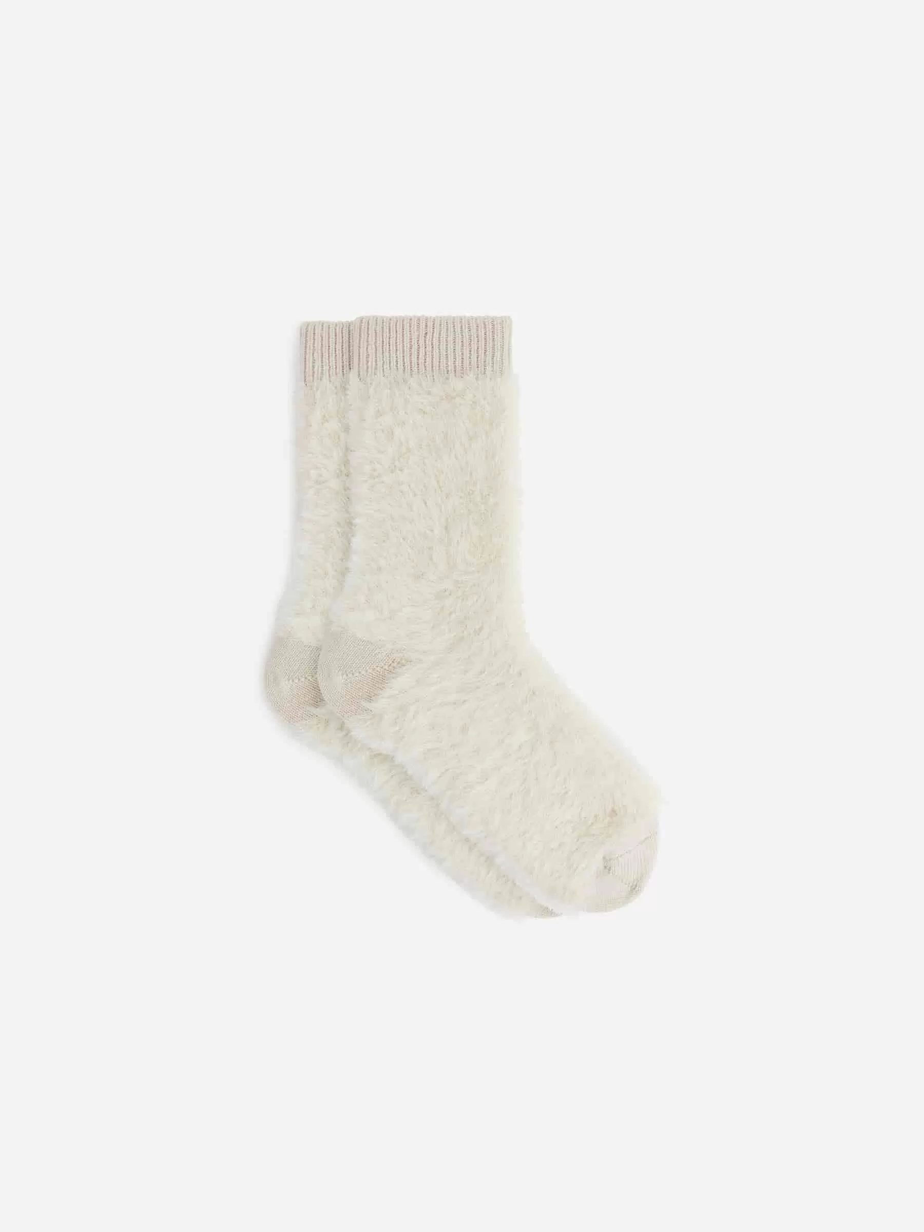 Socks with a fluffy structure made from a stretchy polyamide and wool blend. Styled with ribbed tops. These socks contain 16% RWS wool, certified by control union 811083. Products certified to the Responsible Wool Standard (RWS) contain wool fiber from farms independently certified to animal welfare and land management requirements.