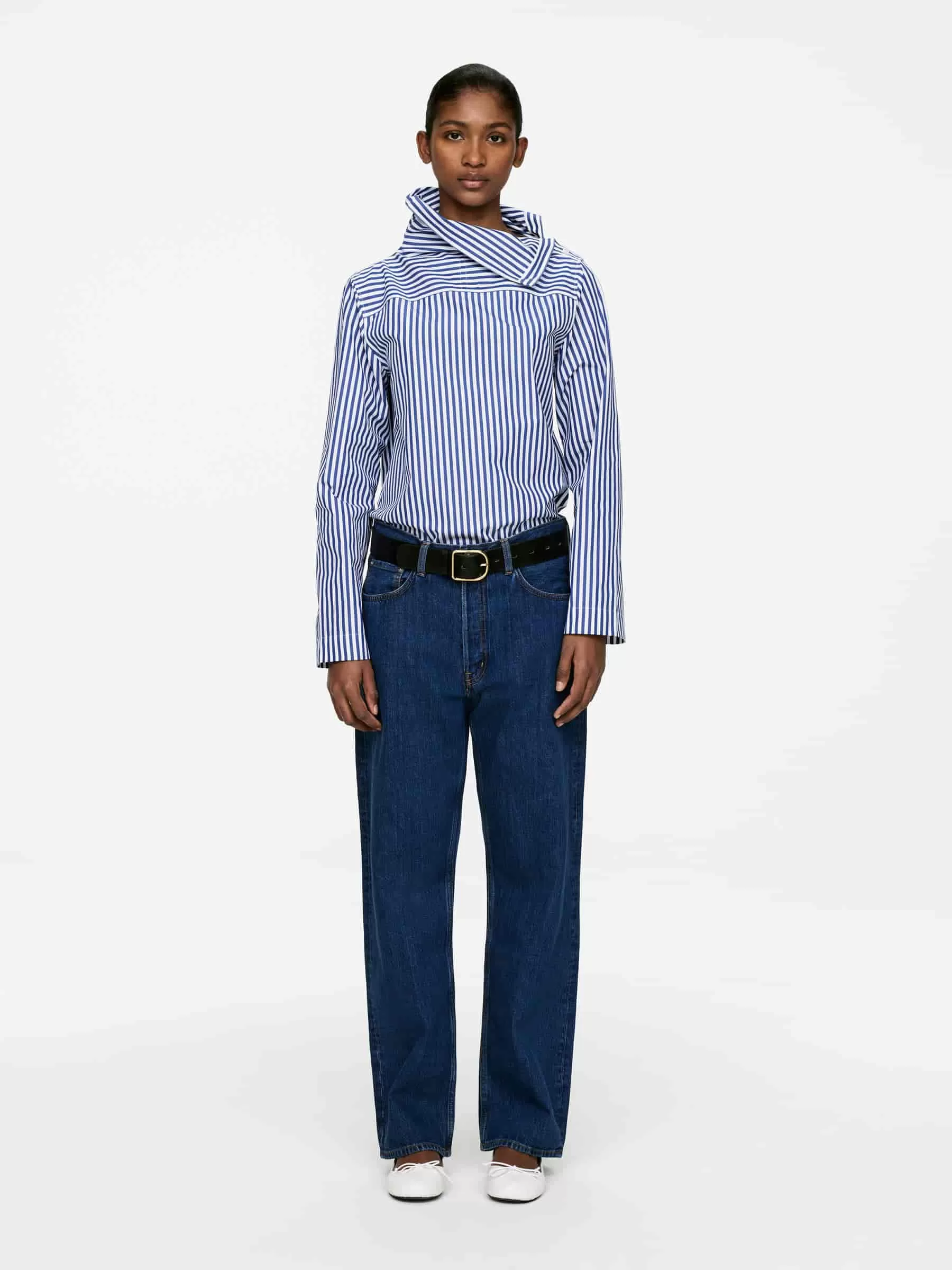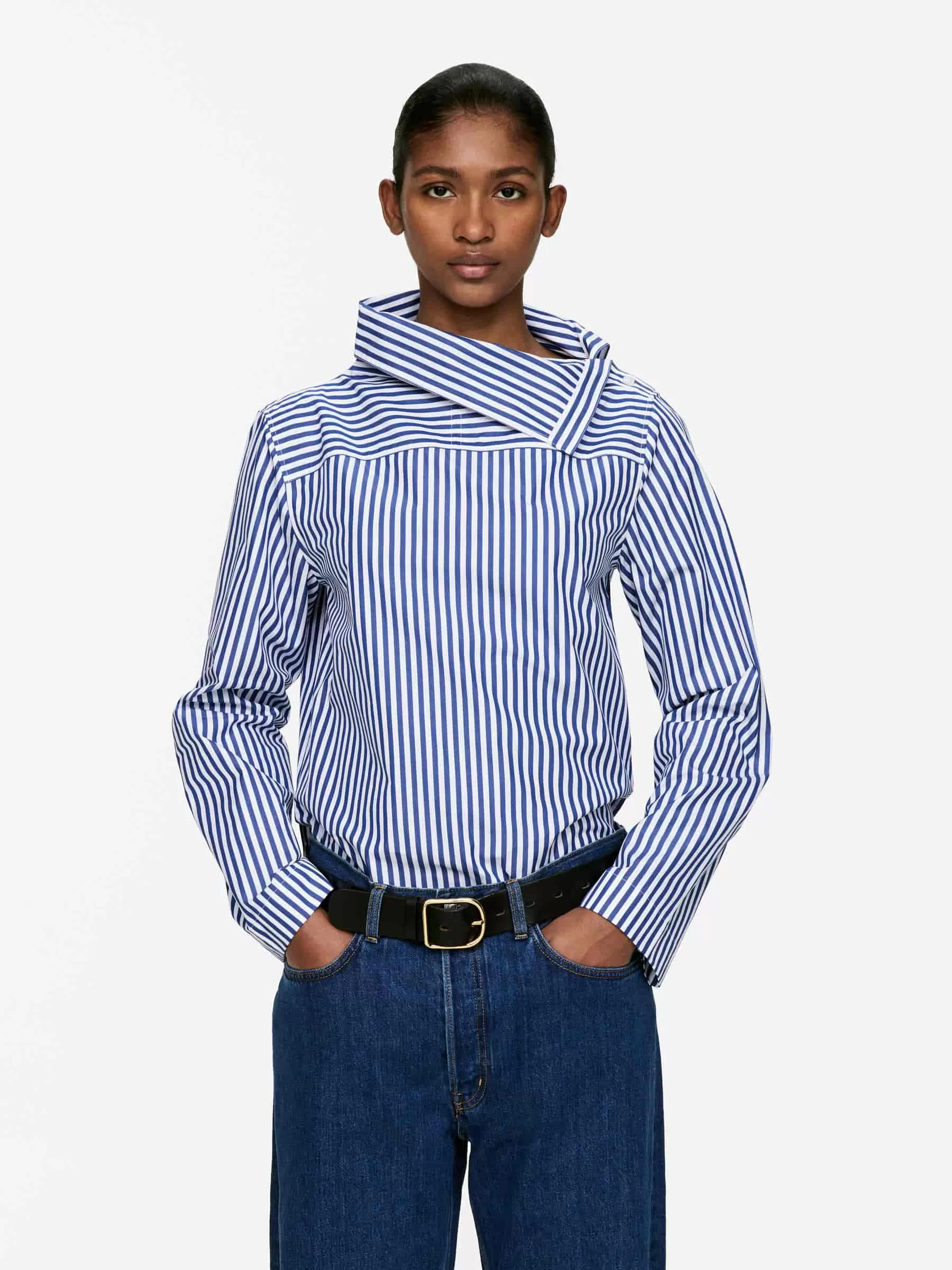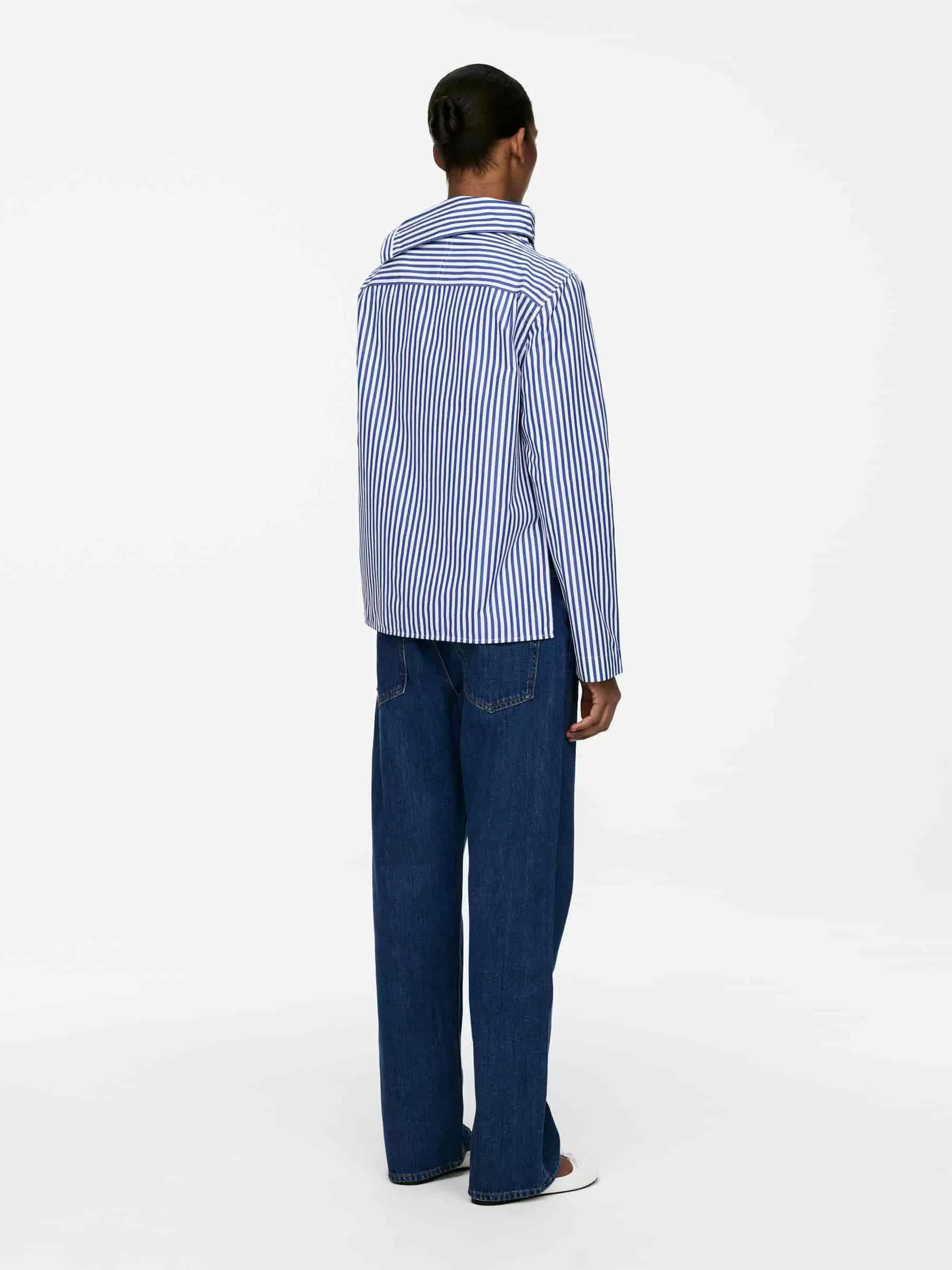 Long-sleeved cotton blouse styled with a folded collar with button closure. Regular fit.