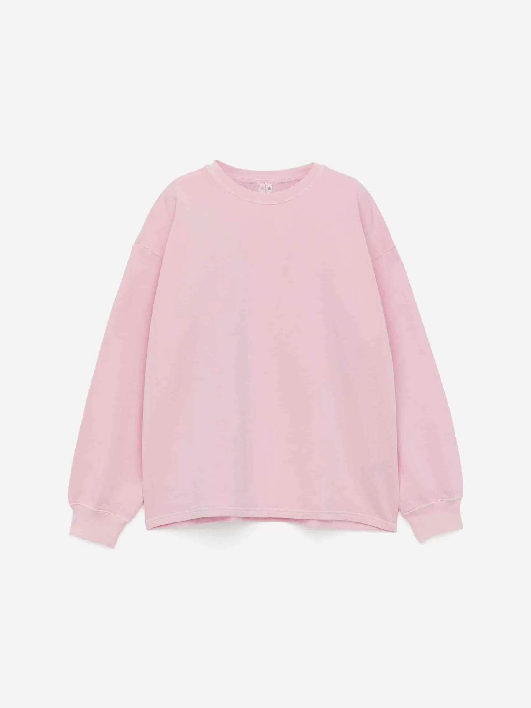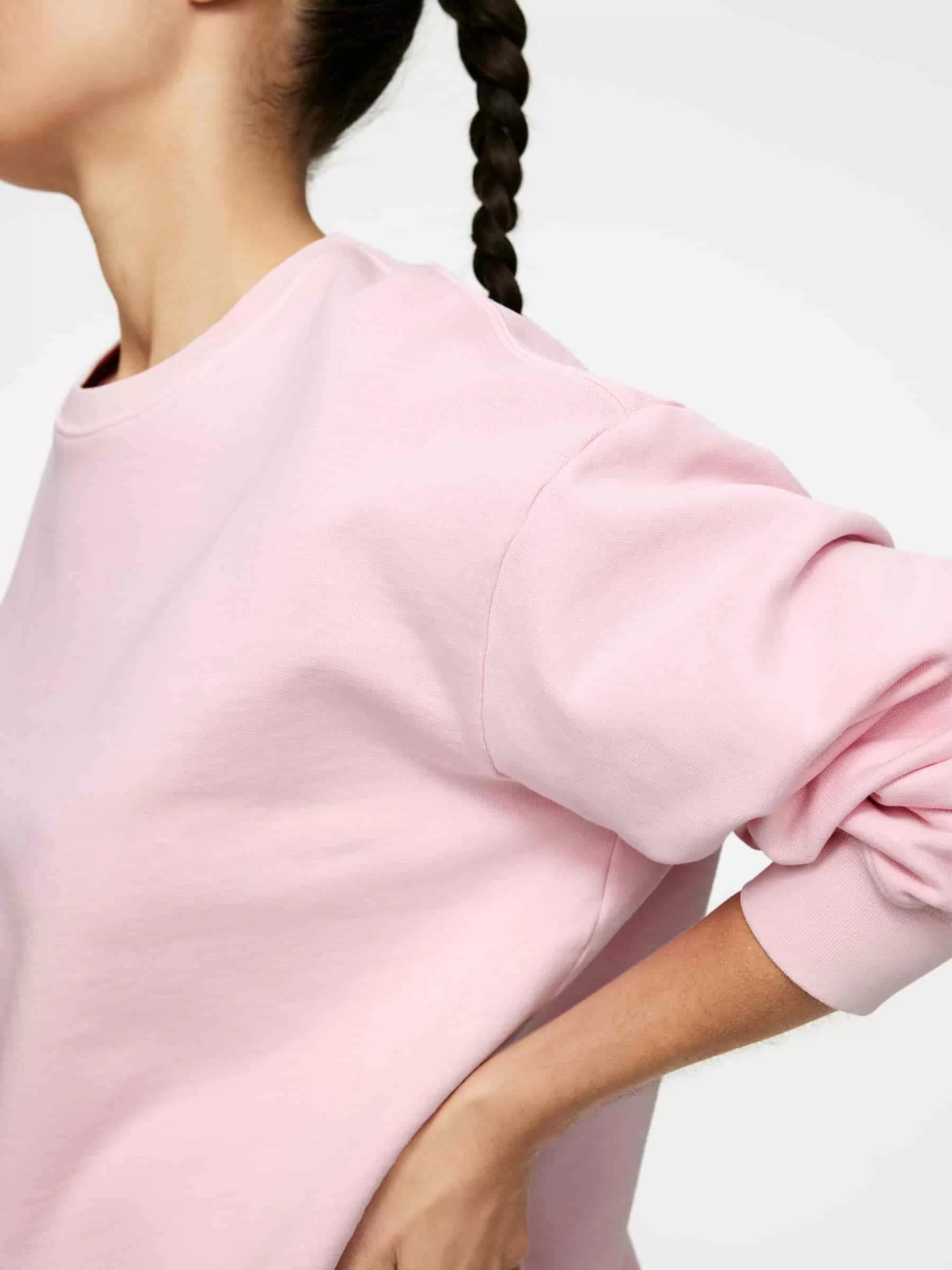 Sweatshirt crafted from cotton with a French terry underside for moisture-wicking properties. Rib at neck and cuffs. Loose fit.