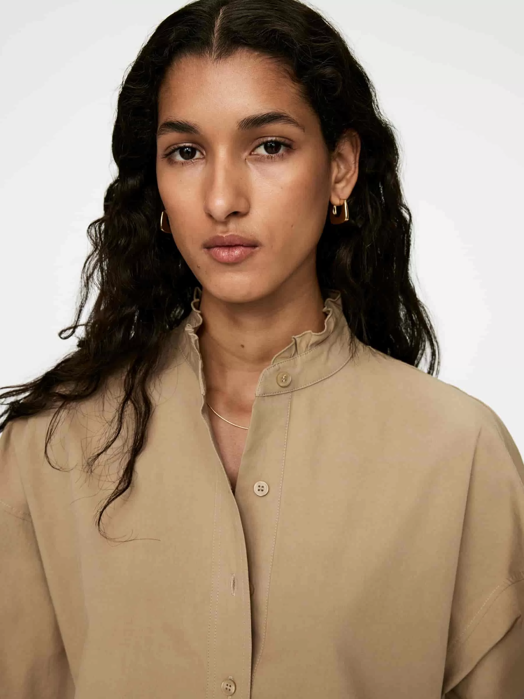 ARKE Women Frill-Detail Cotton Dress Dark Beige