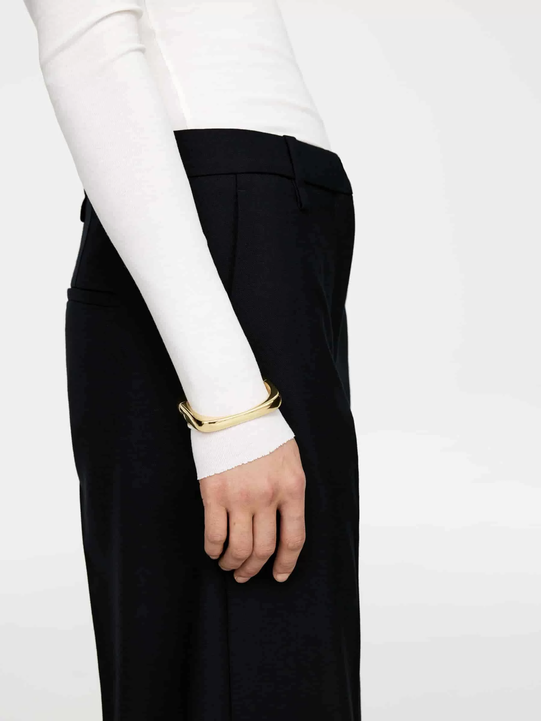 Sculptural bangle with a soft rectangular shape. Crafted from gold-plated brass. Magnetic closure.