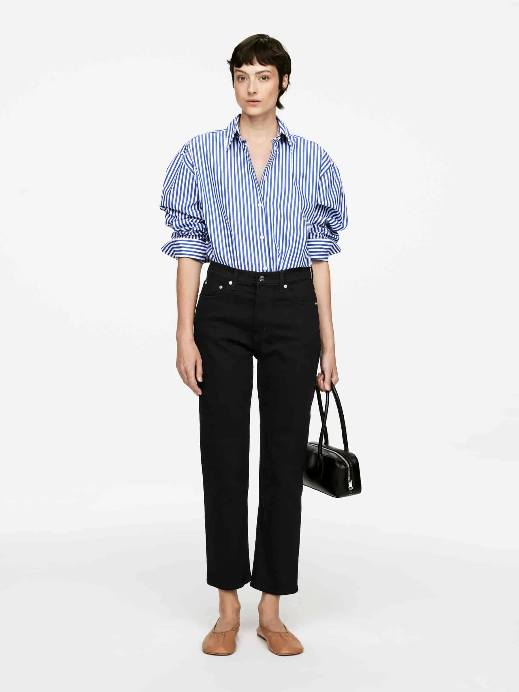 JADE CROPPED is cut in a stretch denim and features a mid-rise waist, slim fit and tapered, cropped legs. Zip fly.