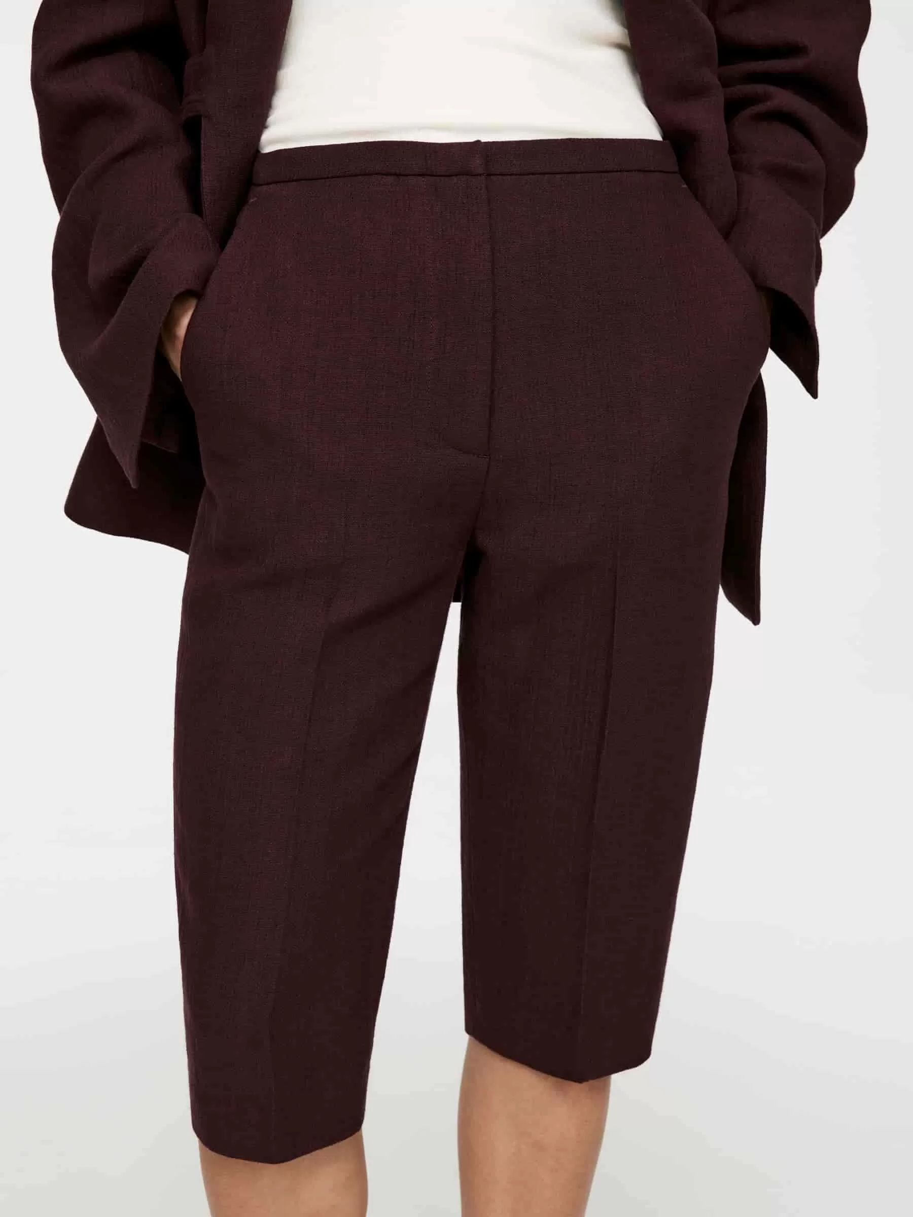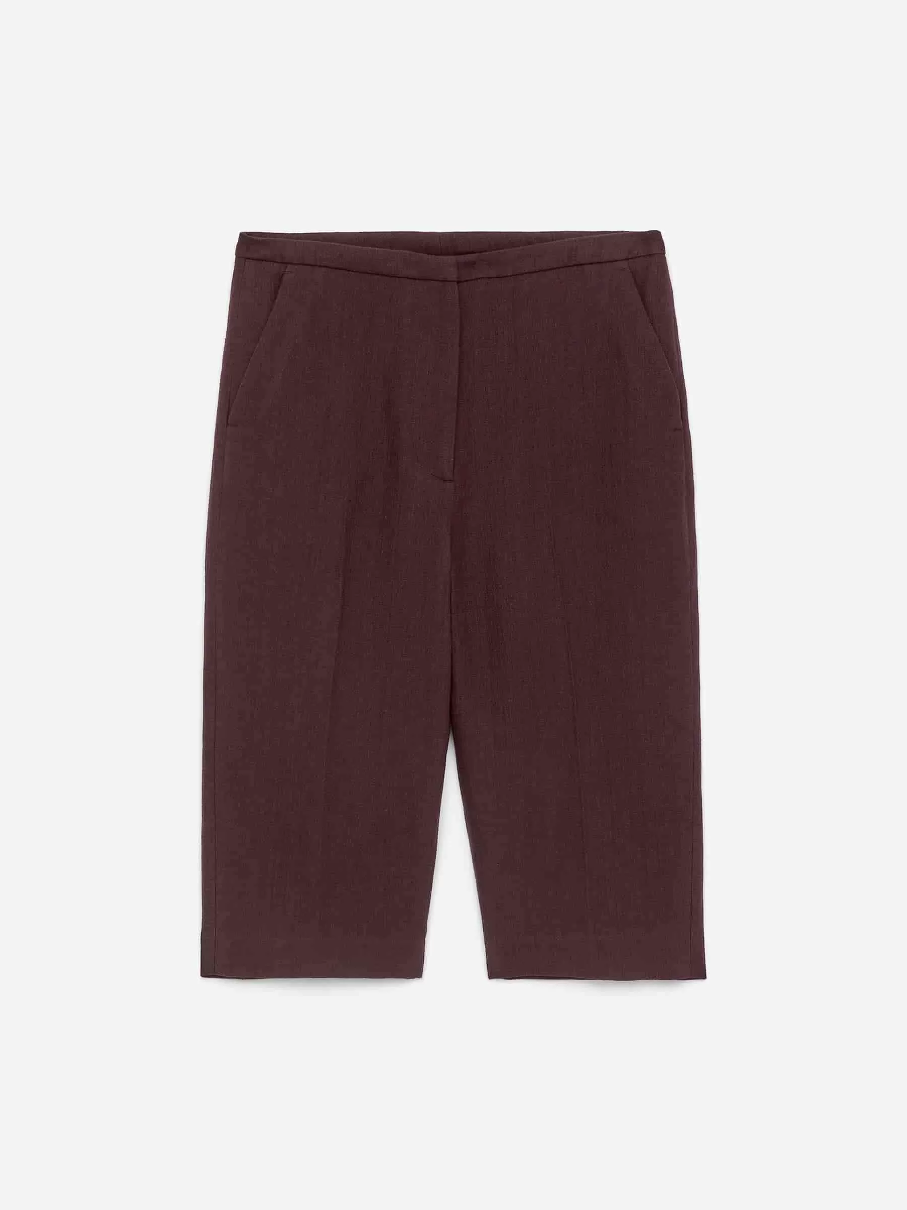 Mid-rise, knee-length shorts in a blend of cotton and linen. Pressed crease at the front and back, slanted side pockets, and welt pockets at the back. Zip and hook-and-bar fastening.