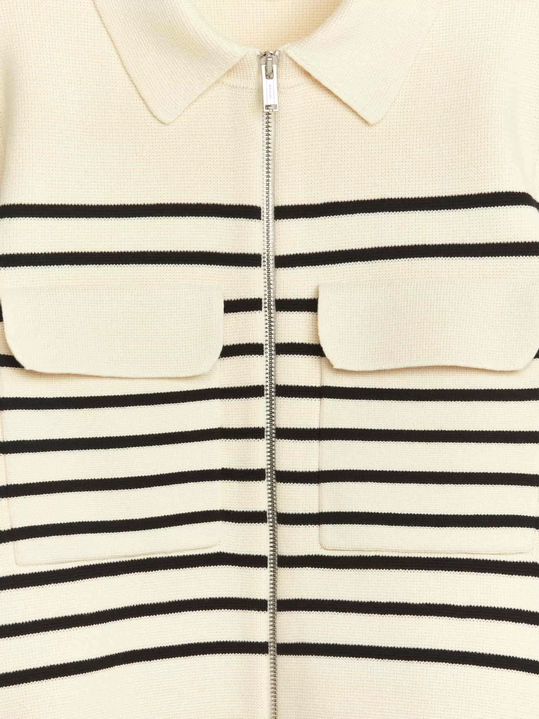Knitted jacket crafted from cotton. Styled with a shirt collar, a two-way zip at front and chest pockets with flaps. Regular fit.