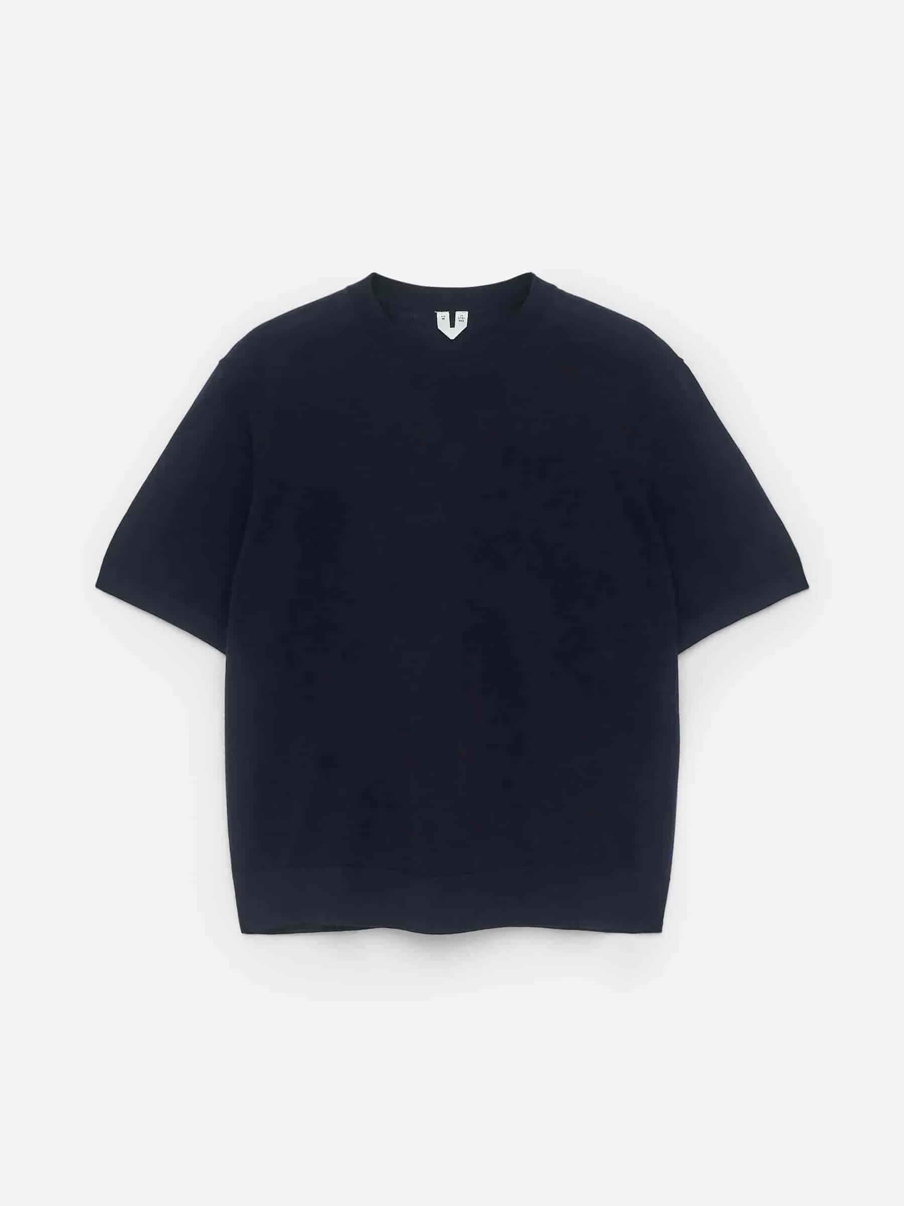 ARKE Women Knitted Merino Wool T-Shirt Dark Blue
