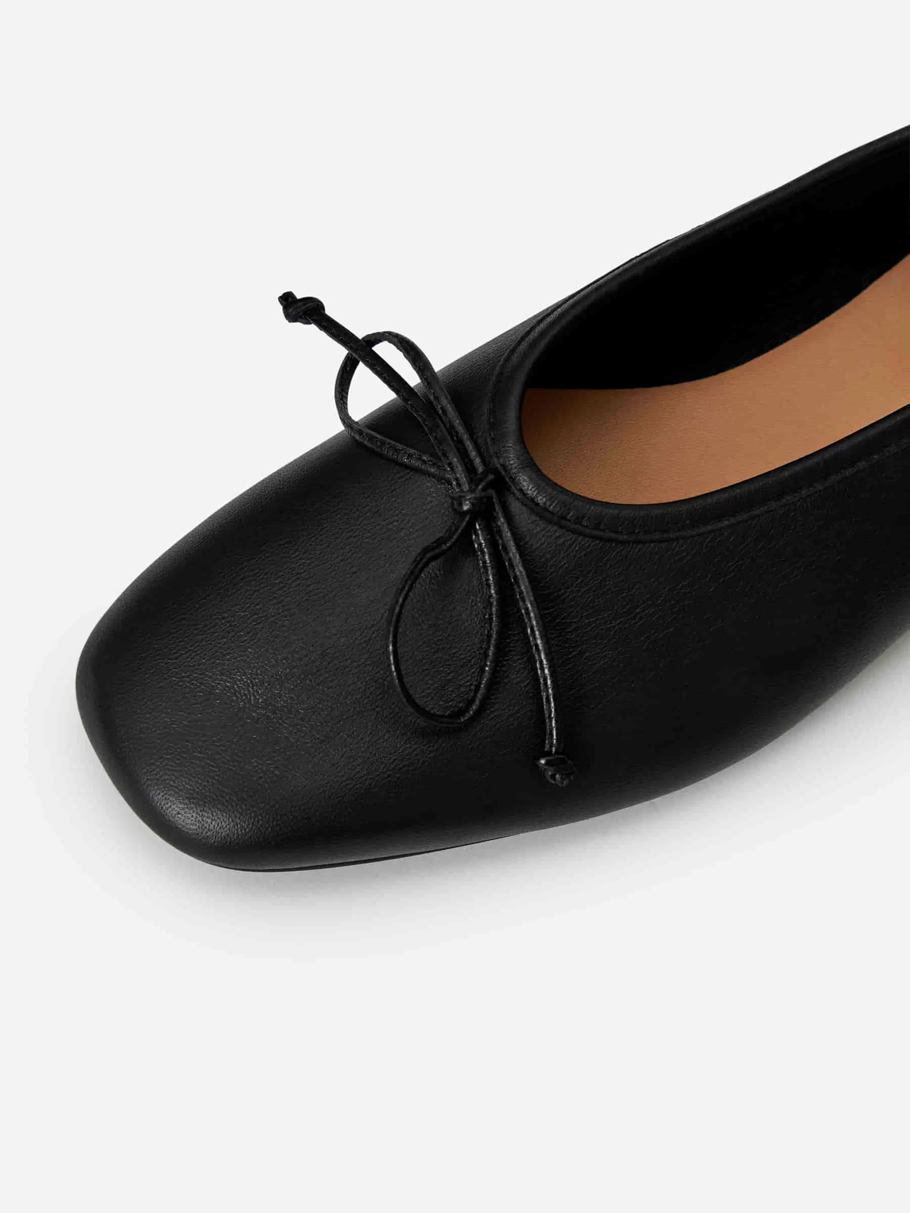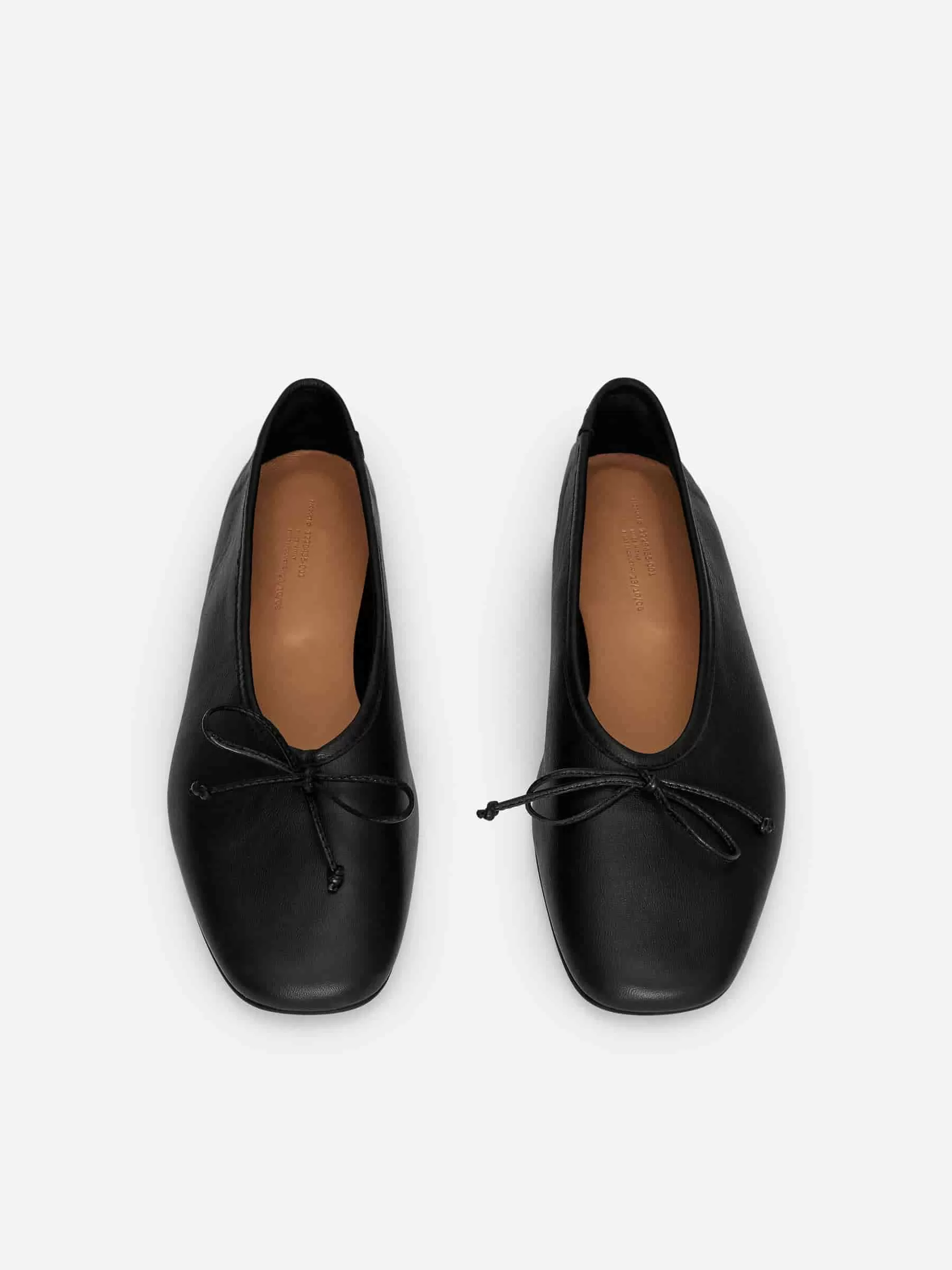 Ballerina crafted from soft leather that has undergone a metal-free tanning process. Styled with a high topline and a leather bow detail. Leather lining and leather sole.