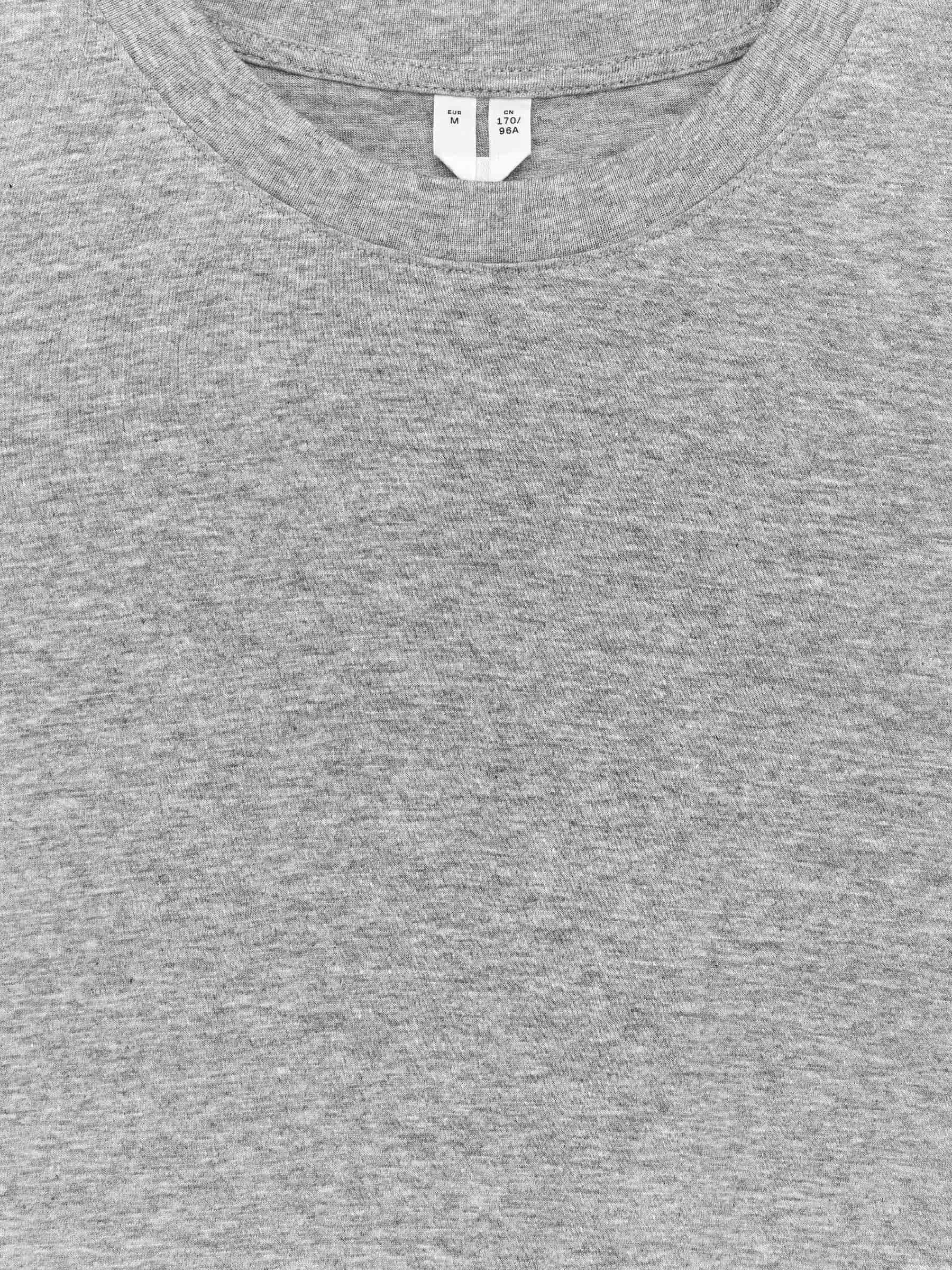 T-shirt knit from a smooth, compact long-staple cotton. Designed with a regular fit of single jersey with a ribbed piping around the crew-neck.