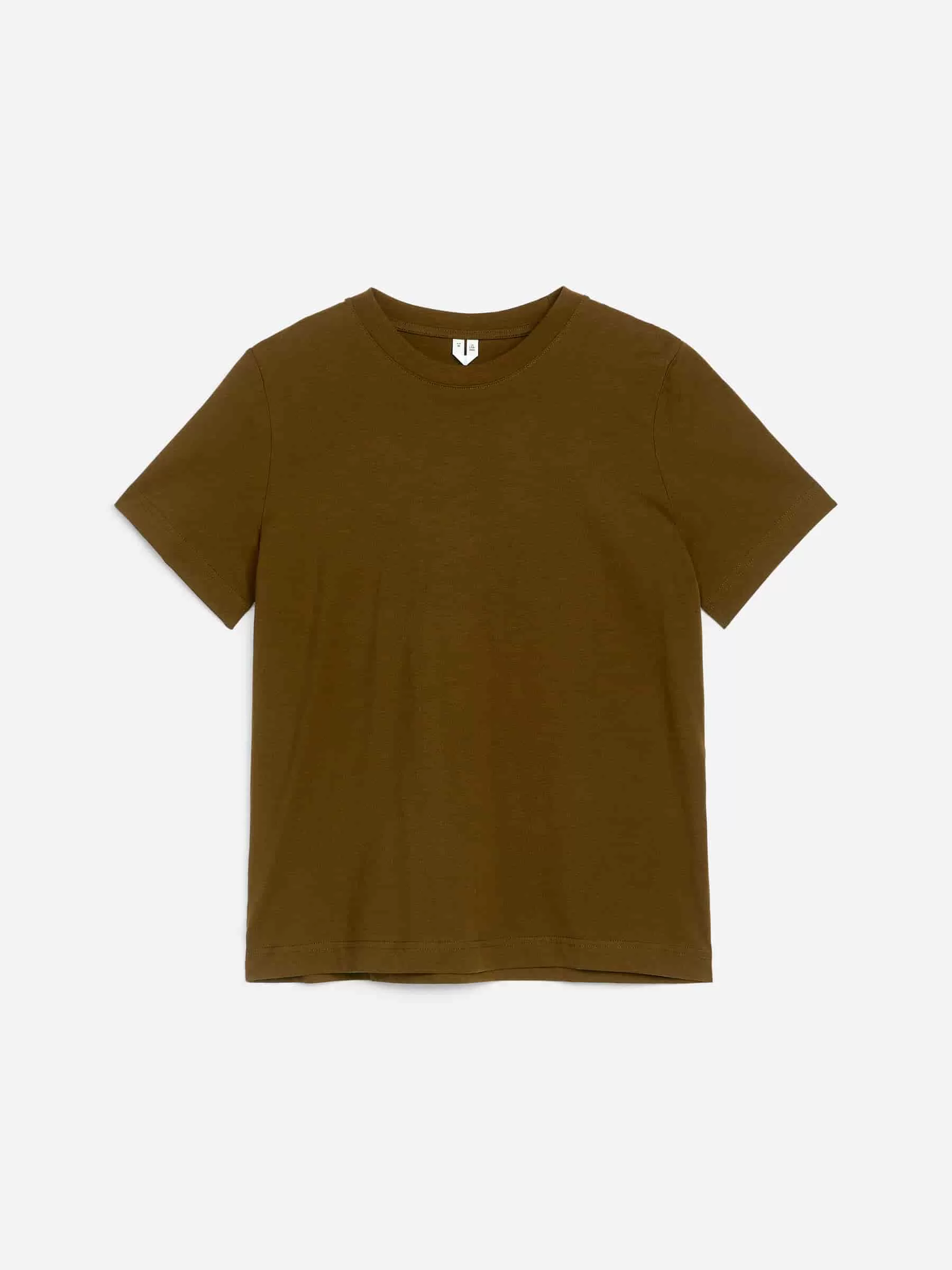 T-shirt knit from a smooth, compact long-staple cotton. Designed with a regular fit of single jersey with a ribbed piping around the crew-neck.