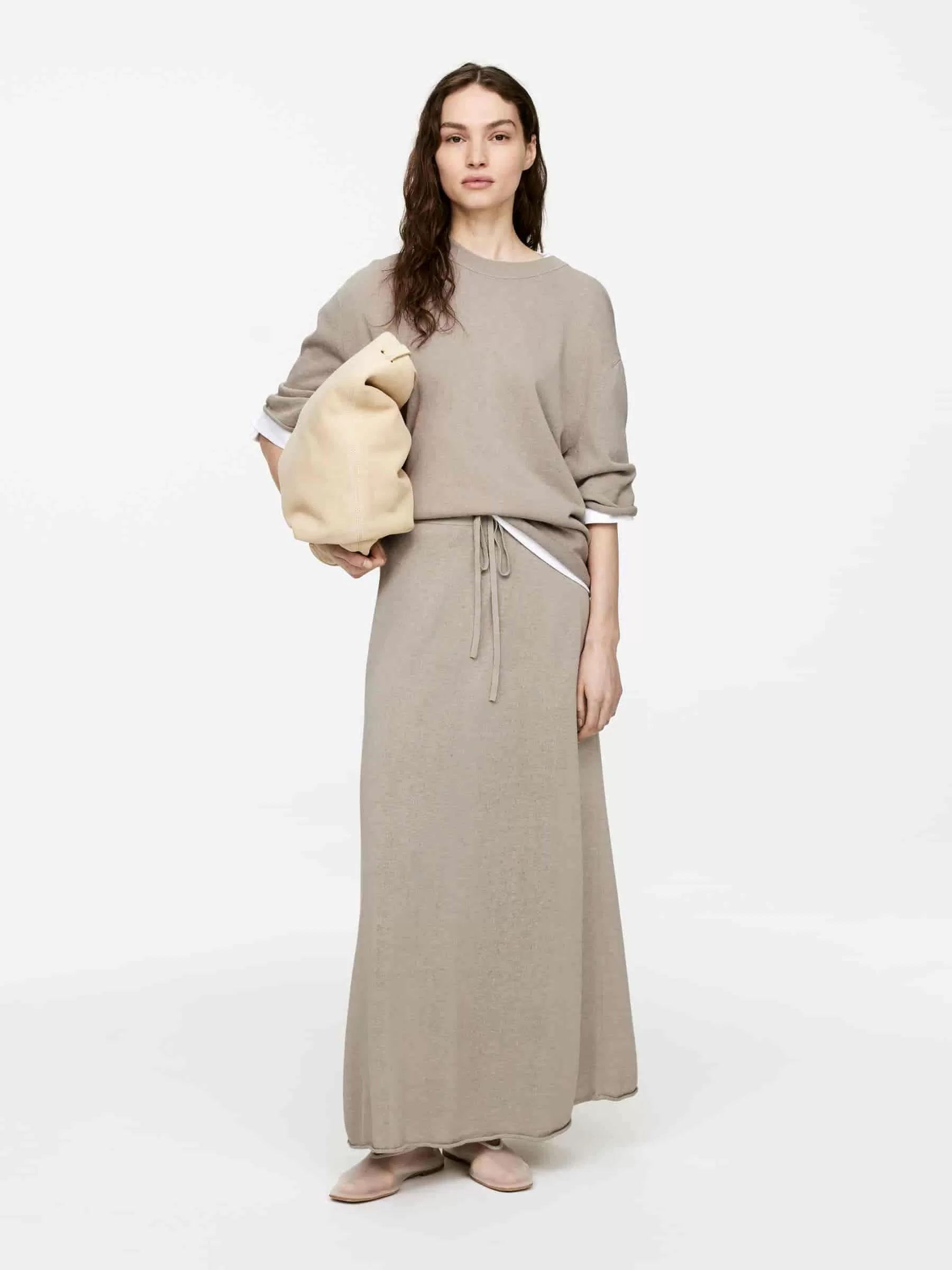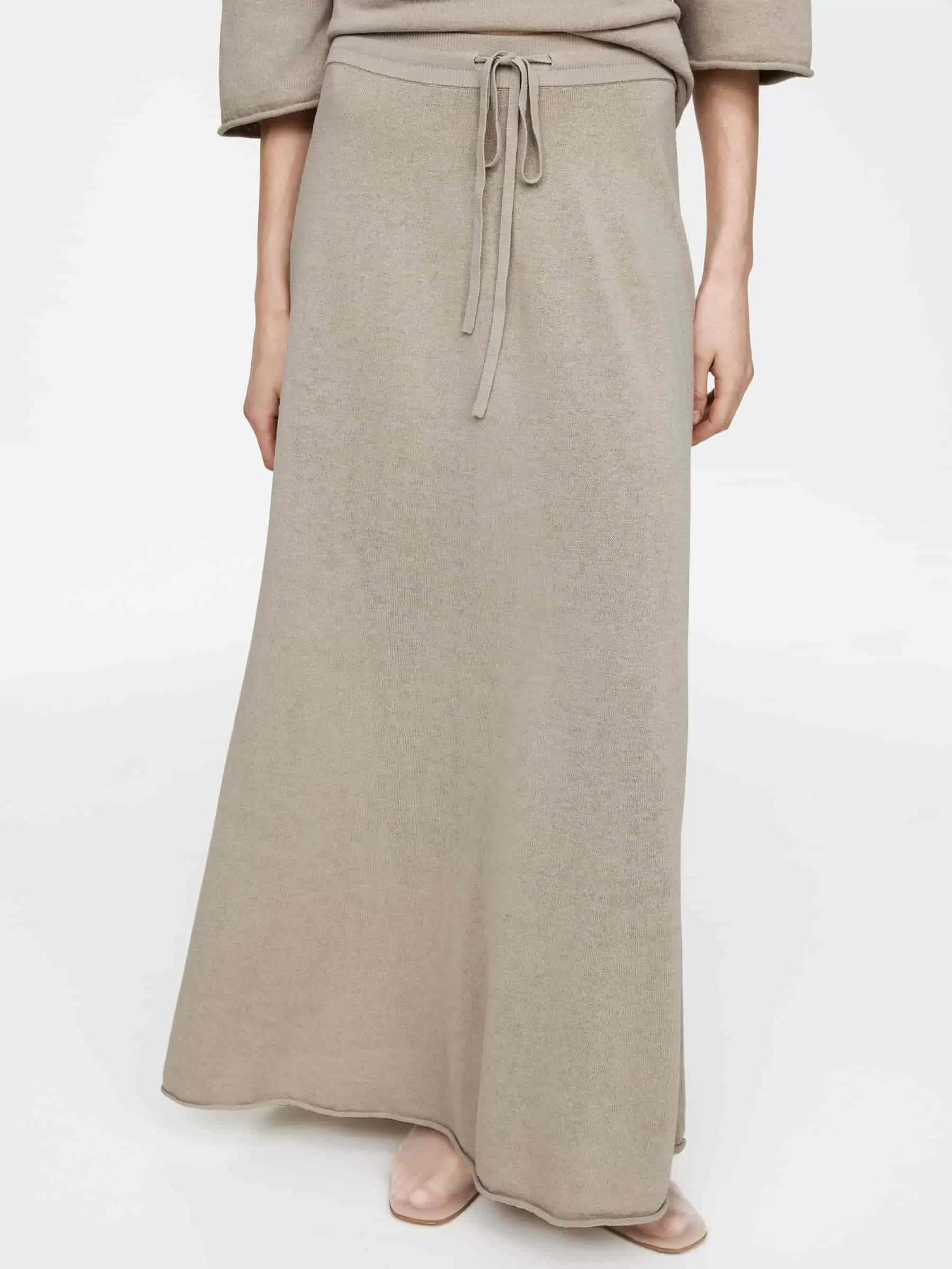 Skirt in a linen-cotton-viscose blend. Ribbed waistband with elastics and drawstring. Rolled edge at bottom hem.