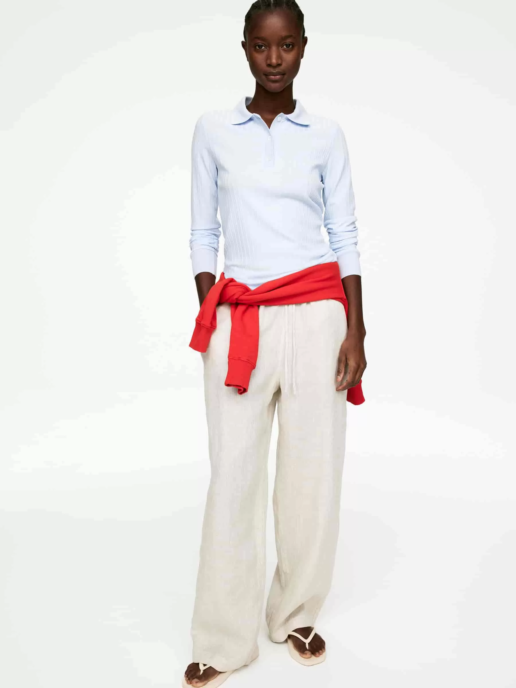A pull-on style with straight, full-length legs, these trousers are woven from linen for airy comfort.