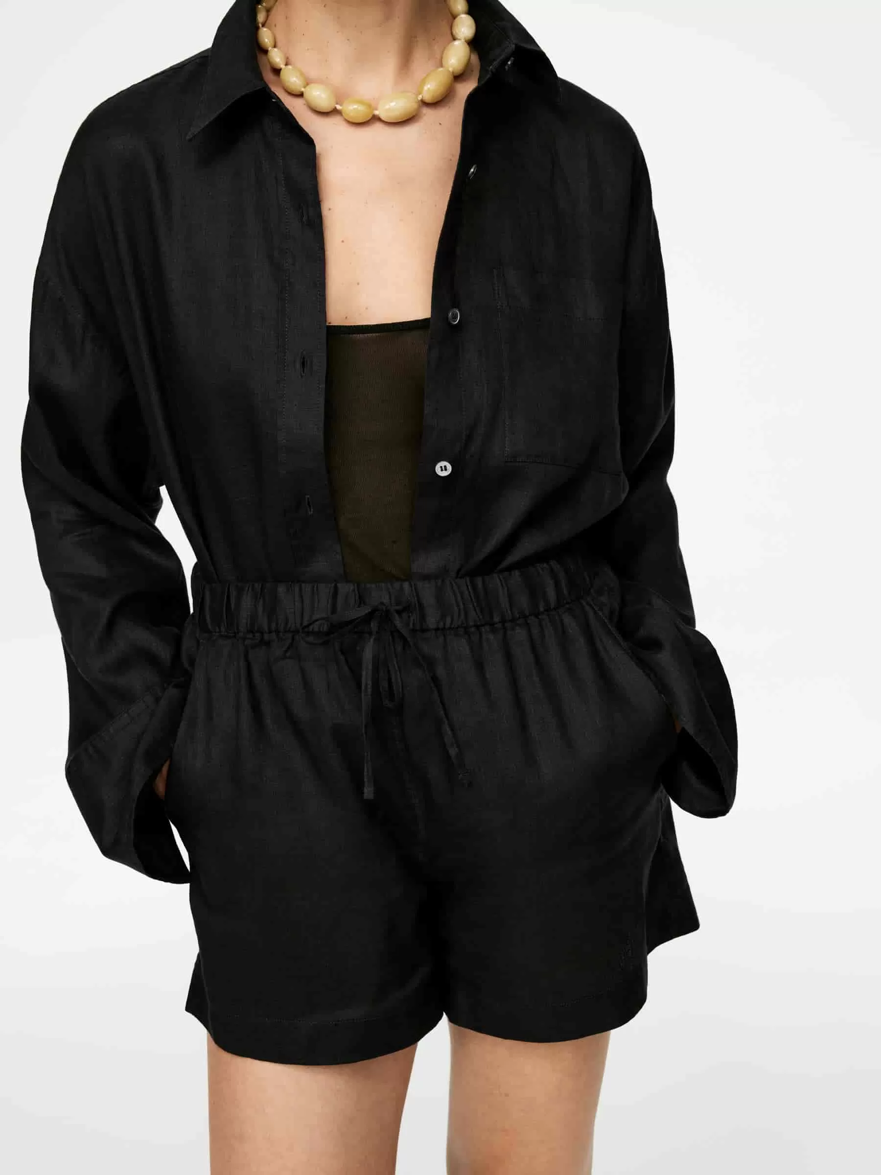 Made from linen, these shorts are perfect for the warm season. A comfortable style with elastics and a drawstring at waist and slanted pockets.