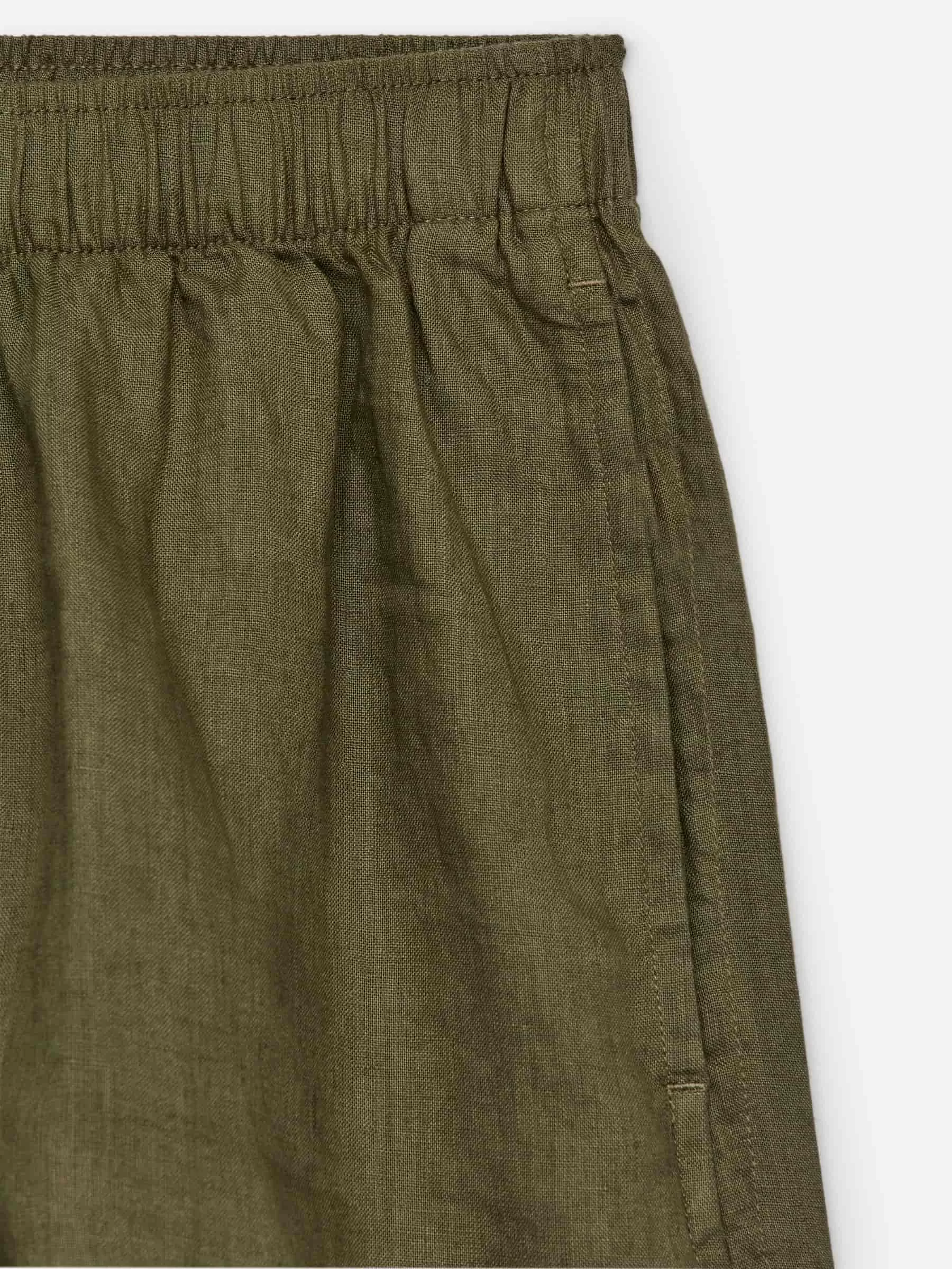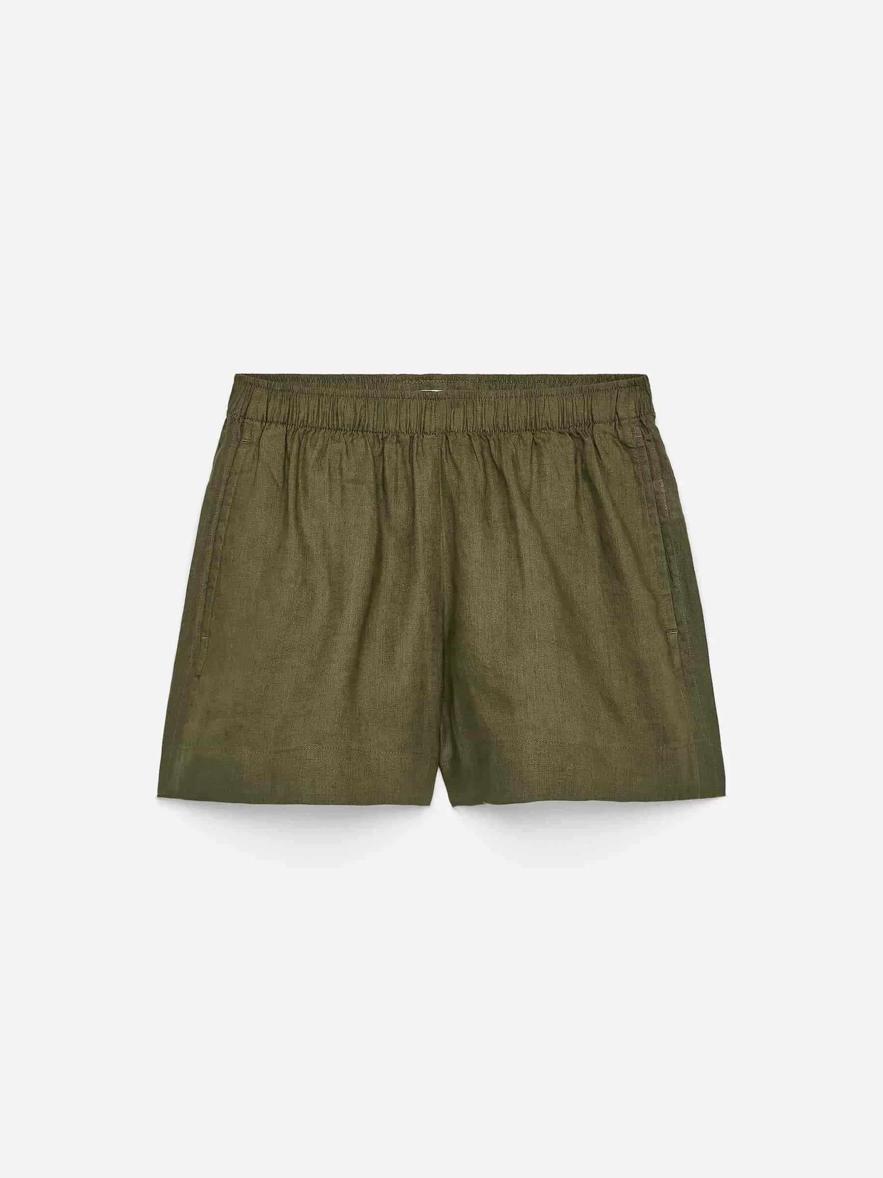 Linen shorts with elastic at the waist and pockets in the side seams.