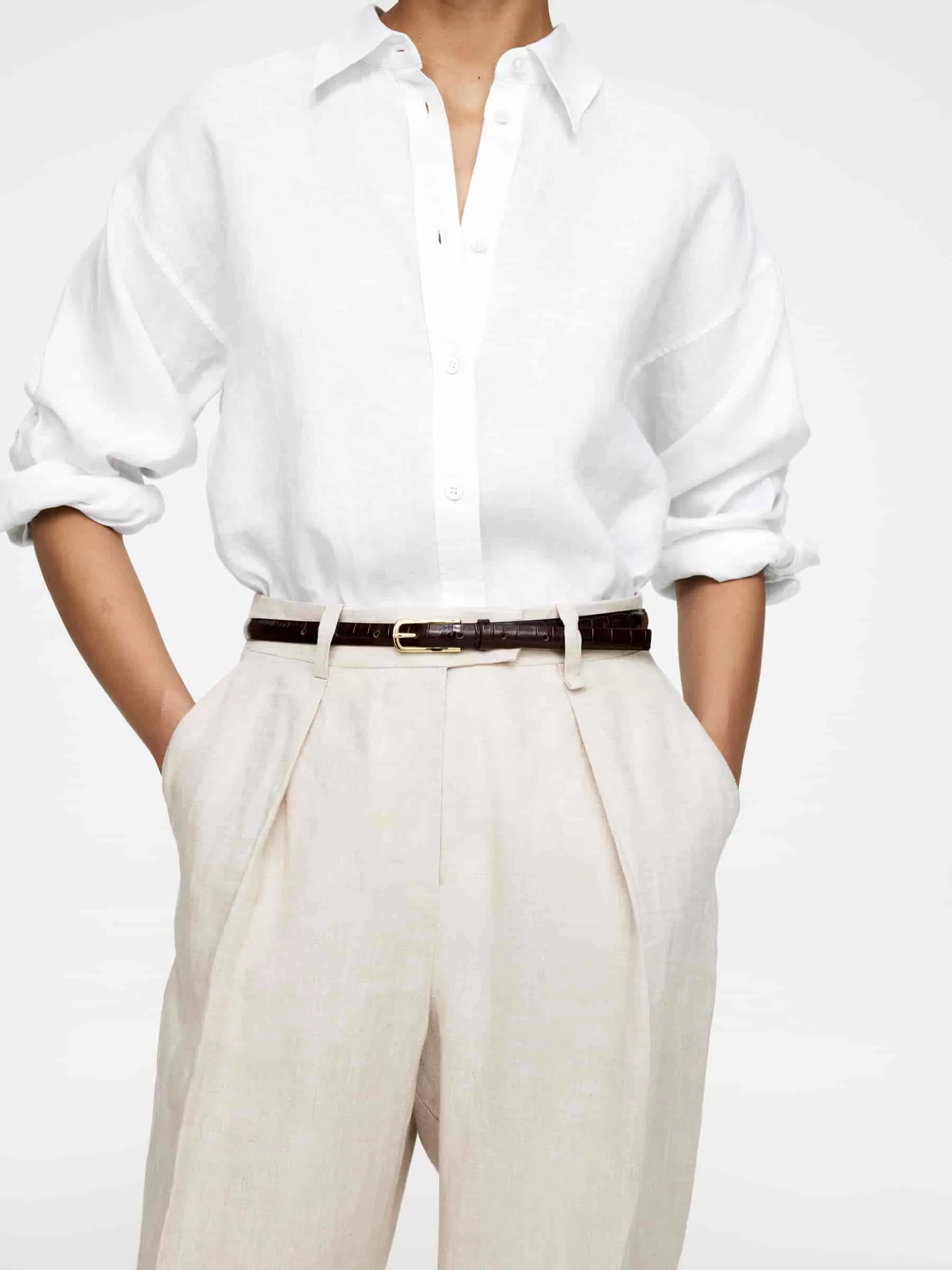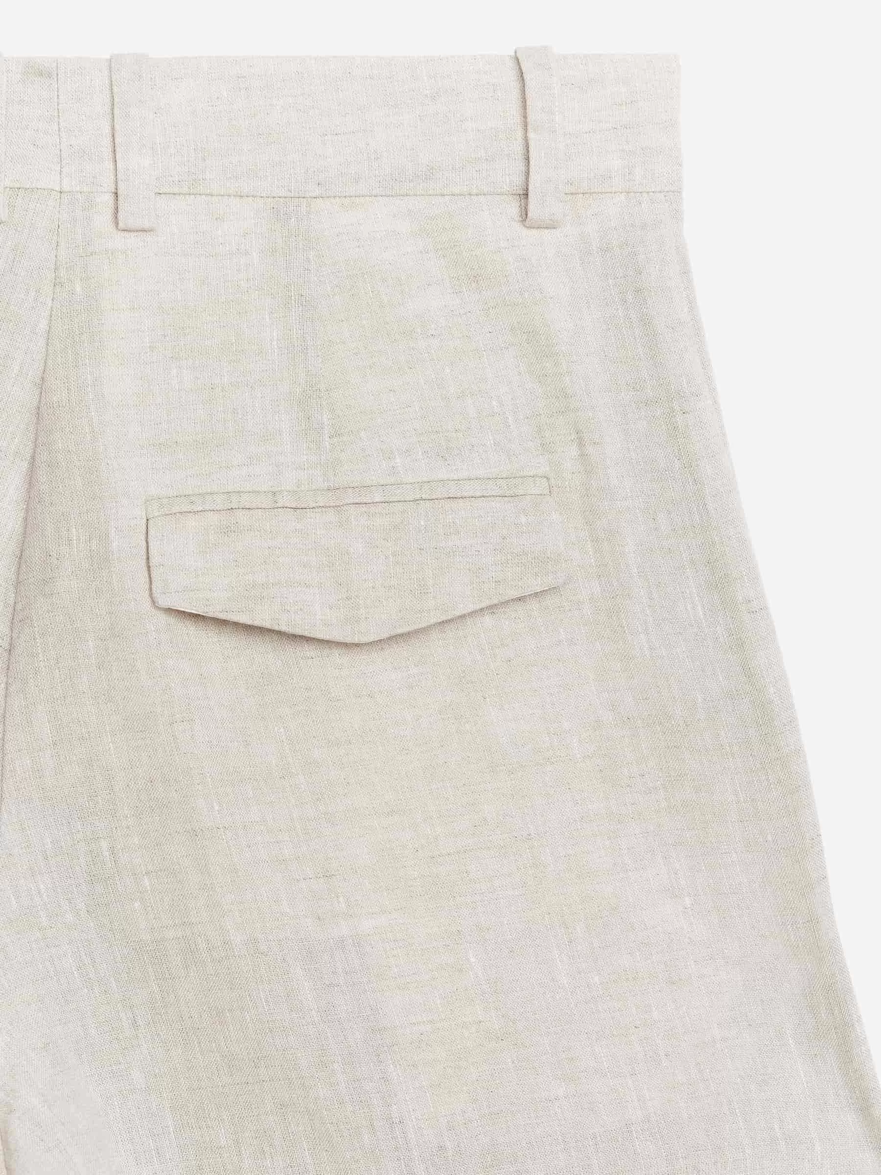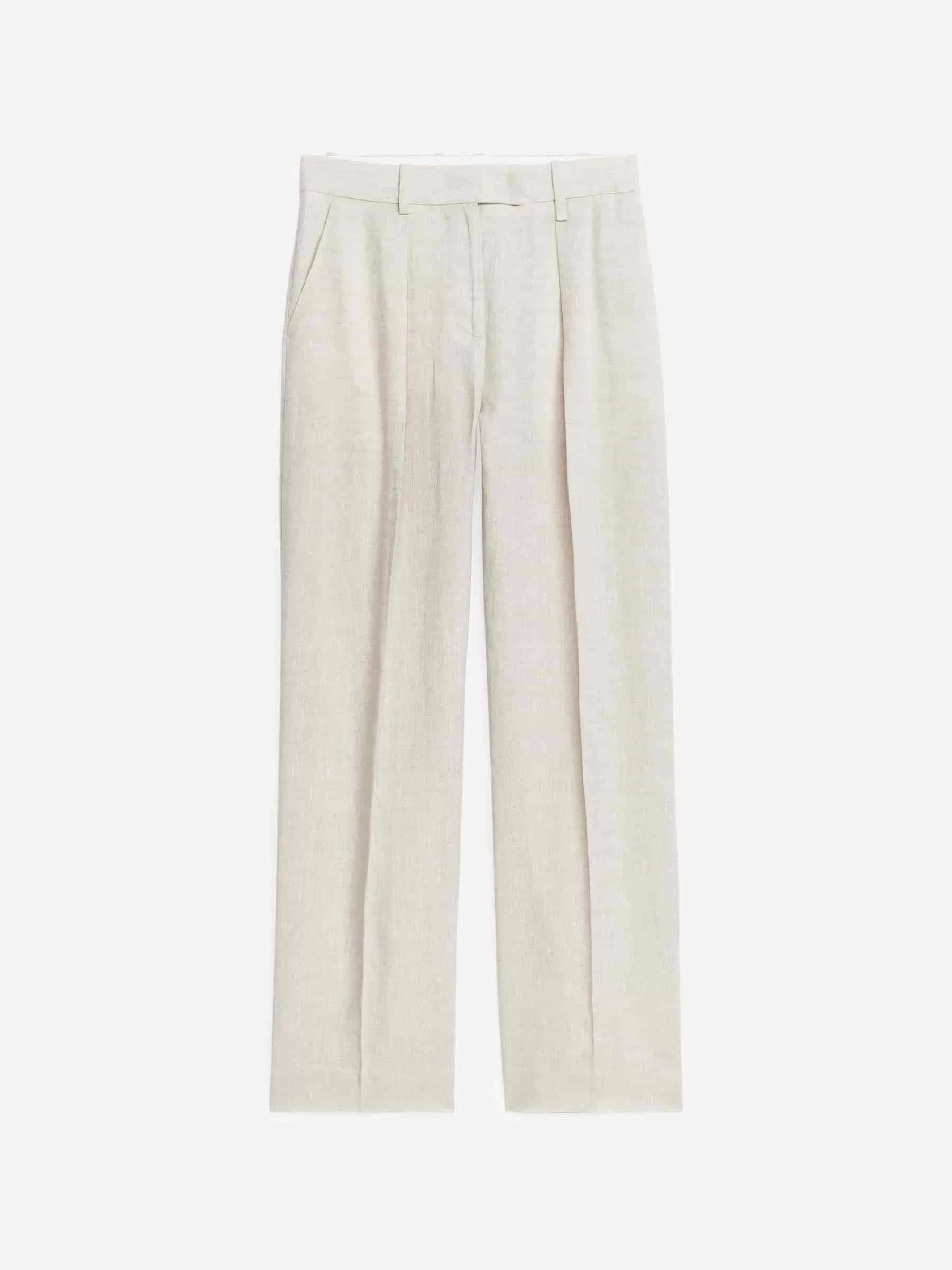 These full-length, mid-waist trousers are woven from pure linen. A straight fit with press creases and pleats at the front, giving the style a graceful drape.