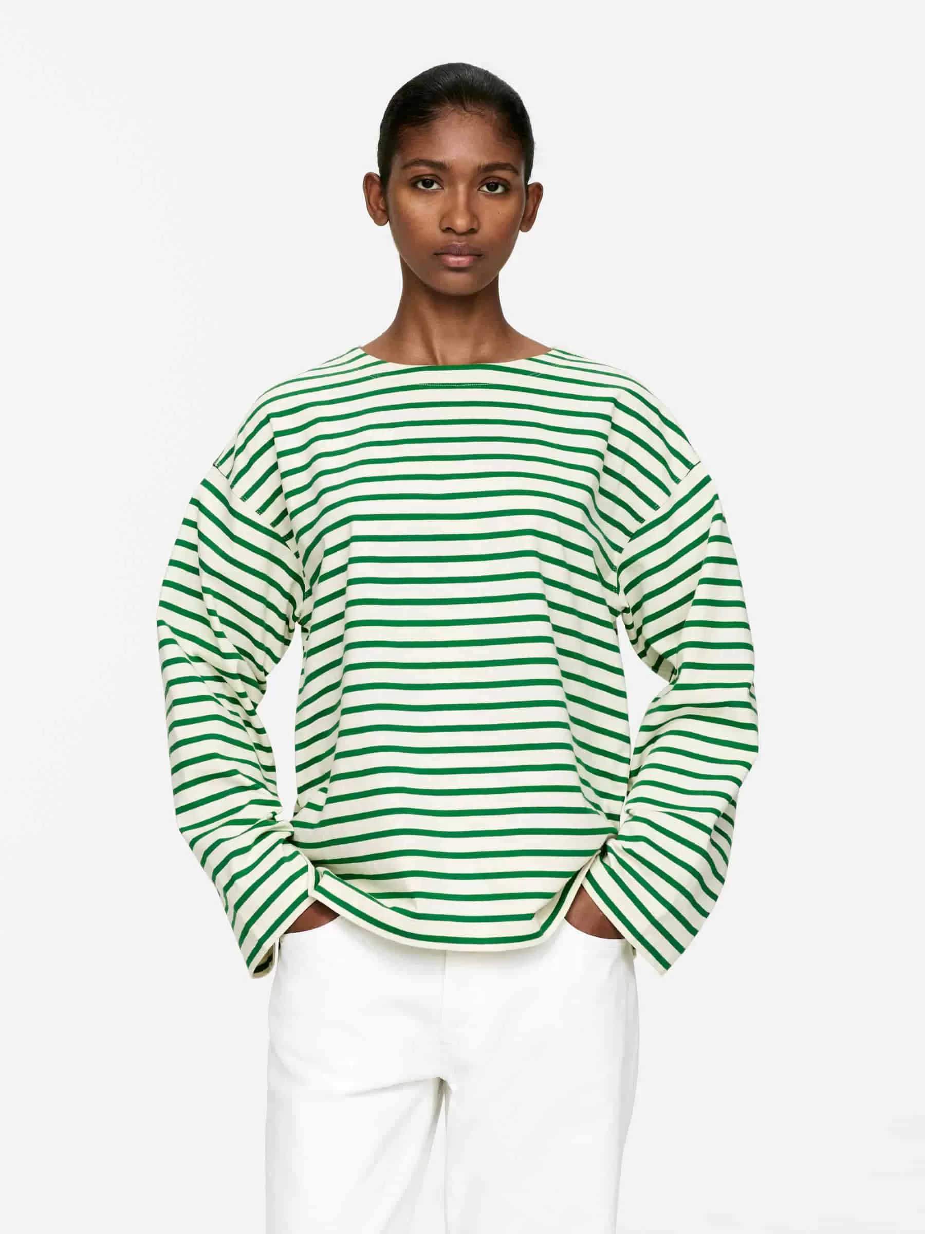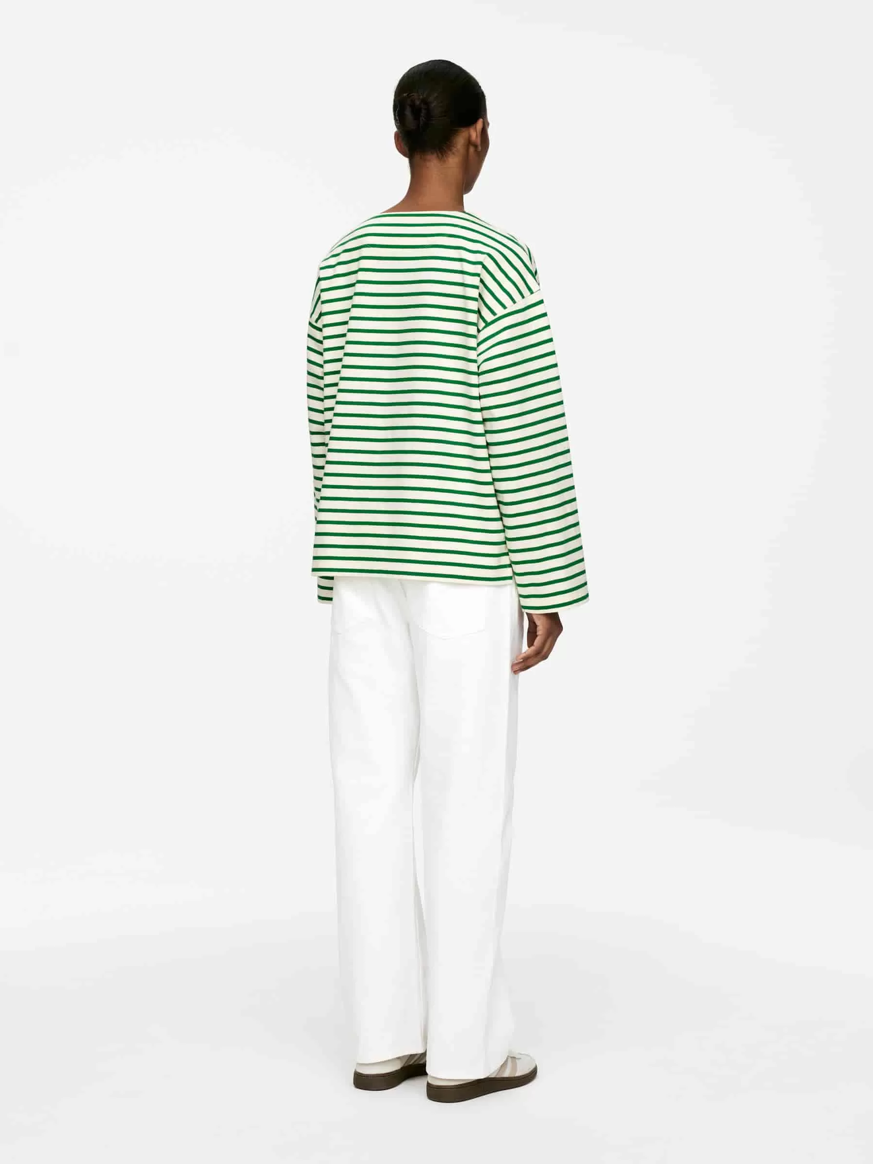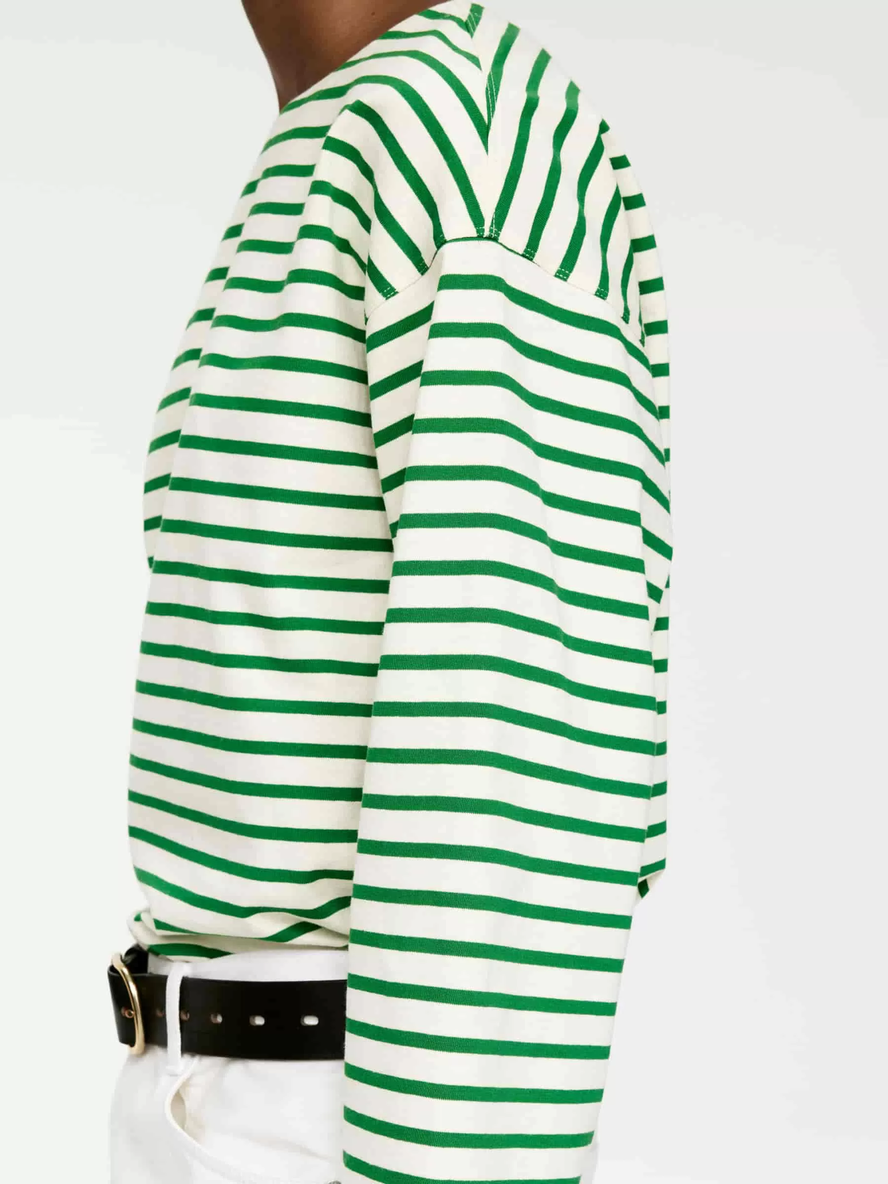 Long-sleeved T-shirt in a soft yarn-dyed cotton jersey. Designed with dropped shoulders and a vented bottom hem.