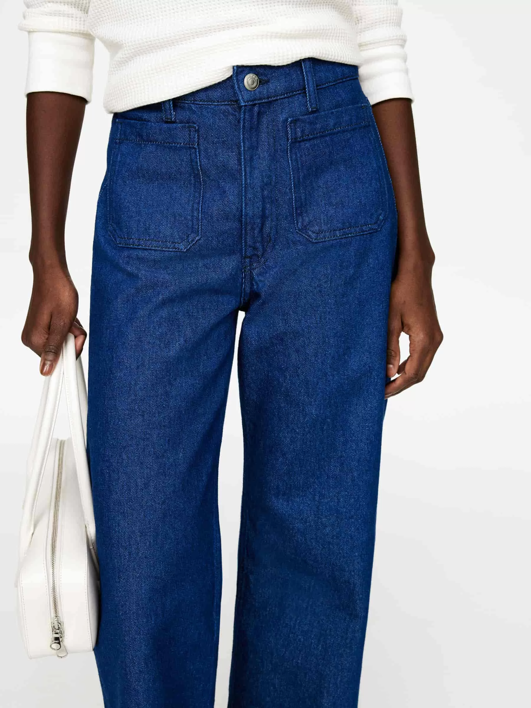 LUPINE is cut in a stretch denim and features a high rise waist, slim fit and flared legs. Patch pockets at front and back. Zip fly.
