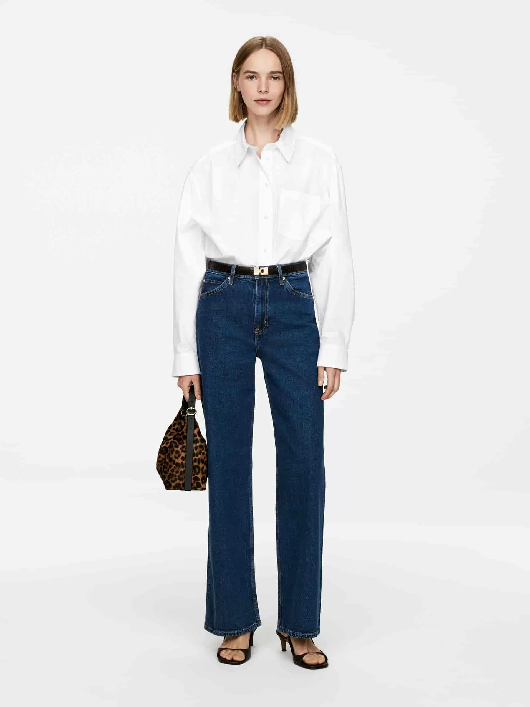 LUPINE is cut from stretch denim and features a high-rise waist, slim fit and flared legs. Zip fly.